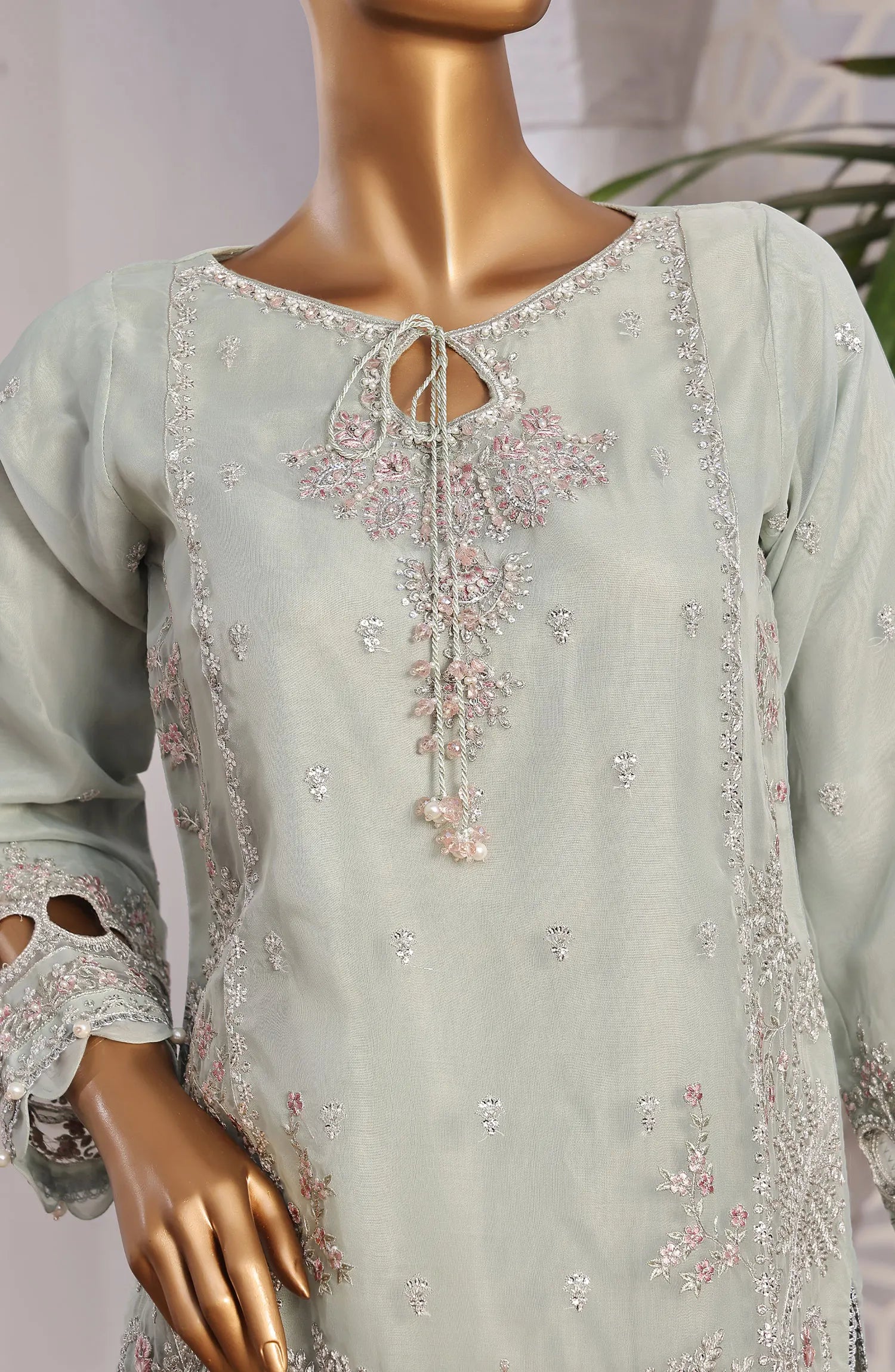The standard style comes as a long-sleeved kameez with dupatta and trouser/shalwar