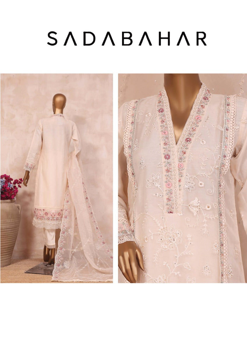 Exclusive Embroidered Stitched Organza shirt