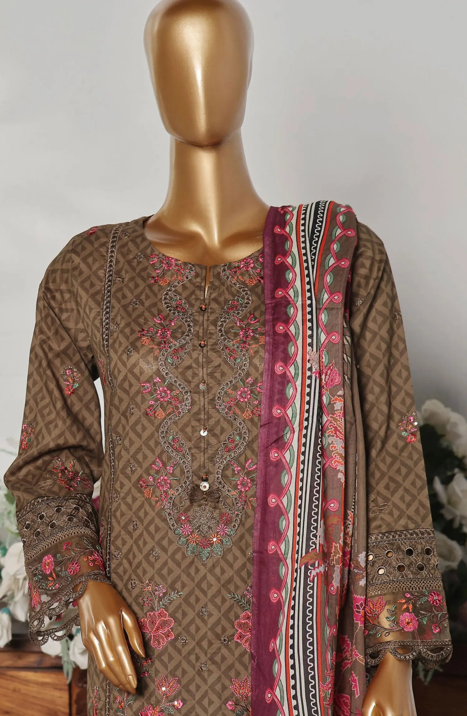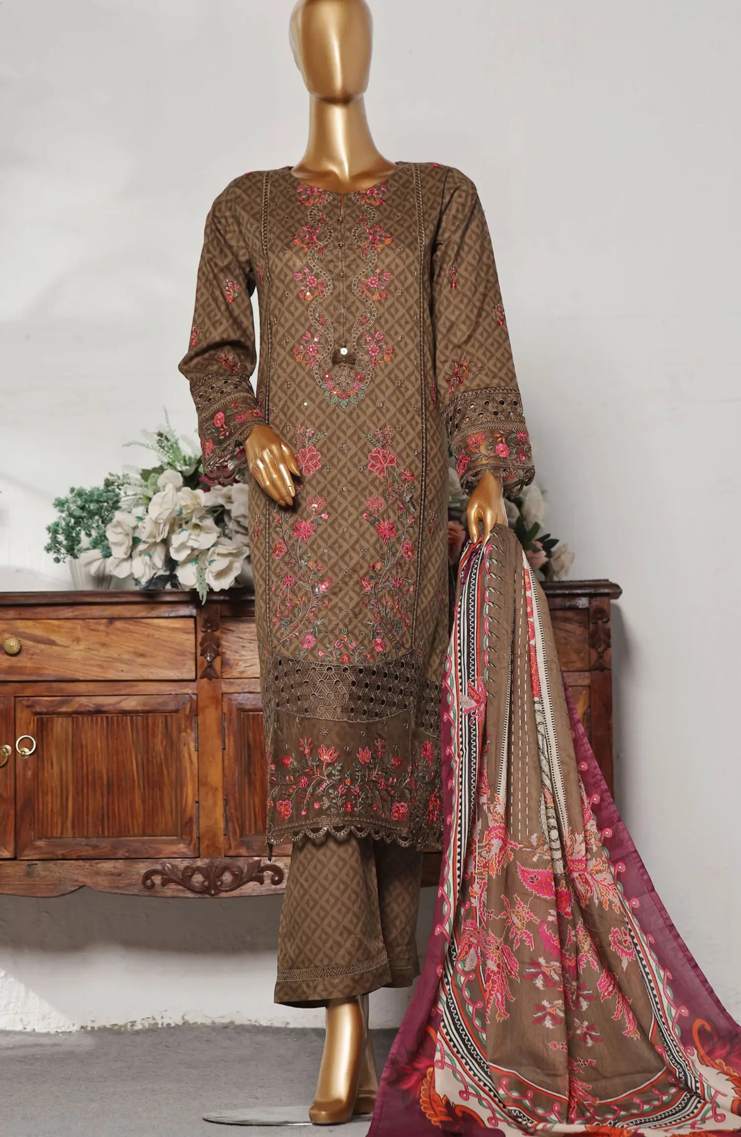 Sadabahar Premium Embroidered Cross Texture Stitched 3 Piece Suit - Design-04 - SBD25FEST - Brown - Winter Collection