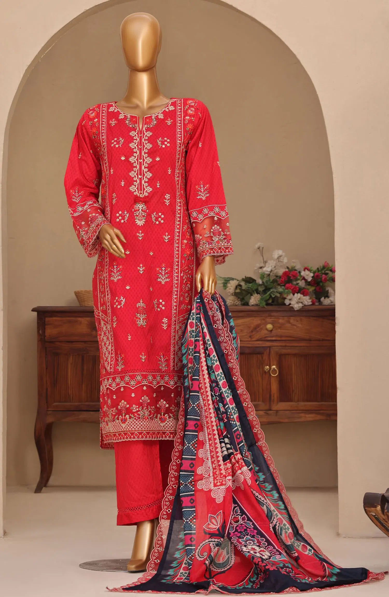 3 Piece | All Categories Women | Daily Pret | Embroidered Lawn Collection | Formal Wear | Lawn Collection | Lawn Suits | New Arrival | Pret Under 10000 | Pret Under 7500 | Printed Lawn Collection | Ready To Wear | Sadabahar | Sadabahar Lawn Collection | Sadabahar Premium Embroidered Printed Lawn Collection 2024 | Sadabahar Pret | Shop by Color Red | Shop by Season All Seasons | Shop by Style Stitched | Stitched | Women