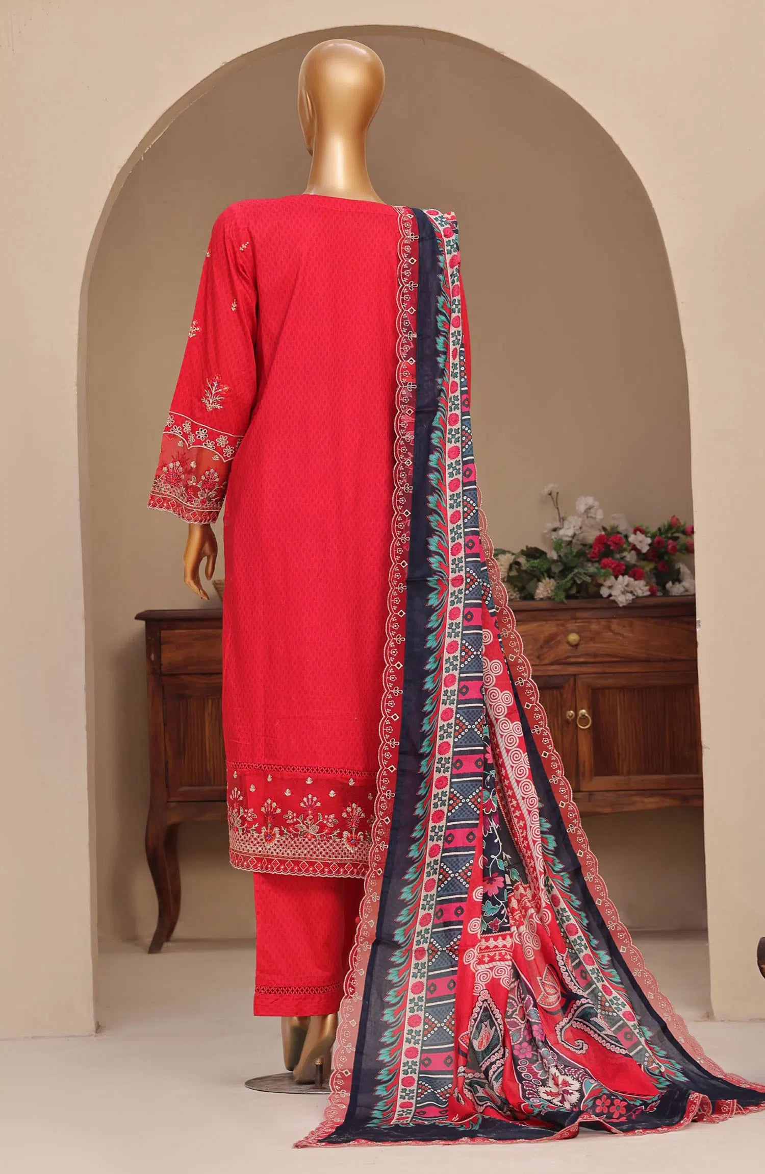 Sadabahar Premium Embroidered Cross Texture Stitched 3 Piece Suit - Design-02 - SBD25FEST - Red - Winter Collection