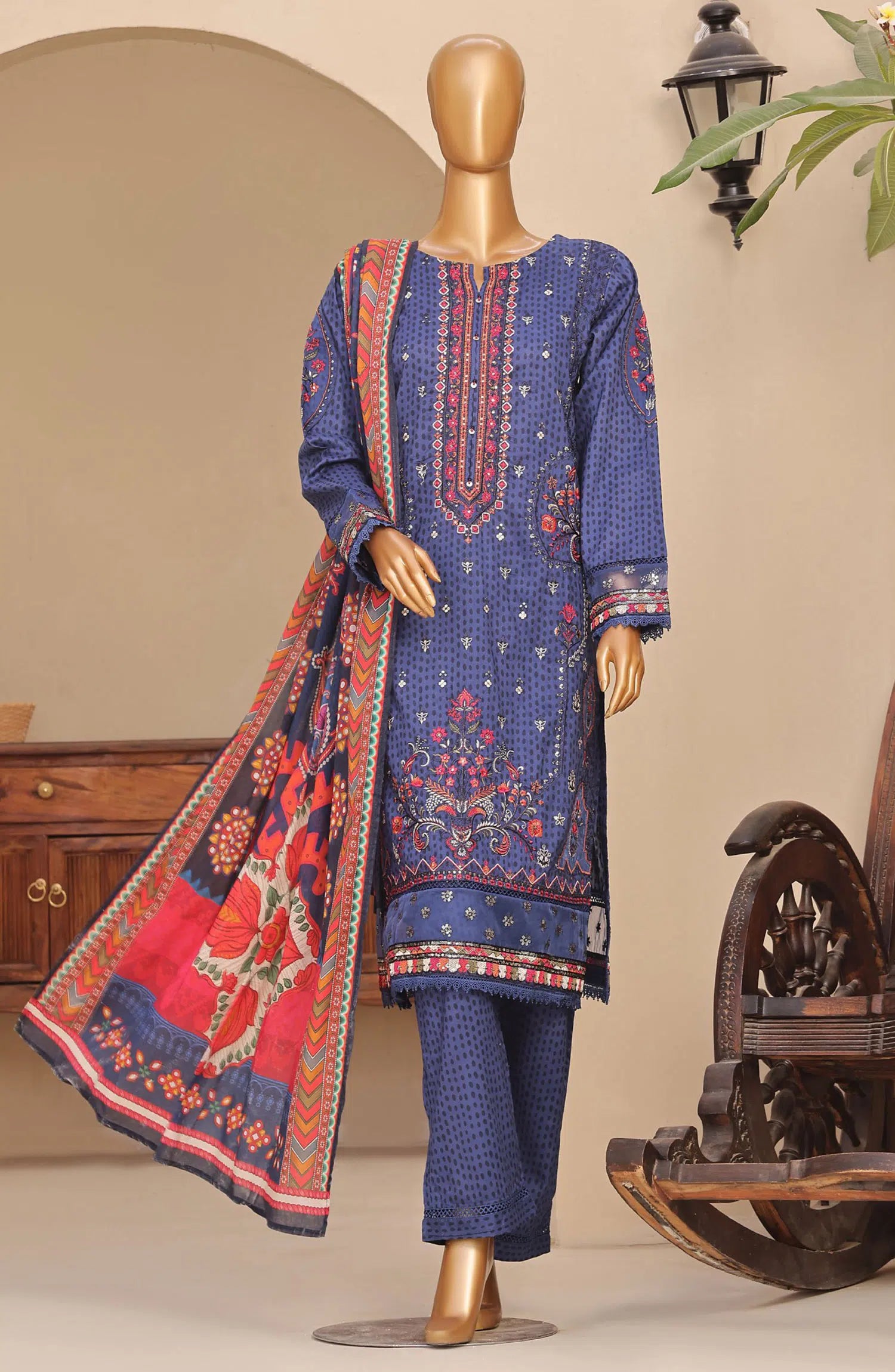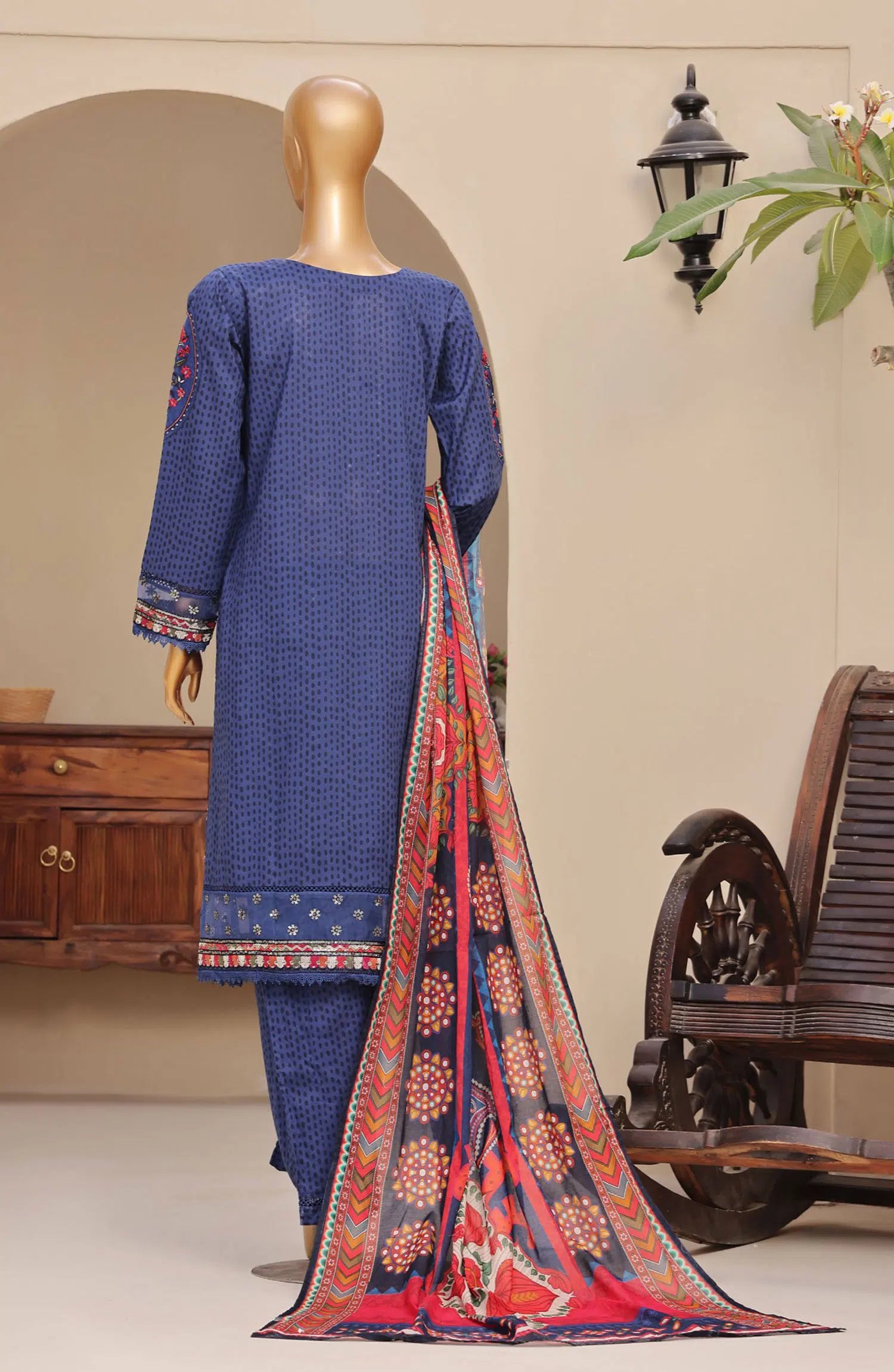 Sadabahar Premium Embroidered Cross Texture Stitched 3 Piece Suit - Design-03 - SBD25FEST - Blue - Winter Collection