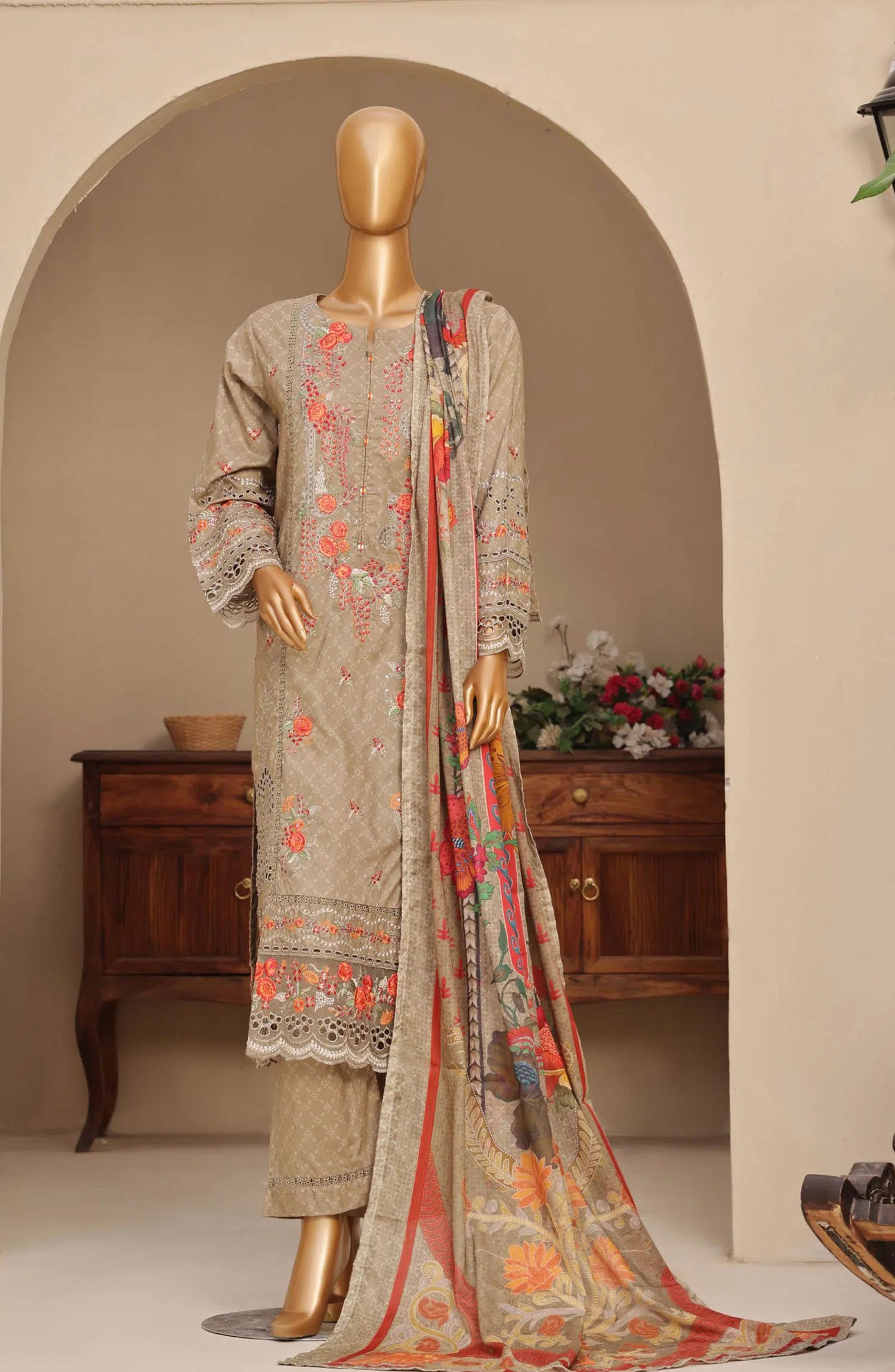 3 Piece Stitched Embroidered and Printed Lawn Suit.