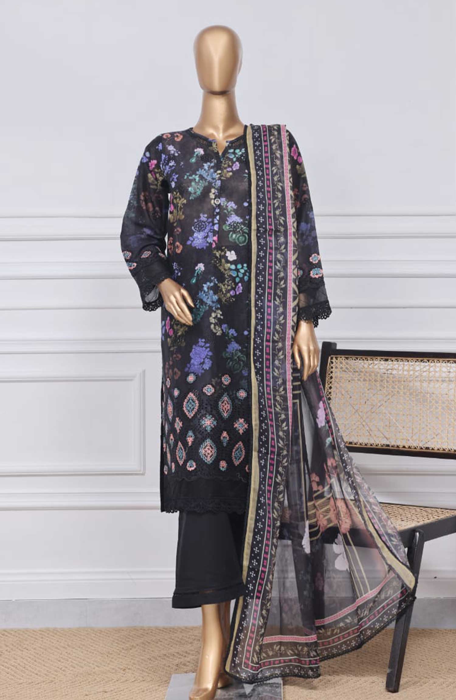 Sadabahar Printed Chikankari Stitched 3 Piece - D-06 - SDB25PC - Black - Summer Collection