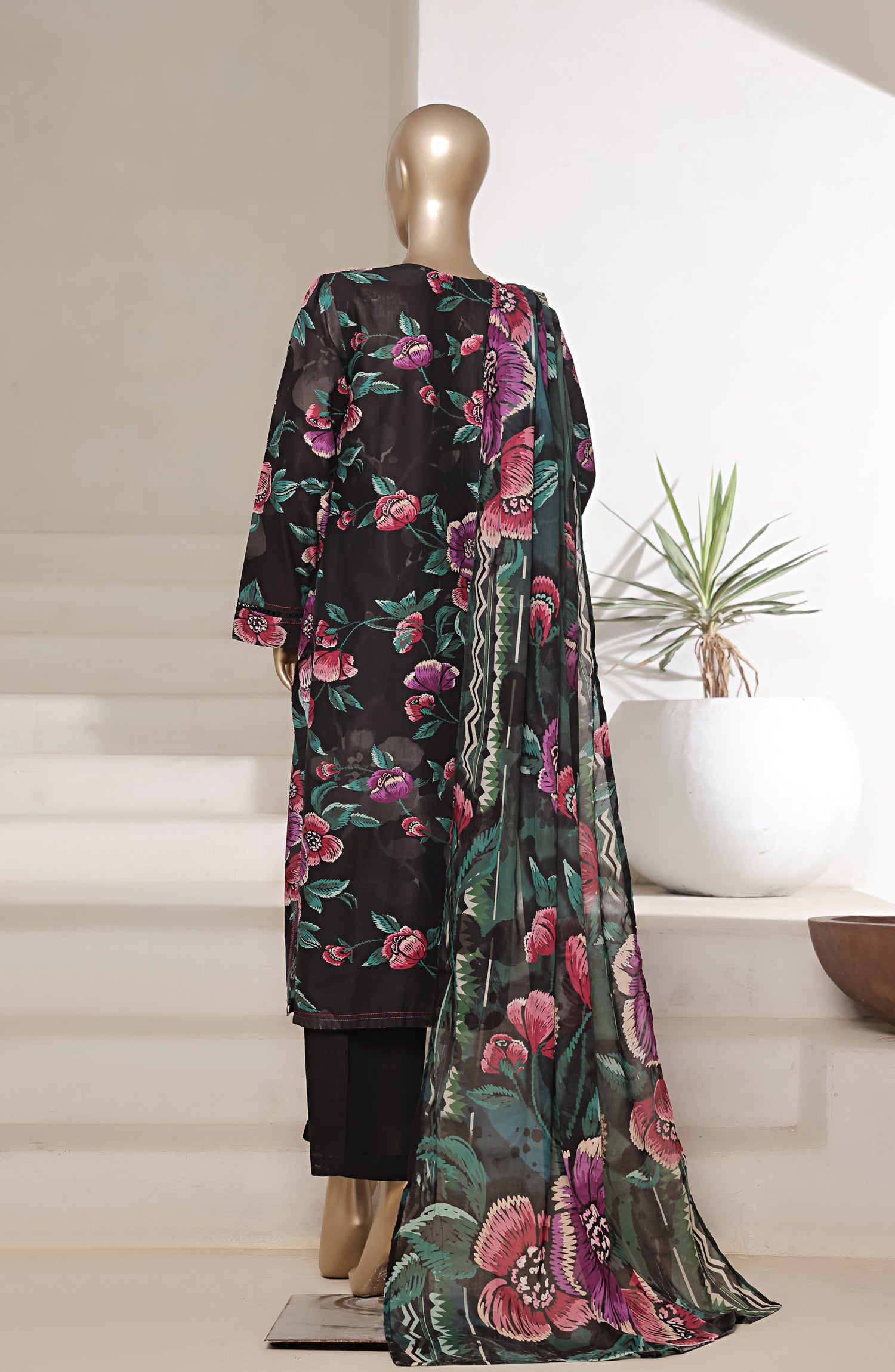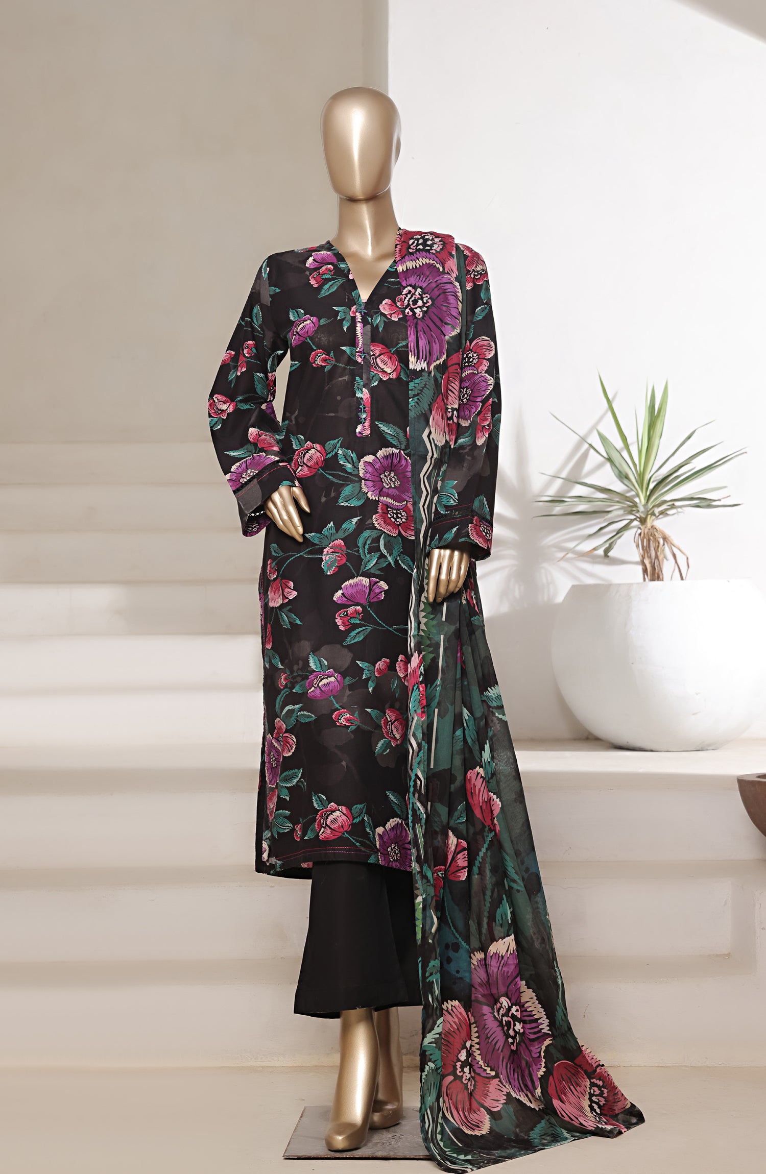 Digital Print Cotton Lawn 3 Piece Stitch Suit with Embellishments