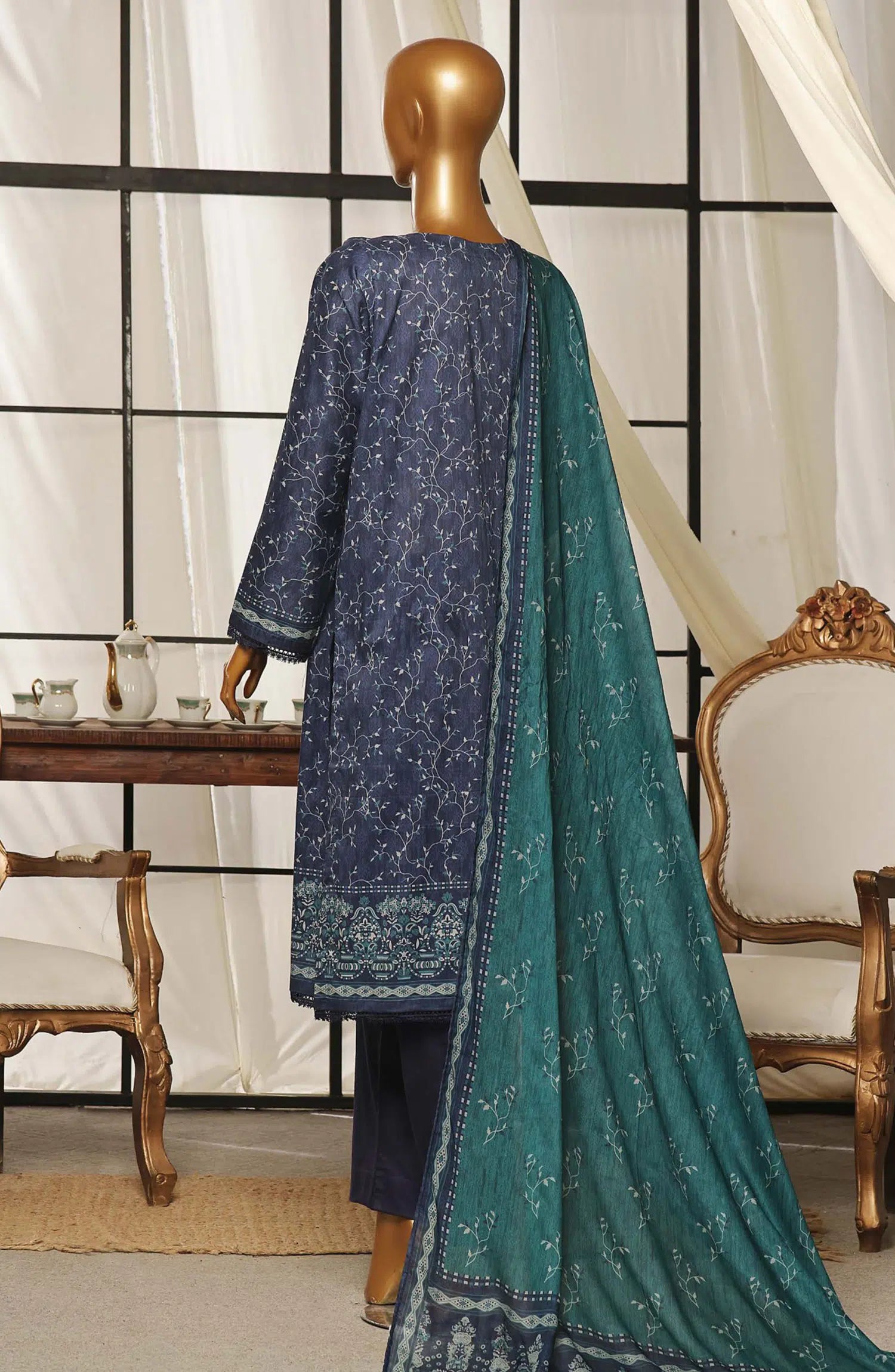 Sadabahar Premium Embroidered Cross Texture Stitched 3 Piece Suit - Design-03 - SBD25FEST - Blue - Winter Collection