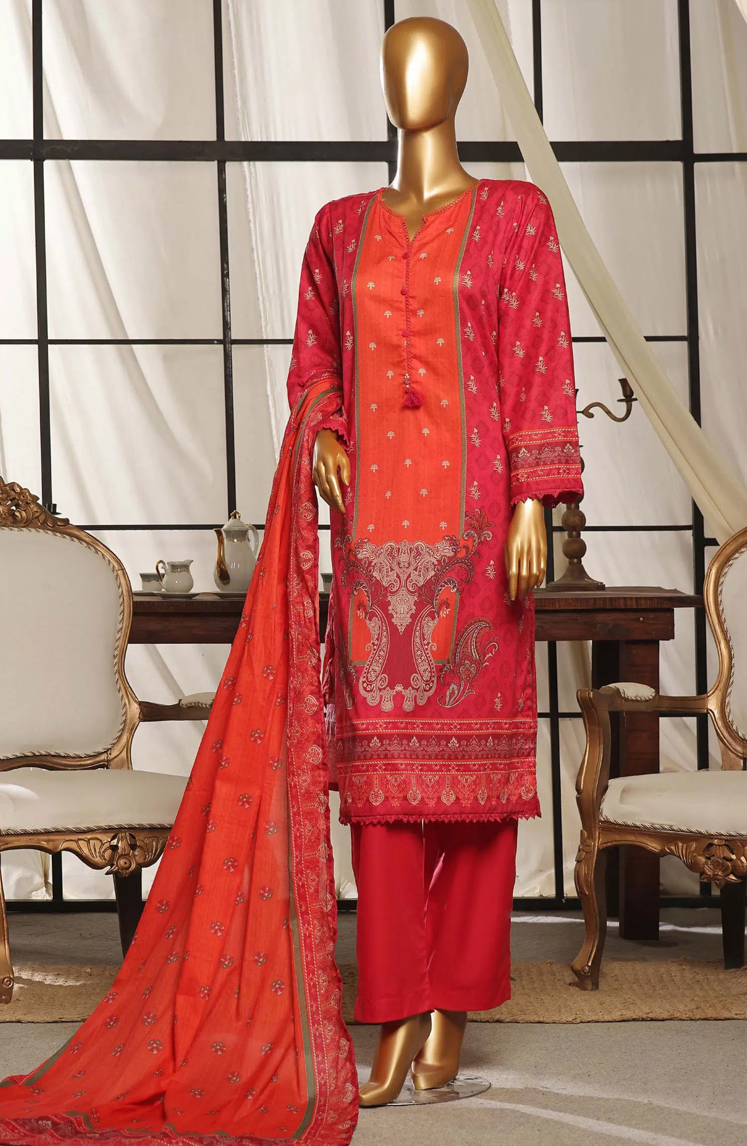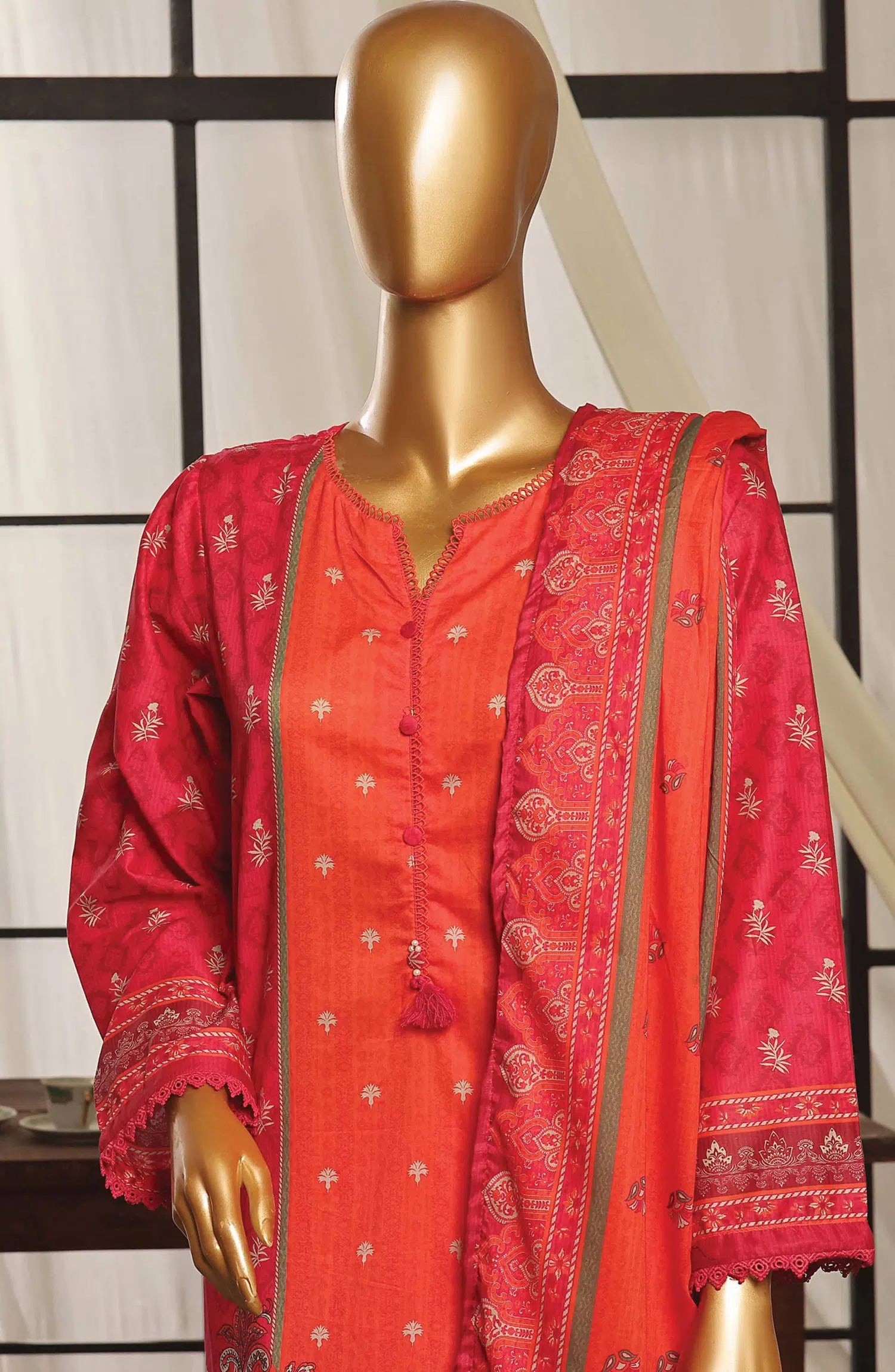 Sadabahar Premium Embroidered Cross Texture Stitched 3 Piece Suit - Design-02 - SBD25FEST - Red - Winter Collection