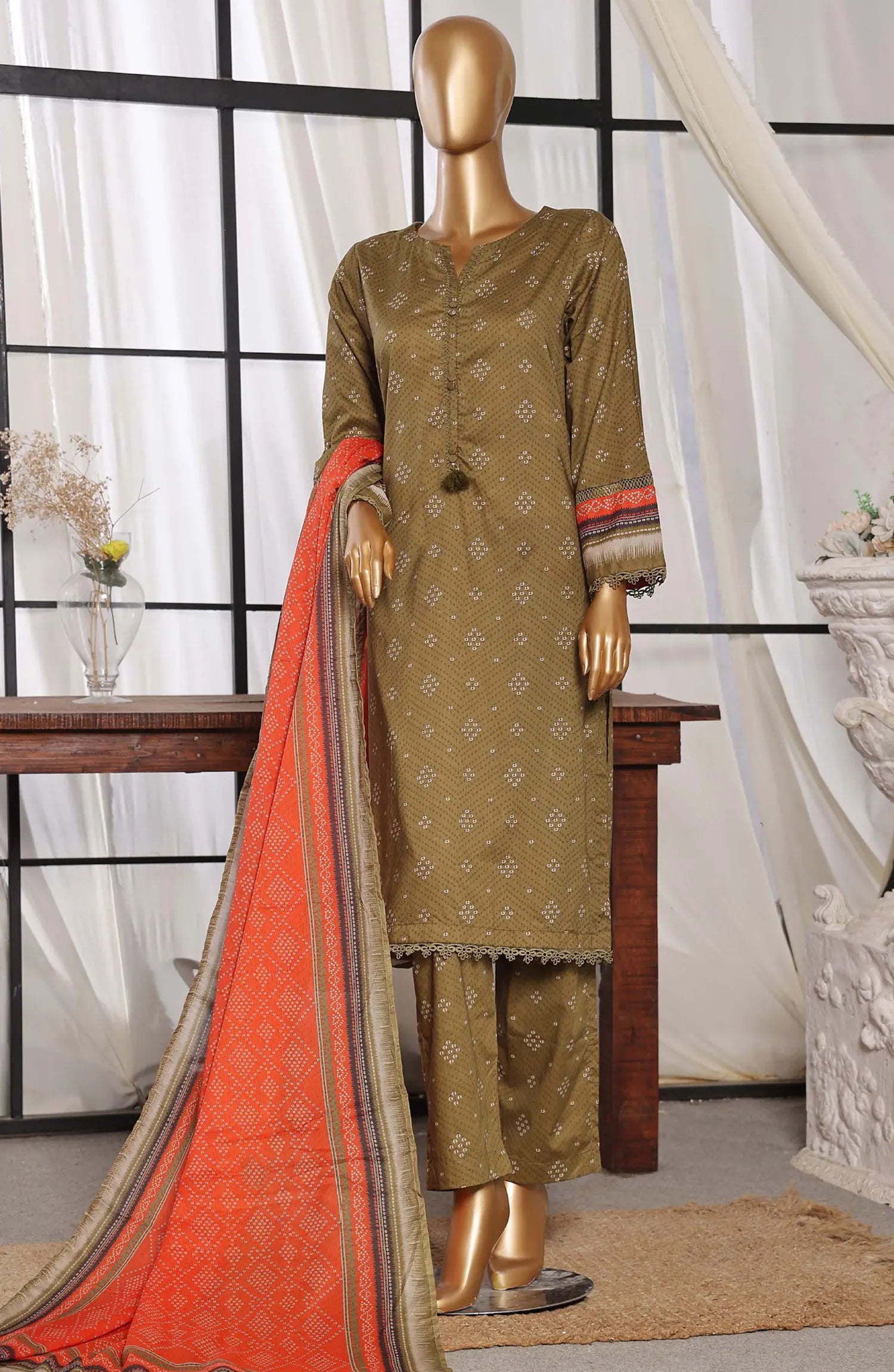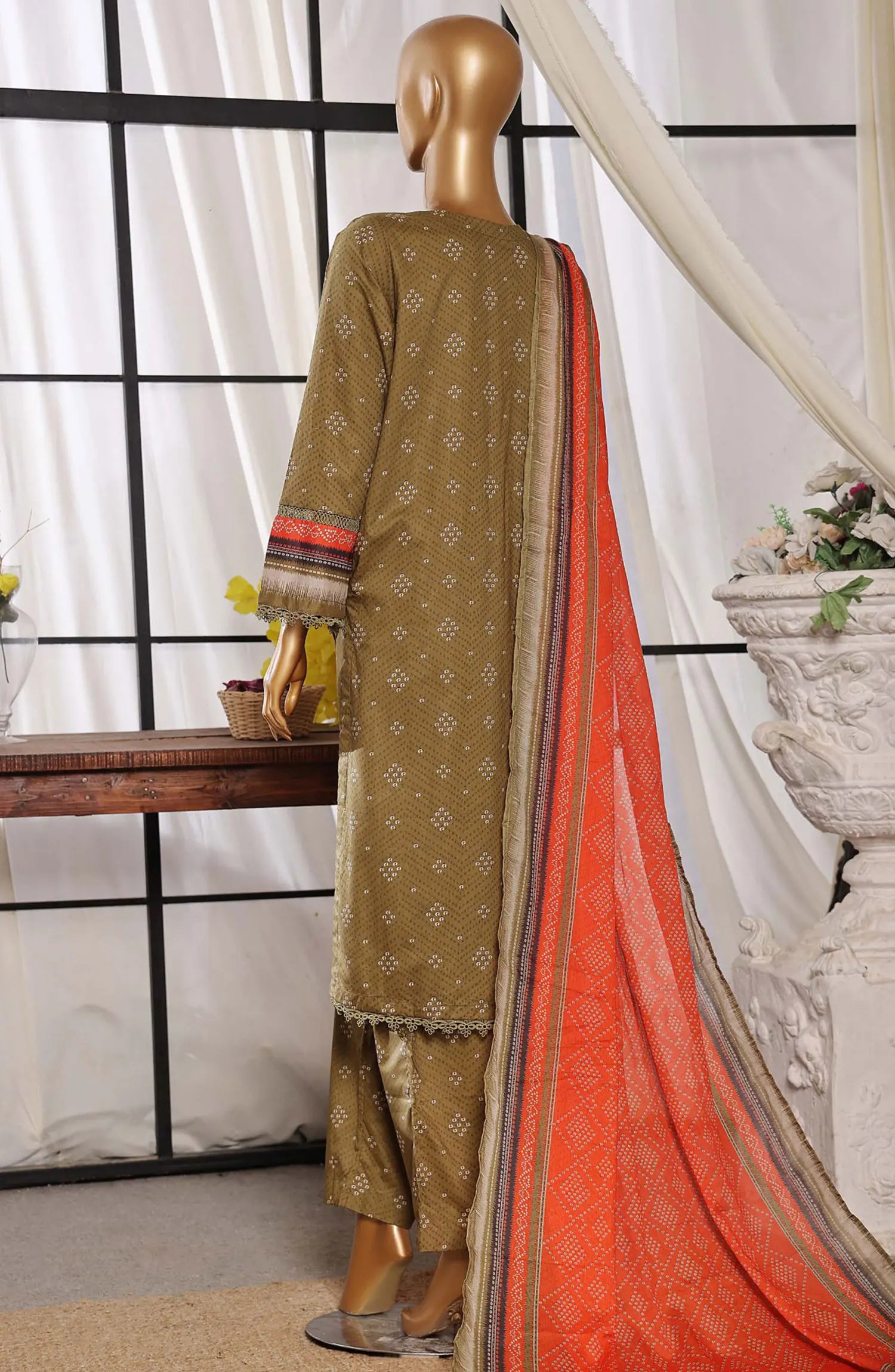 Sadabahar Premium Embroidered Cross Texture Stitched 3 Piece Suit - Design-04 - SBD25FEST - Brown - Winter Collection