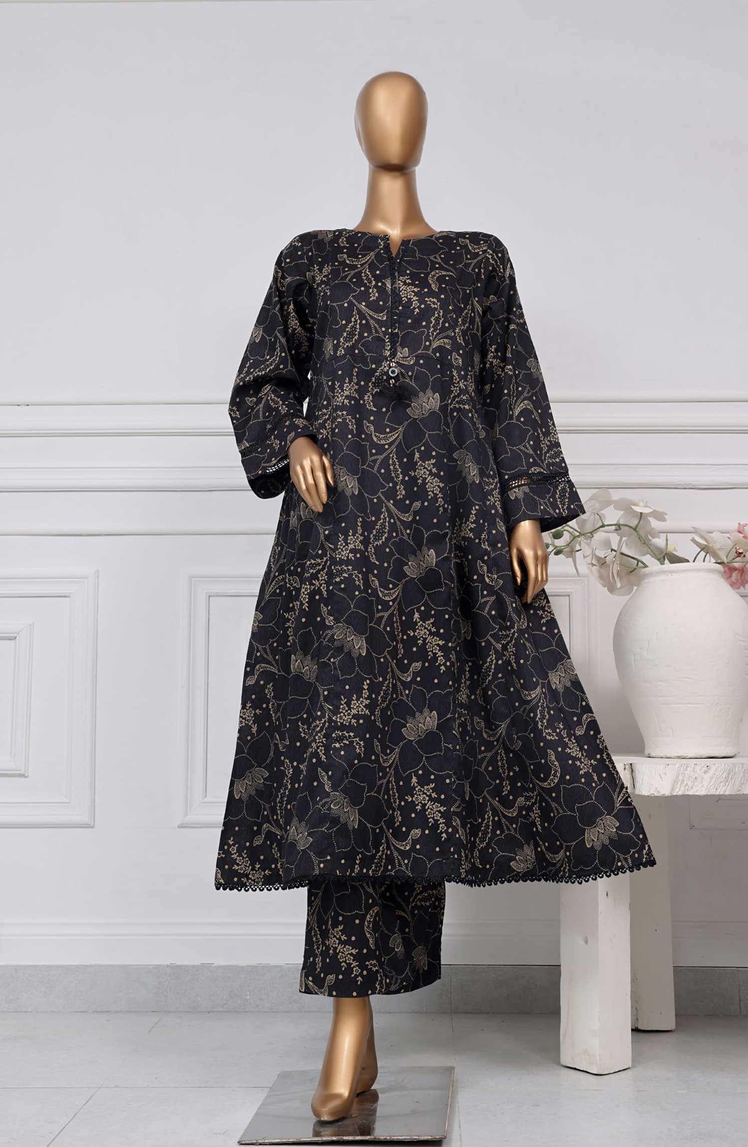 Home Sadabahar Printed Lawn Stitched 2 Piece Suit D-05 SD25SP Black - Summer Collection