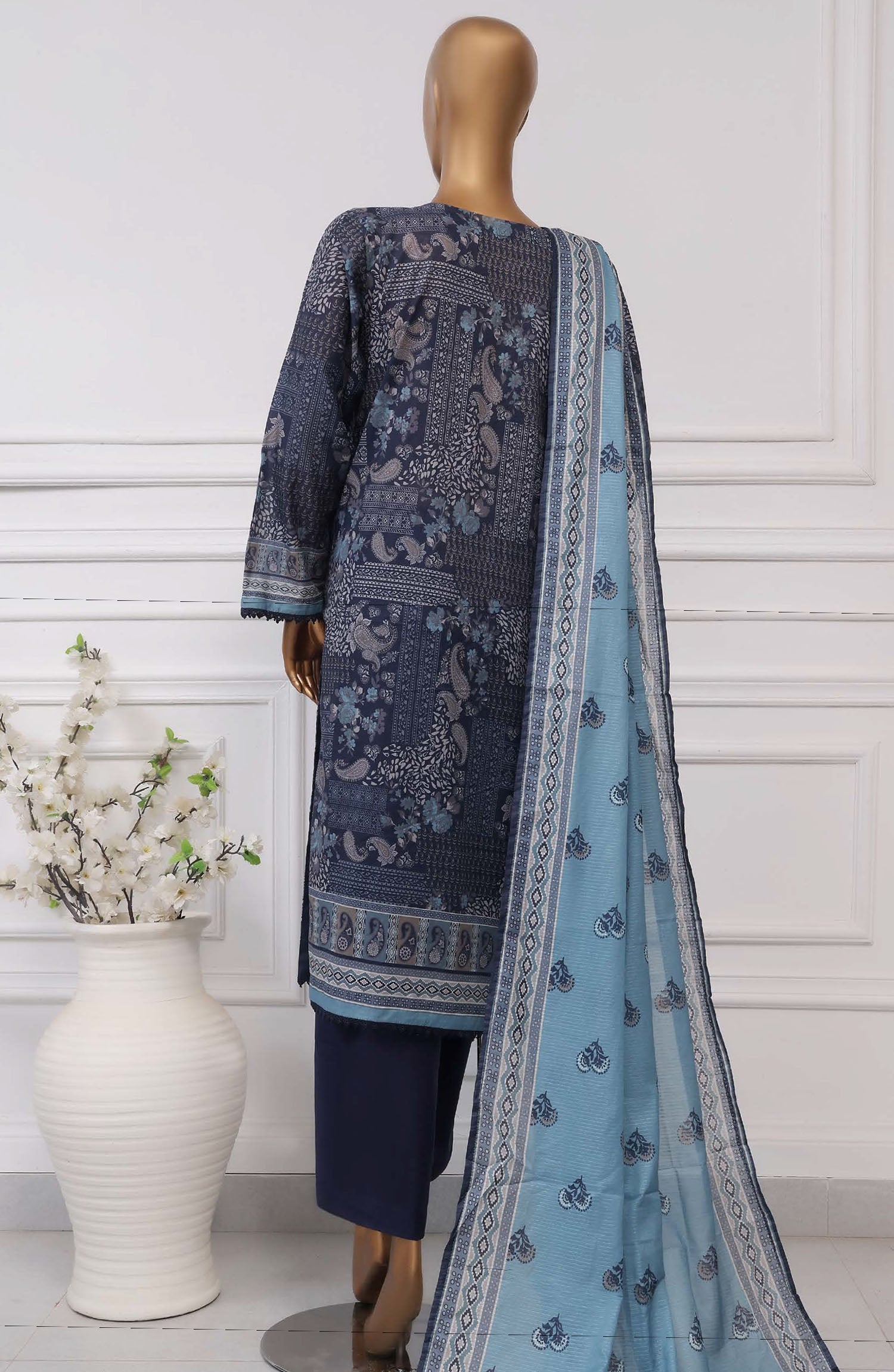 Home Sadabahar Printed Lawn Stitched 3 Piece Suit - D-01 - SBD25PLCV4 - Blue - Summer Collection