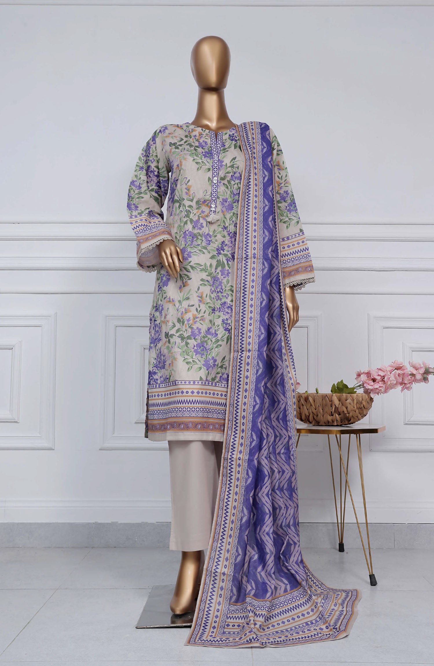 Sadabahar Printed Lawn Stitched 3 Piece Suit - D-01 - SBD25PLV2 - Grey - Summer Collection