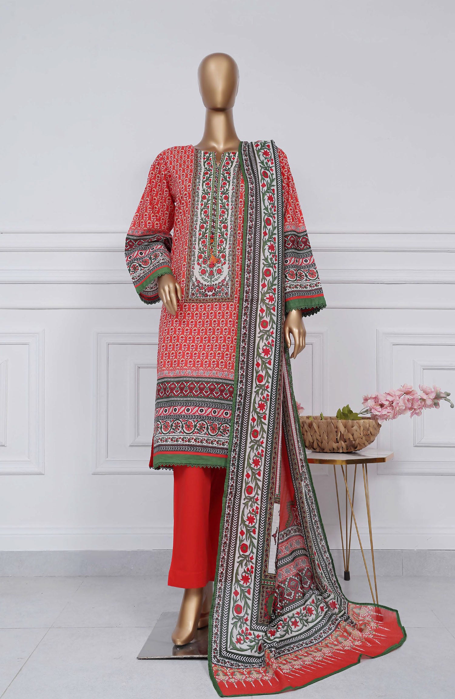 3 Piece Printed Stitched Lawn Suit.
