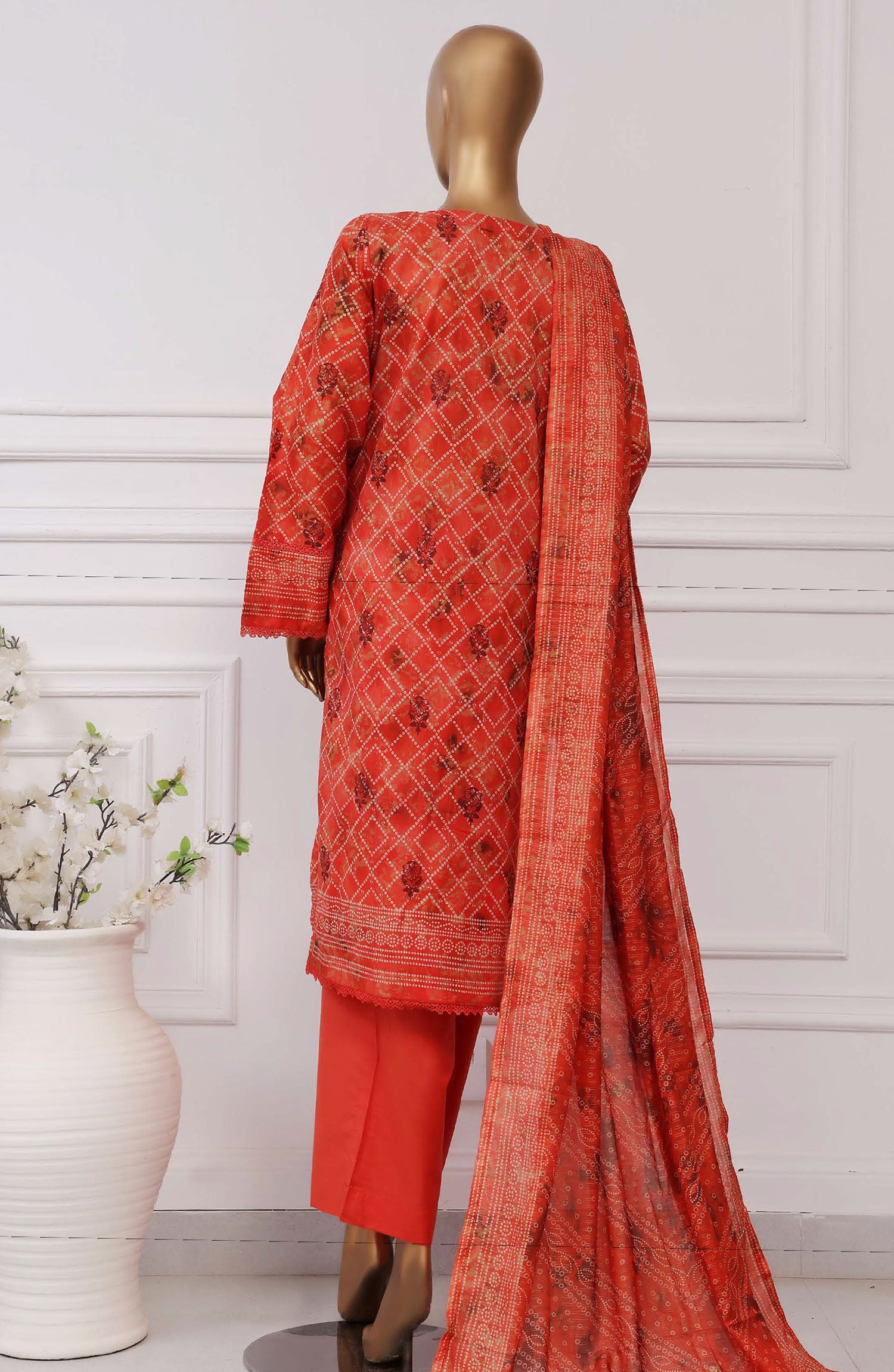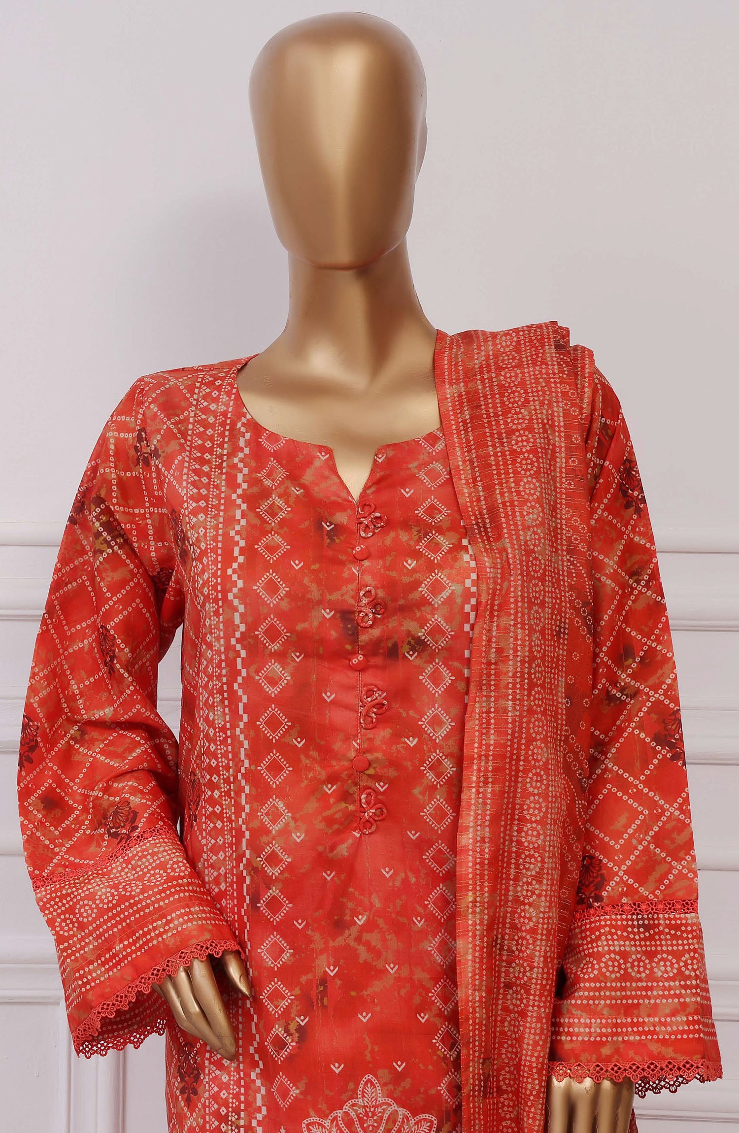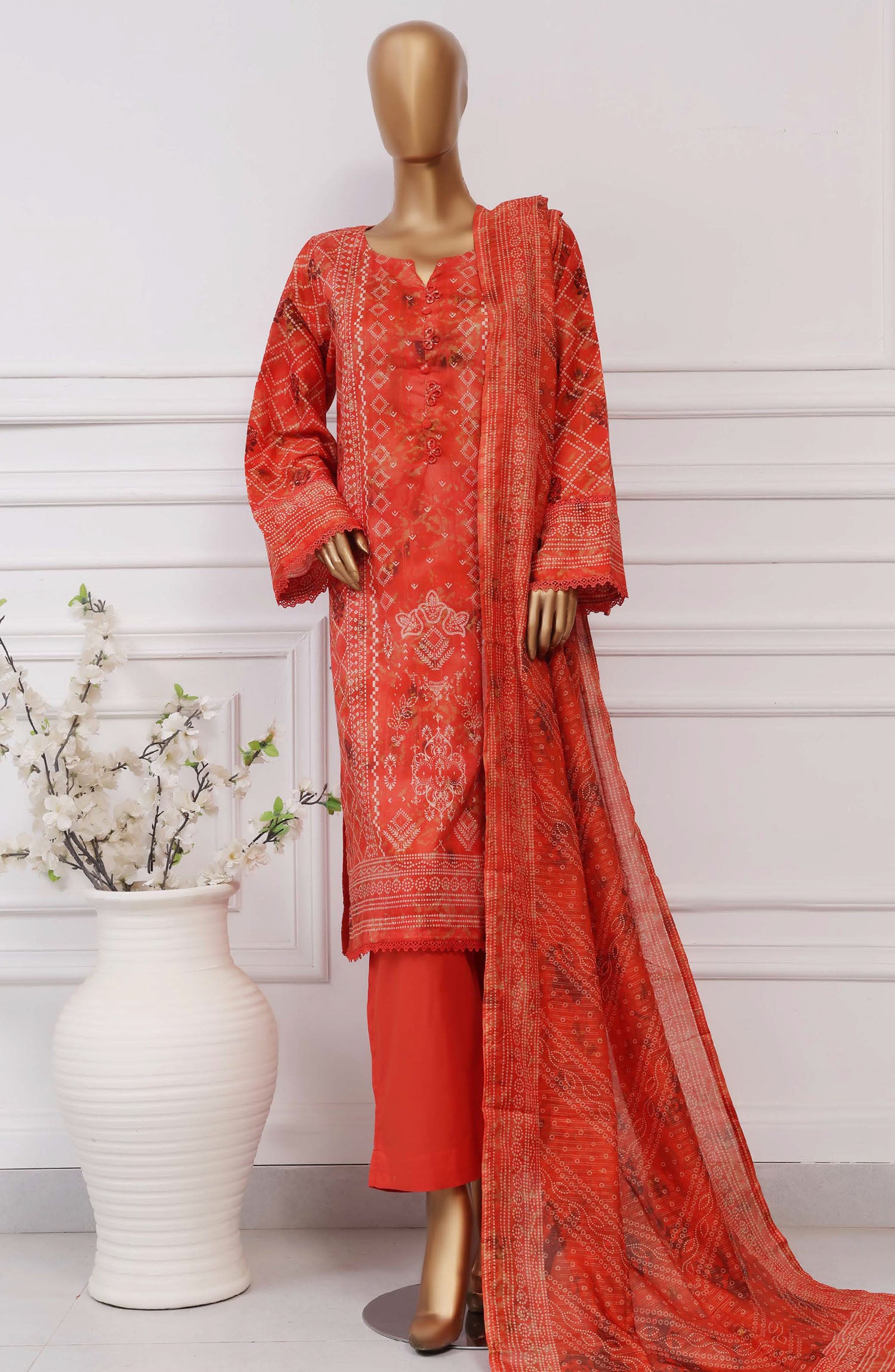 Home Sadabahar Printed Lawn Stitched 3 Piece Suit - D-10 - SBD25PLCV4 - Orange - Summer Collection