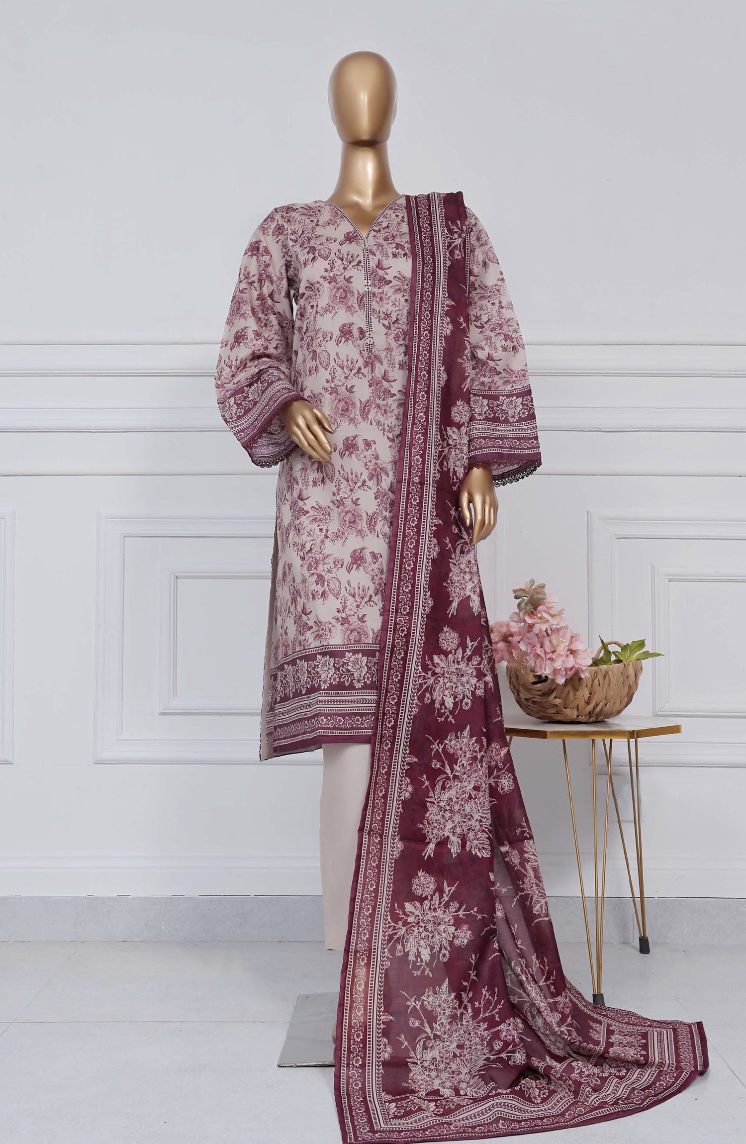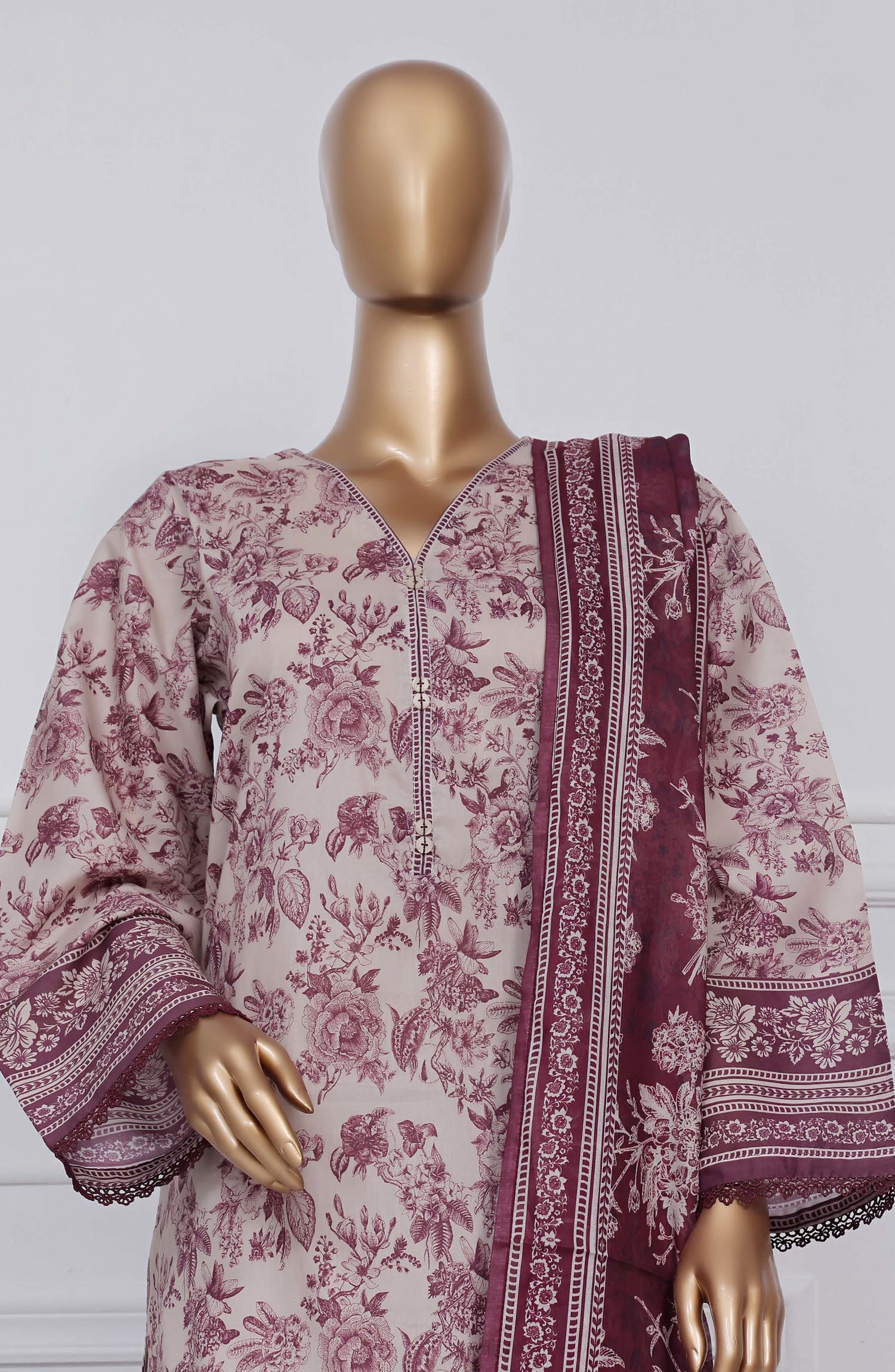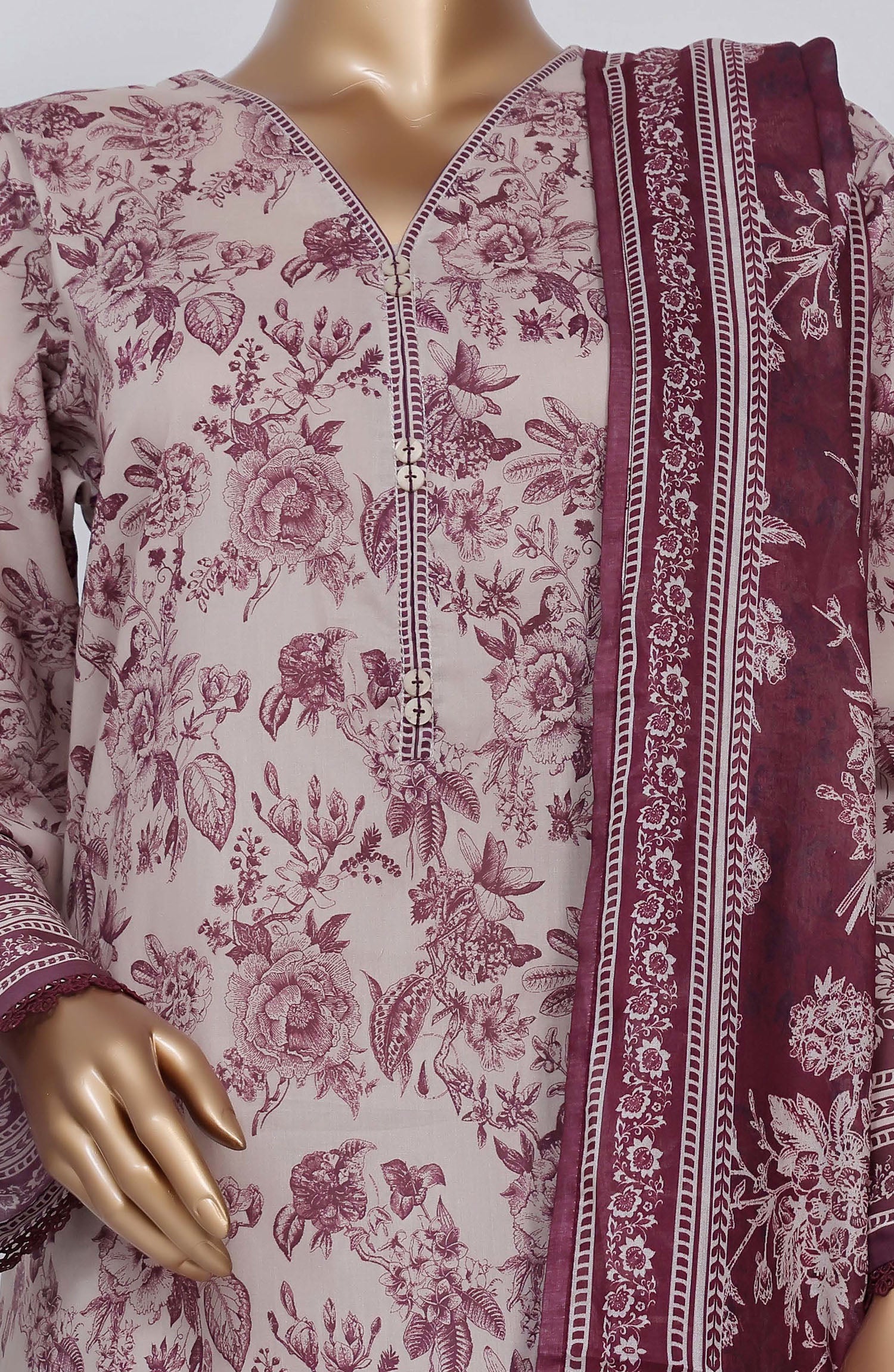 3 Piece Printed Stitched Lawn Suit.