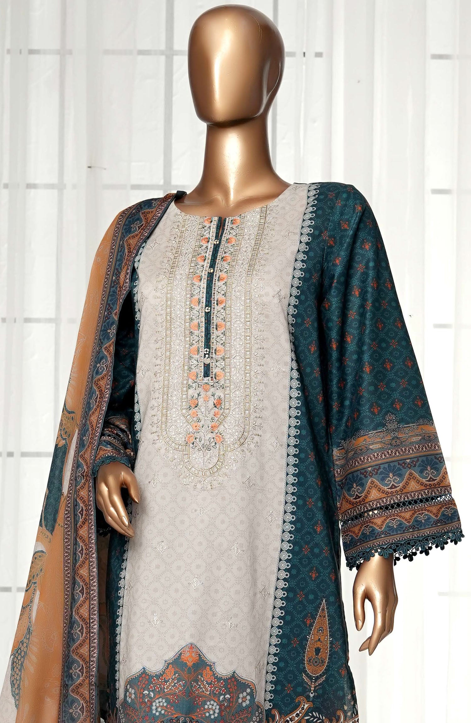 Modest Embroidered Khaddar Stitched 3 Piece Suit - 10000-Brn - MOD25WNT - Brown - Winter Collection