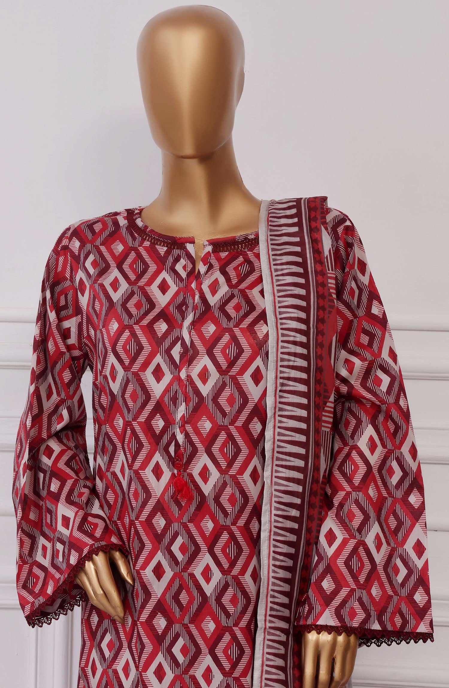 Home Sadabahar Printed Lawn Stitched 3 Piece Suit - D-13 - SBD25PLCV4 - Red - Summer Collection
