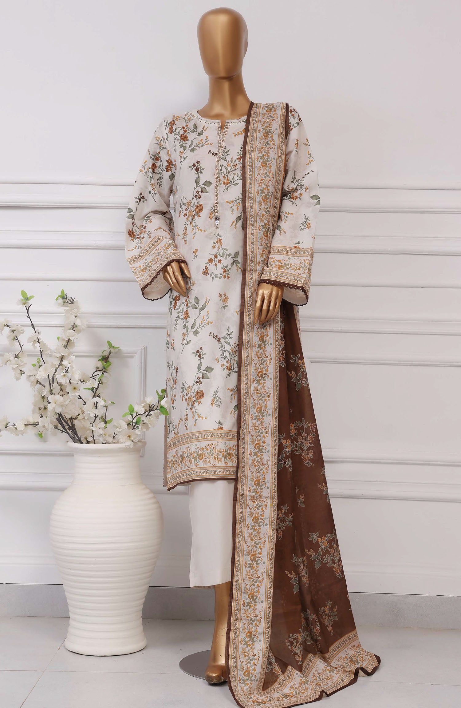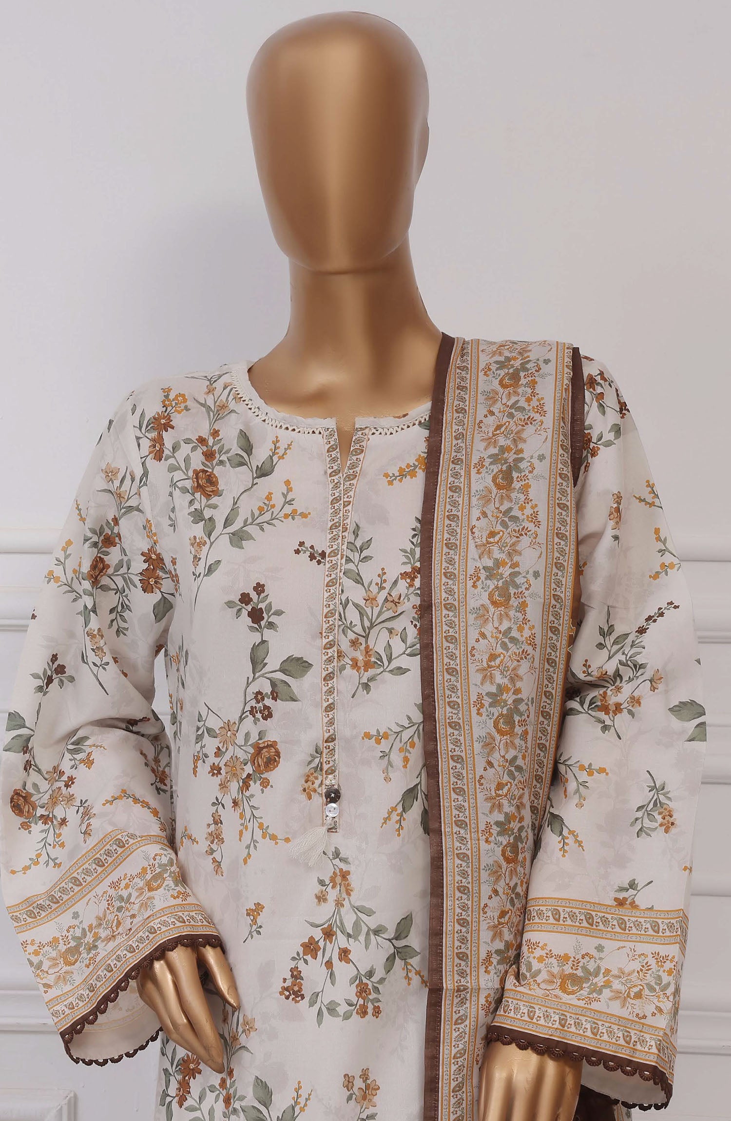 The standard style comes as a long-sleeved kameez with dupatta and trouser/shawlar.