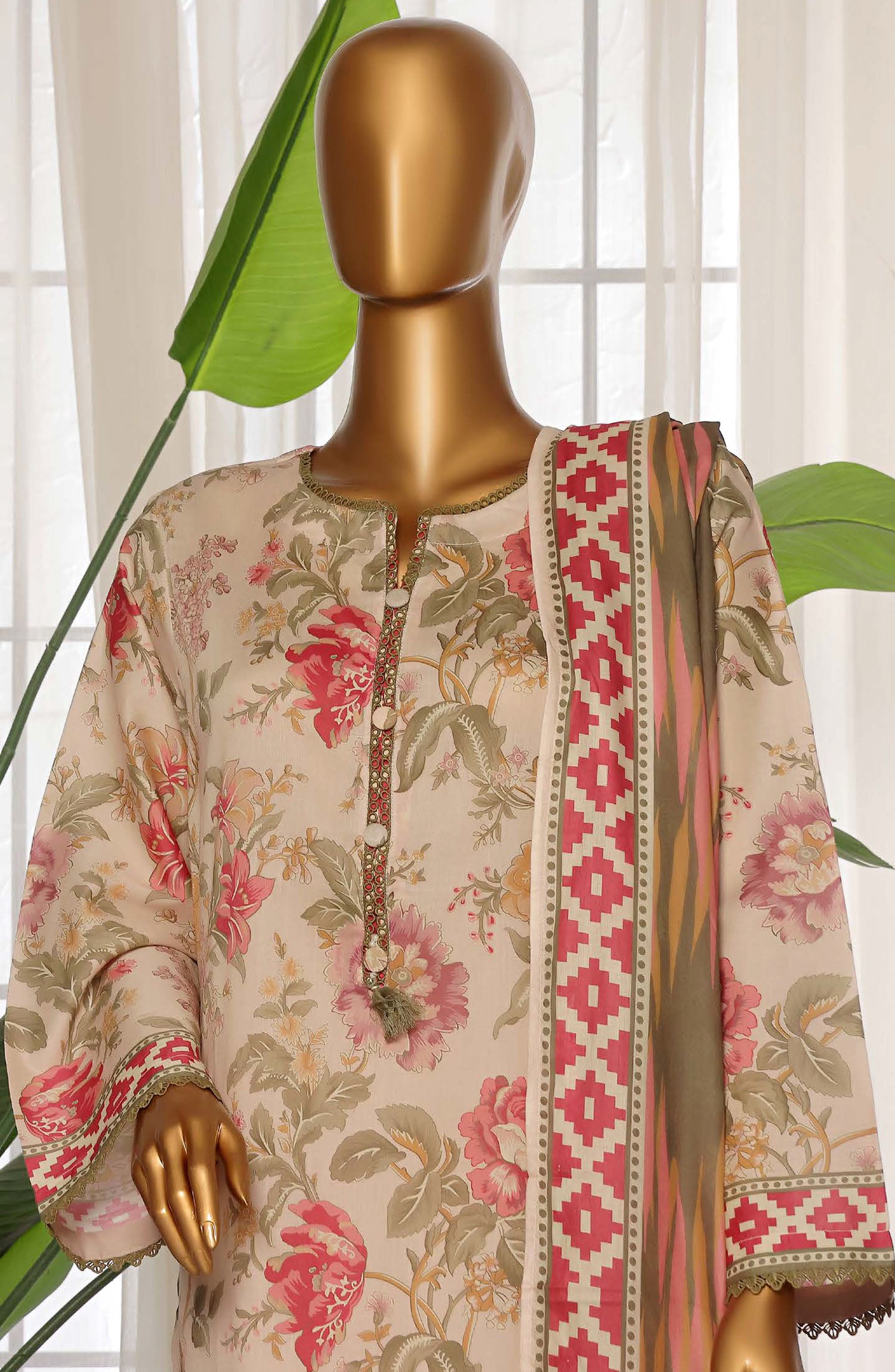 Home Sadabahar Printed Lawn Stitched 3 Piece Suit - D-15 - SDB25PLV3 - Beige - Summer Collection
