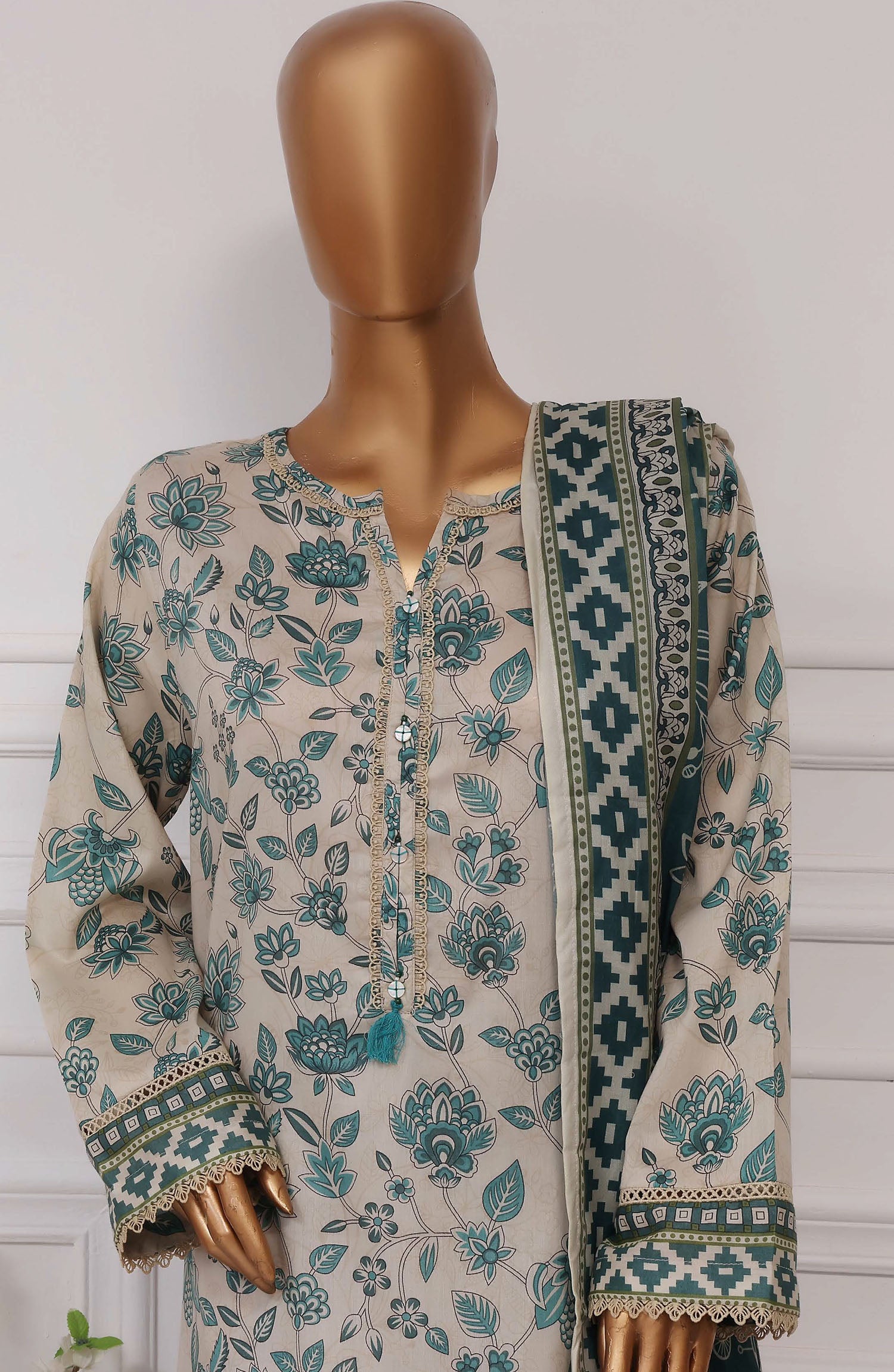 Home Sadabahar Printed Lawn Stitched 3 Piece Suit - D-17 - SBD25PLCV4 - White - Summer Collection
