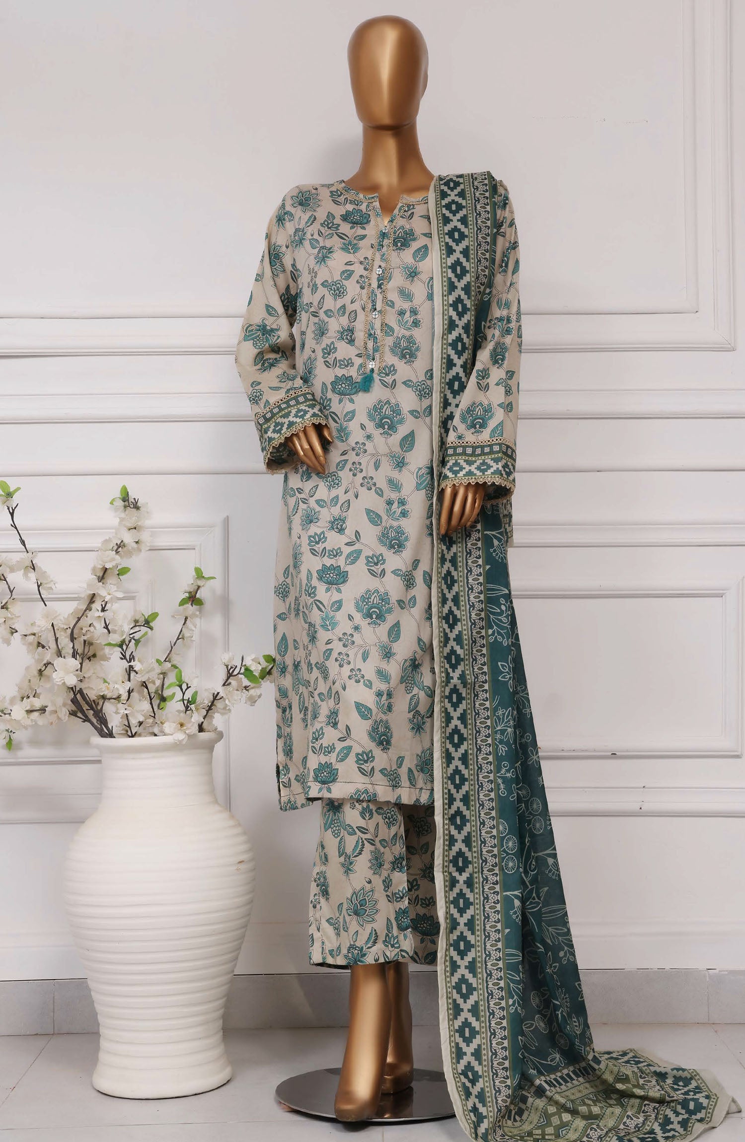 Rua by Casual Lite Embroidered Premium Linen Stitched 3 Piece Suit - D-07 Teal Mirage - CL25RU - Teal - Winter Collection