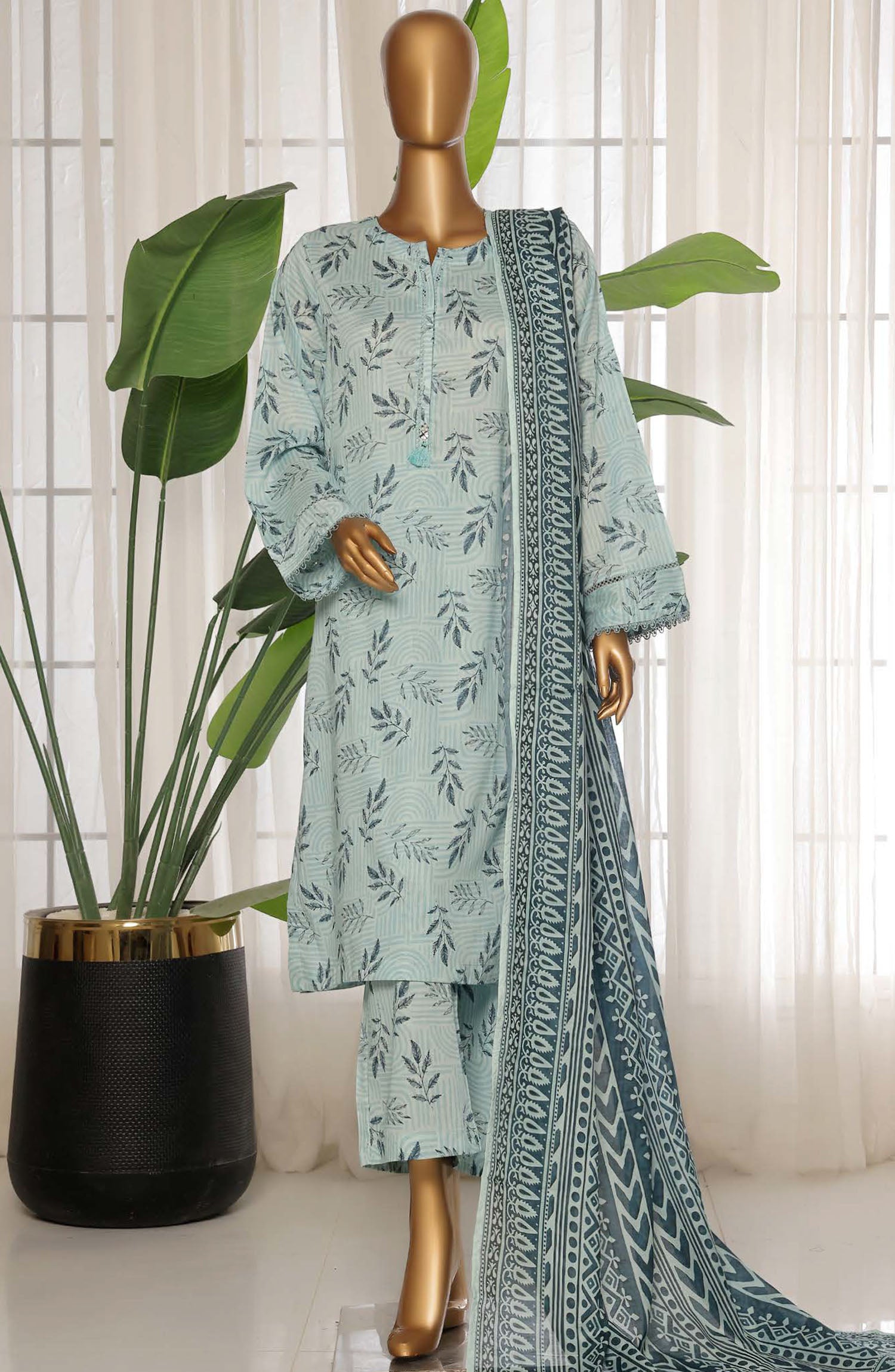 Home Sadabahar Printed Lawn Stitched 3 Piece Suit - D-18 - SDB25PLV3 - Blue - Summer Collection