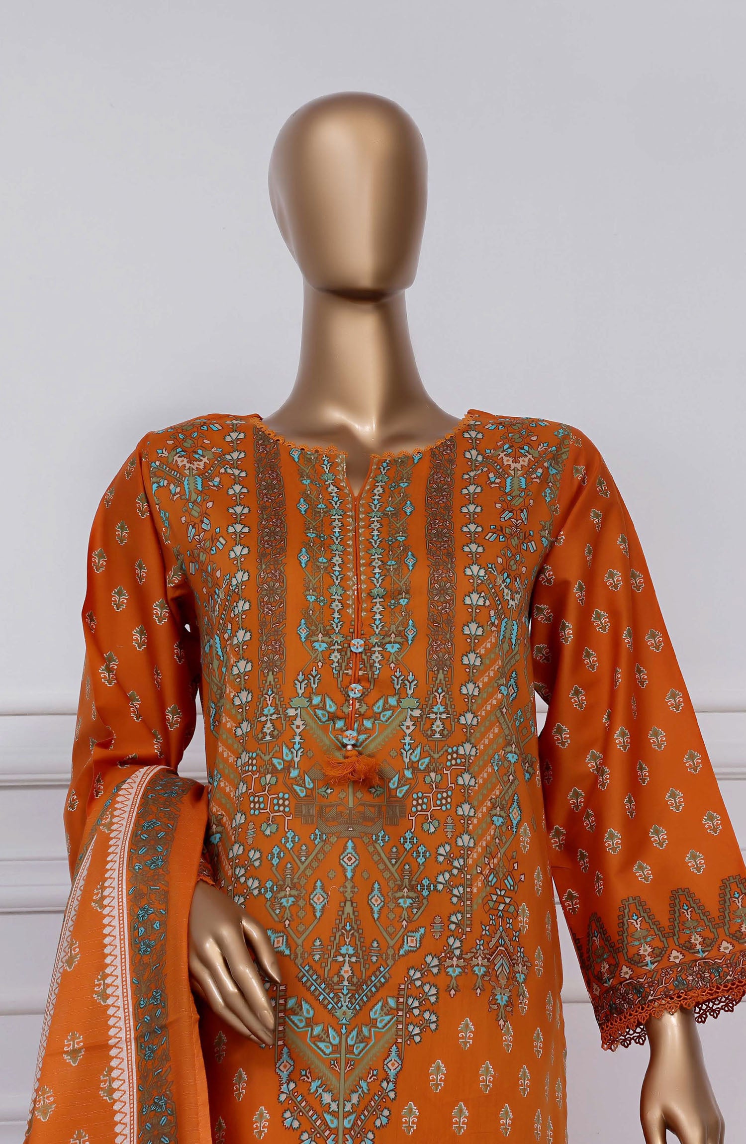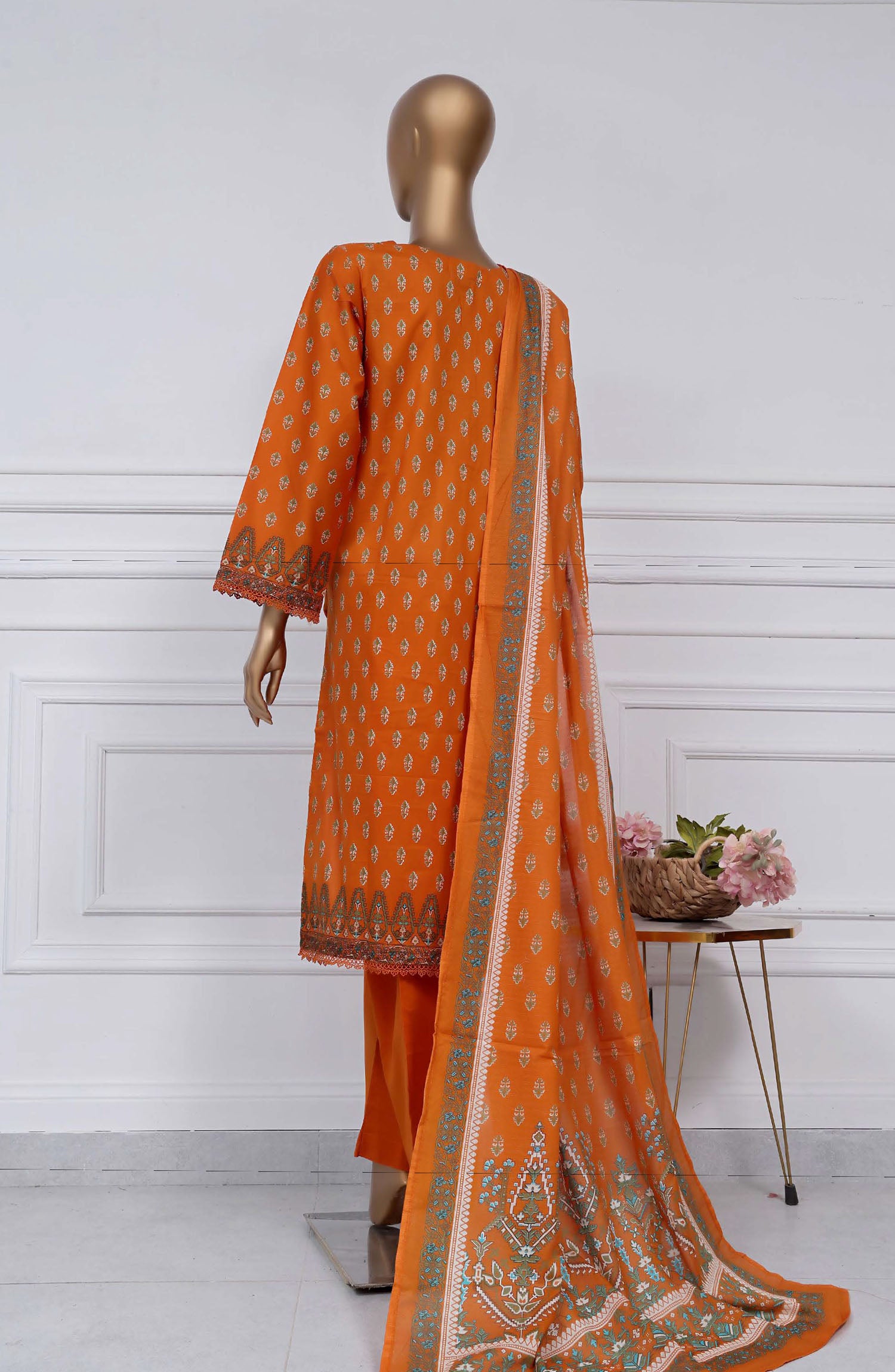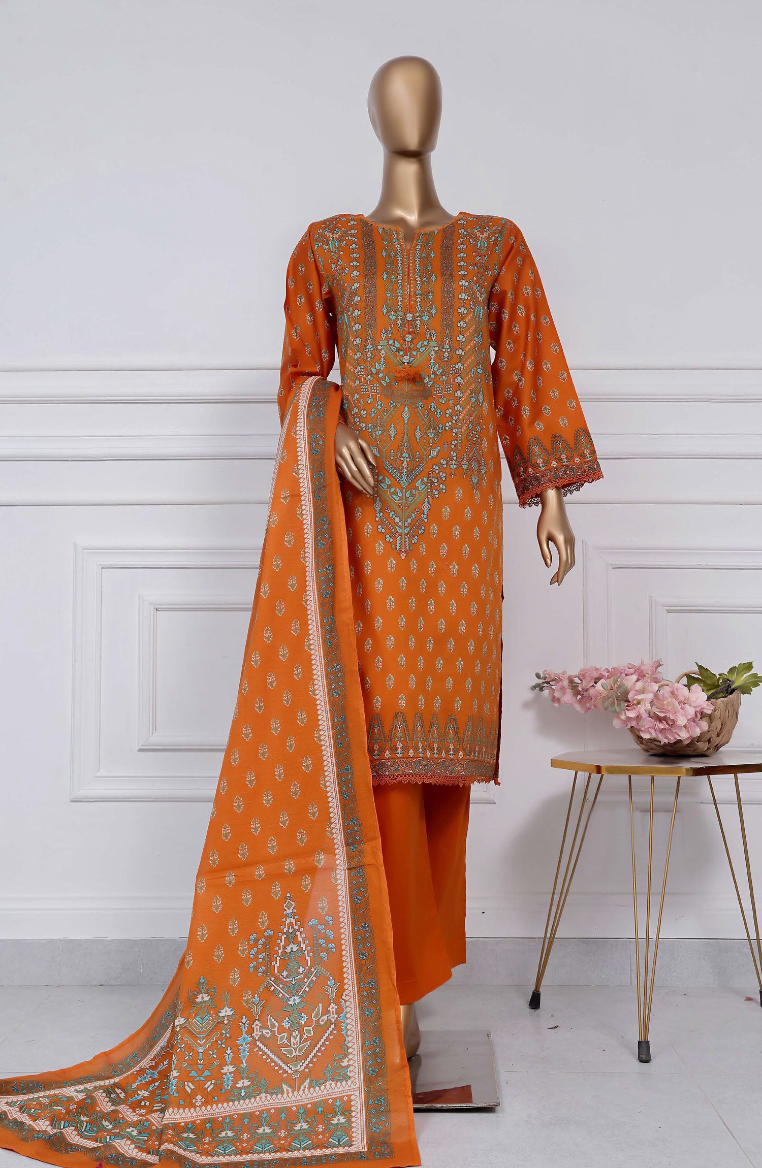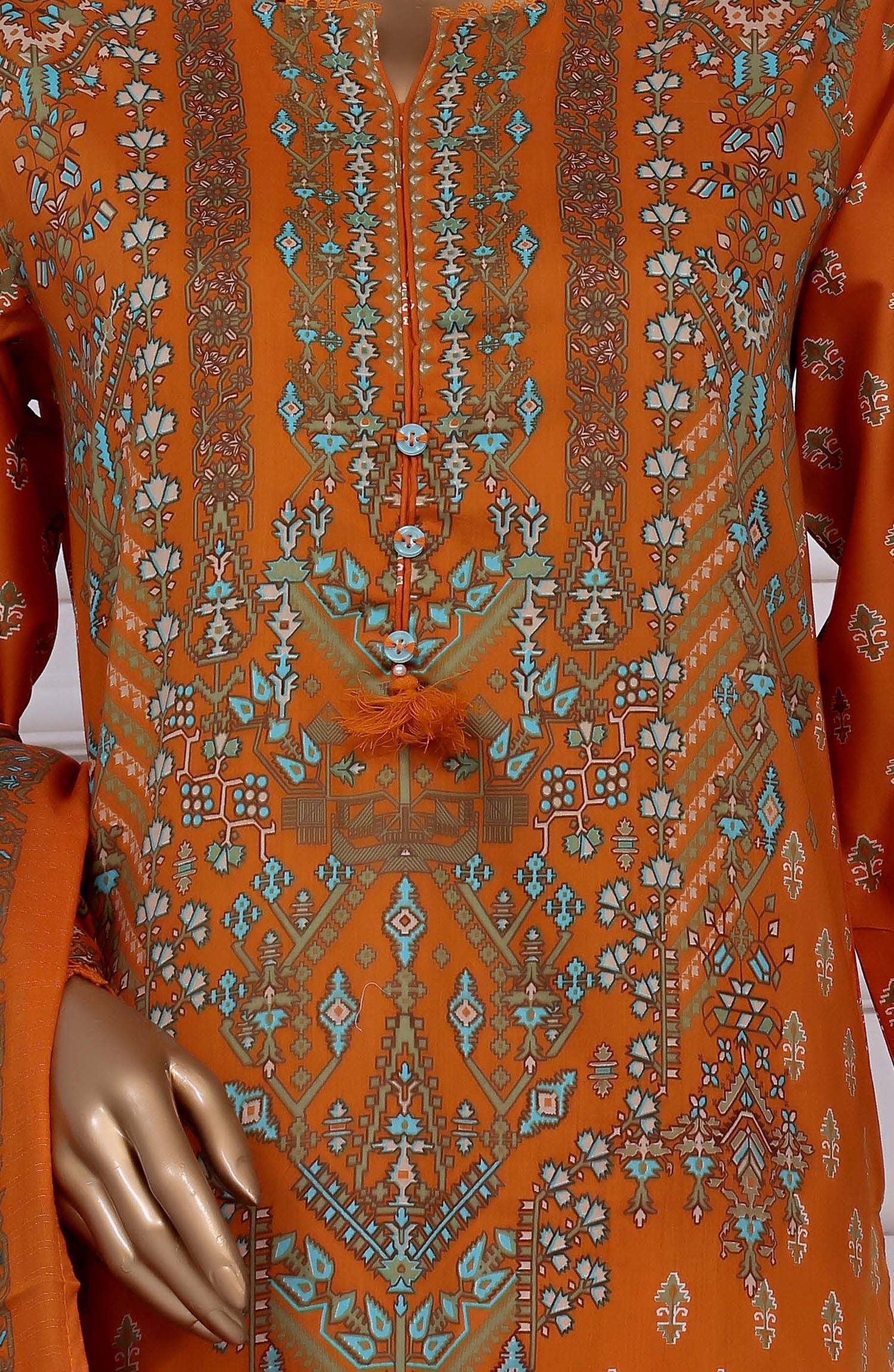 Home Sadabahar Printed Lawn Stitched 3 Piece Suit - D-21 - SBD25PLV2 - Orange - Summer Collection