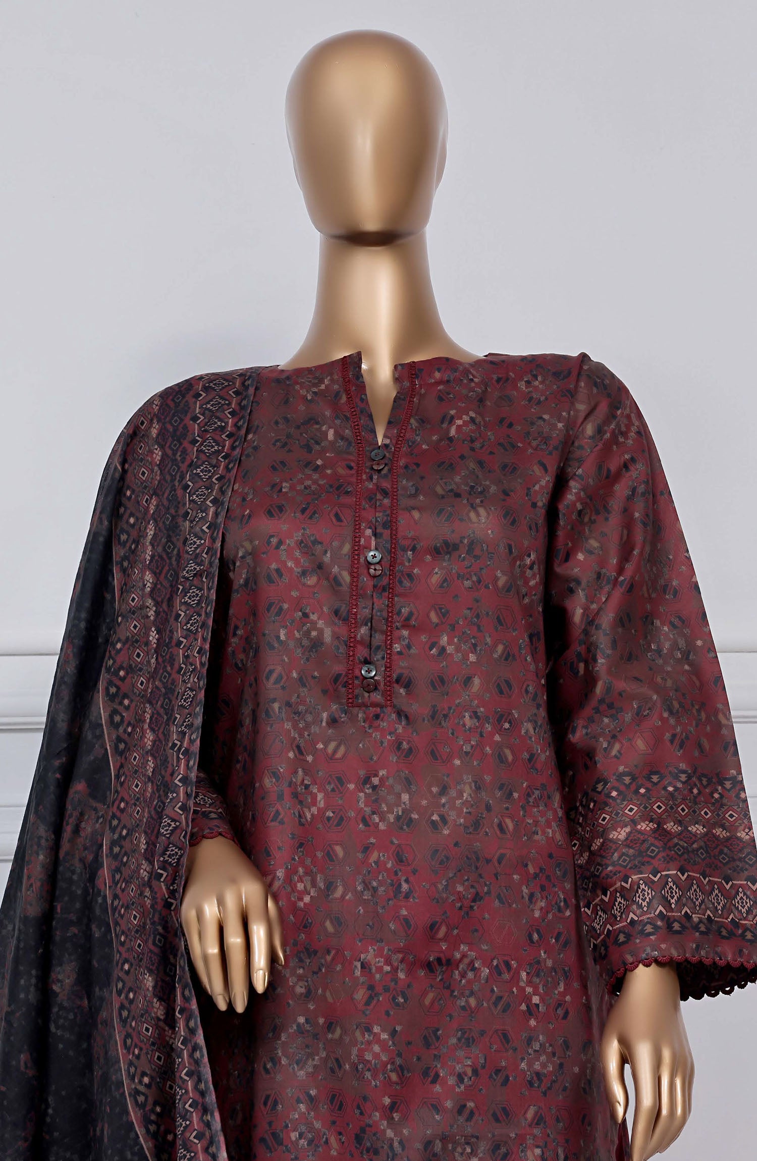 3 Piece Printed Stitched Lawn Suit.