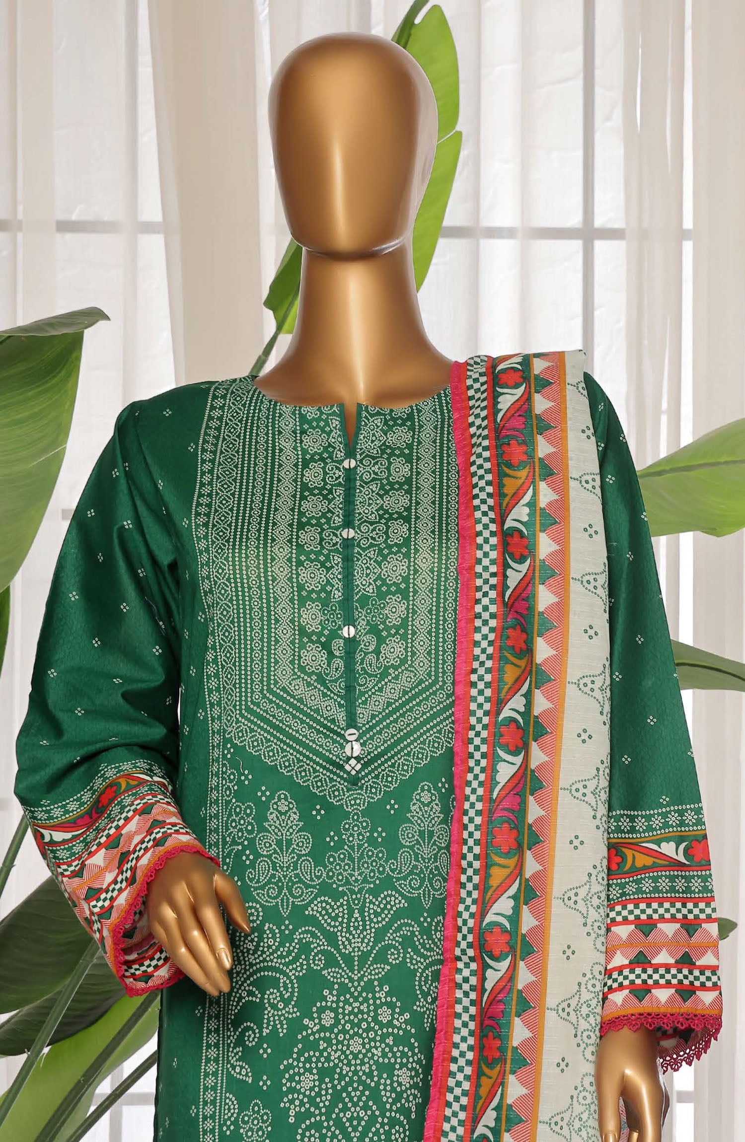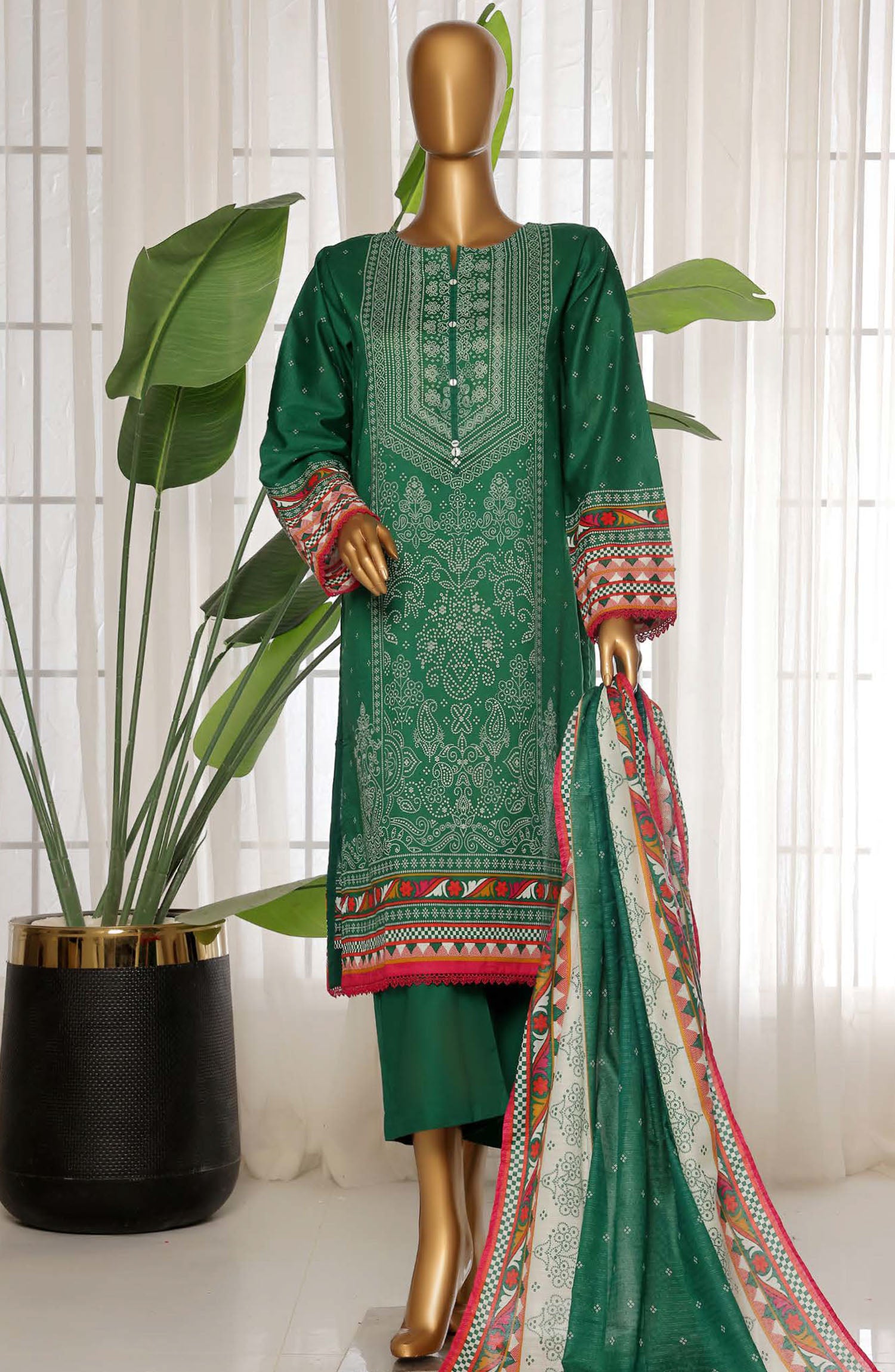 Home Sadabahar Printed Lawn Stitched 3 Piece Suit - D-22 - SDB25PLV3 - Green - Summer Collection
