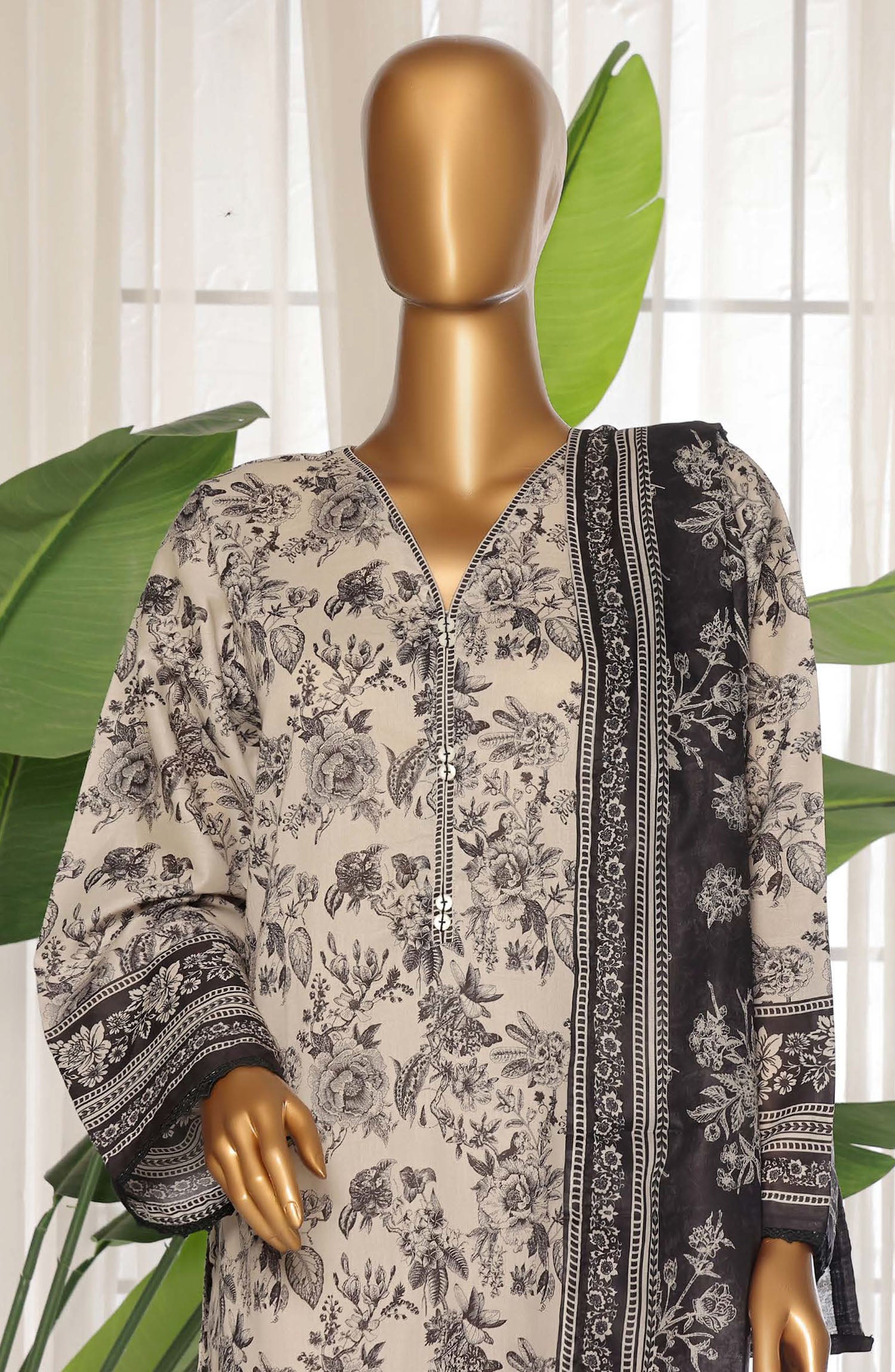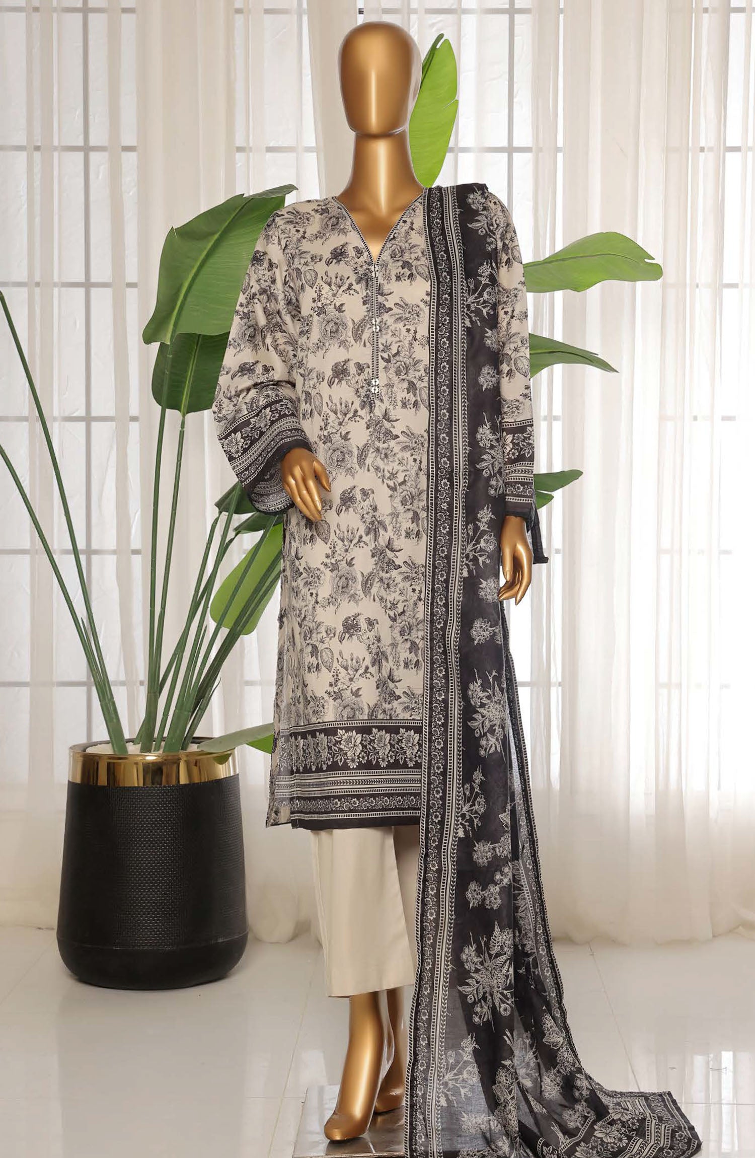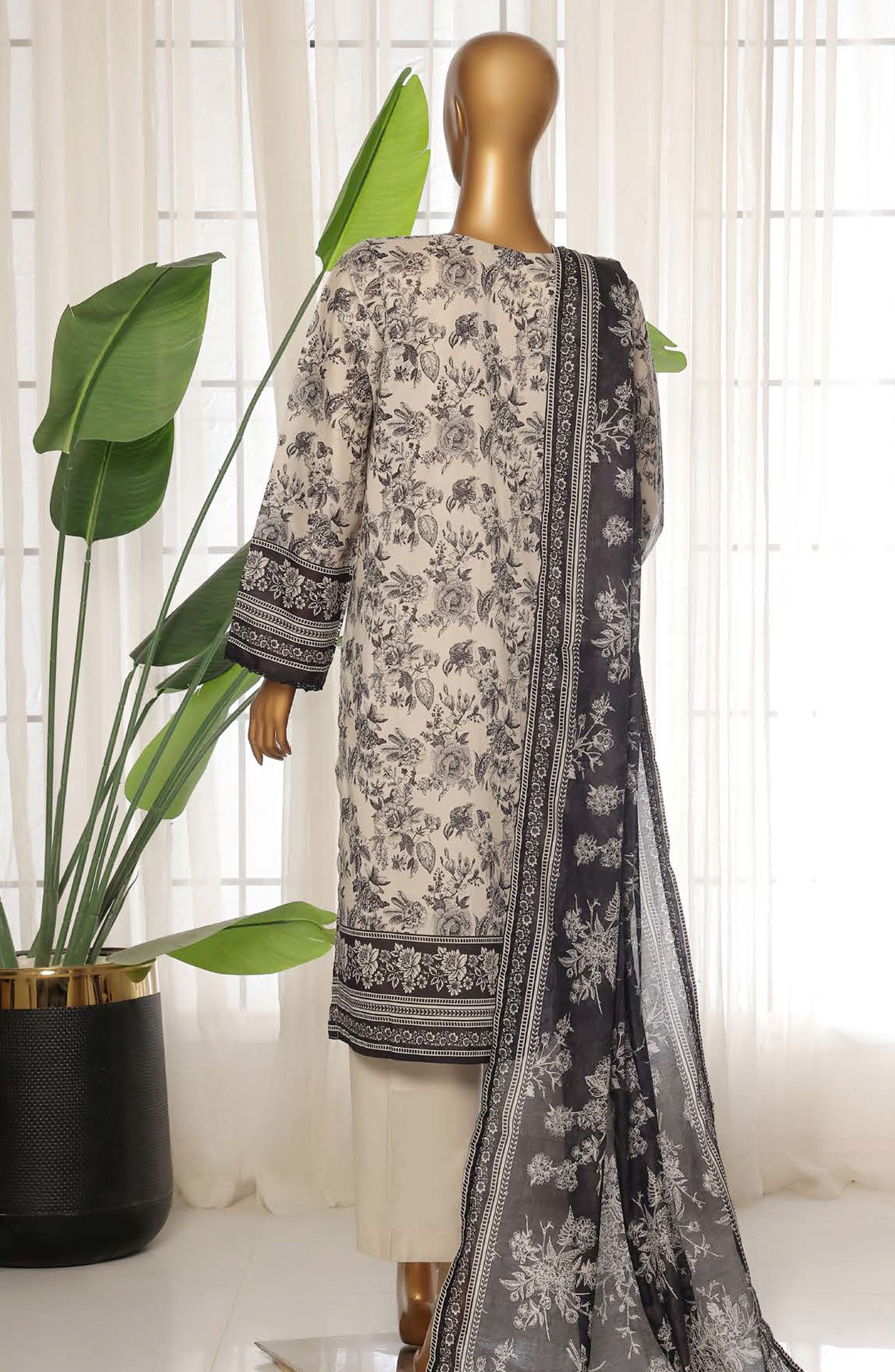 Home Sadabahar Printed Lawn Stitched 3 Piece Suit - D-24 - SDB25PLV3 - White - Summer Collection
