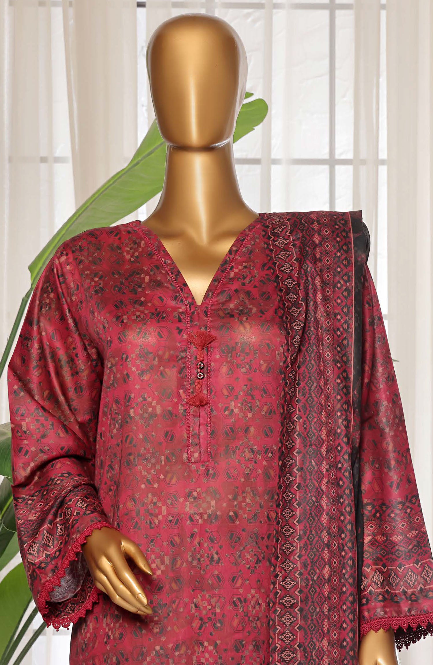 Home Sadabahar Printed Lawn Stitched 3 Piece Suit - D-25 - SDB25PLV3 - Red - Summer Collection