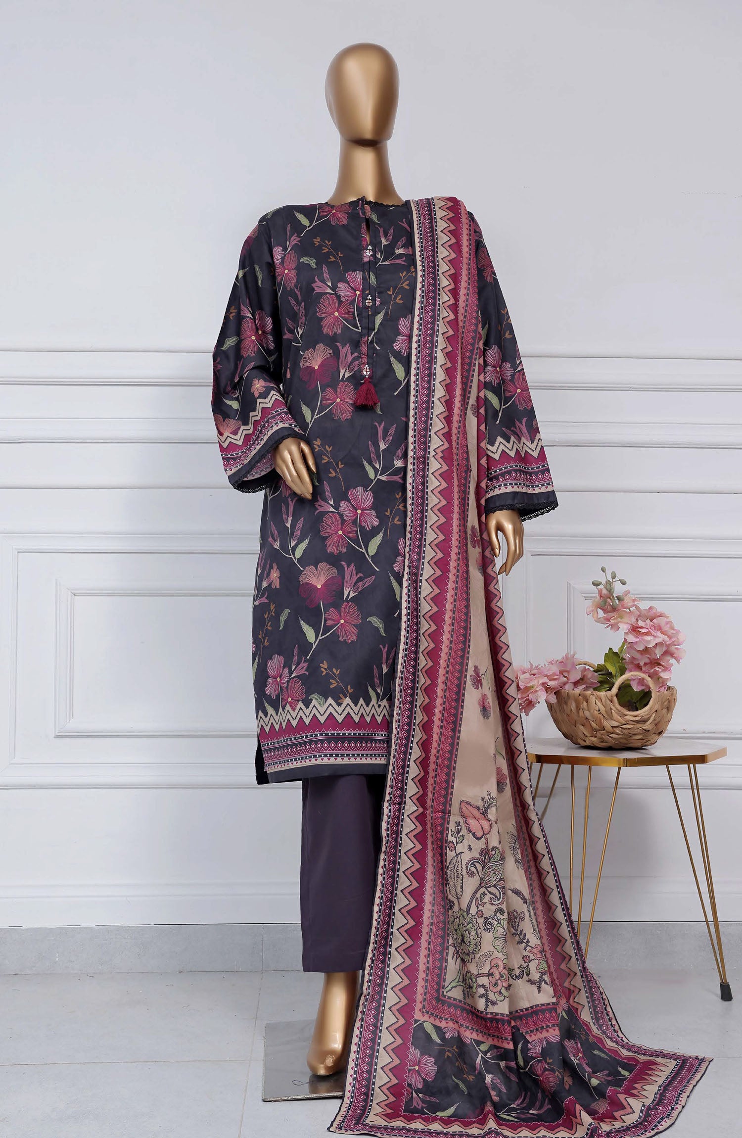 3 Piece Printed Stitched Lawn Suit.
