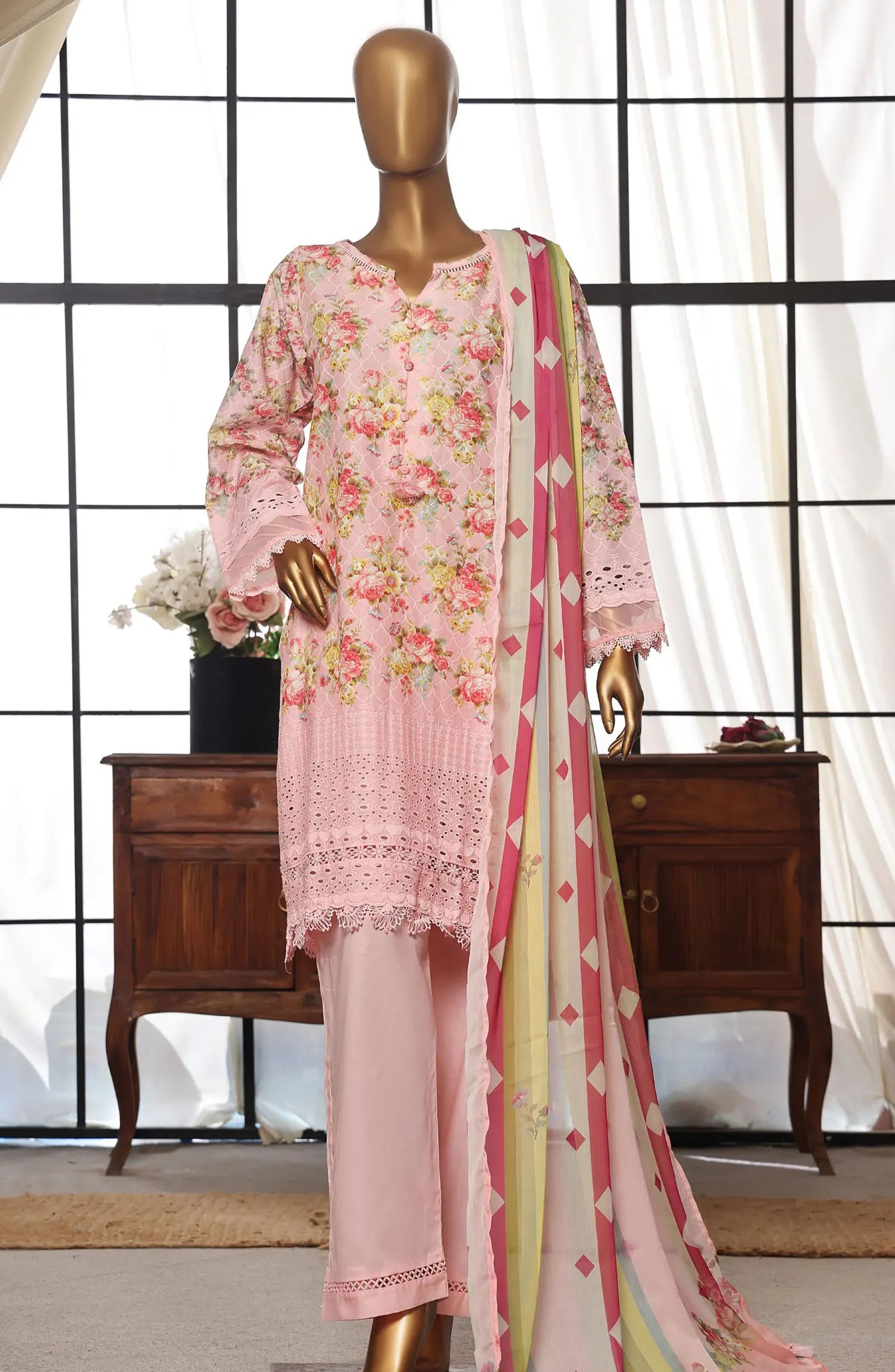 Printed and Chikankari Embroidery lawn shirt with Printed Chiffon Dupatta and Dyed Trouser