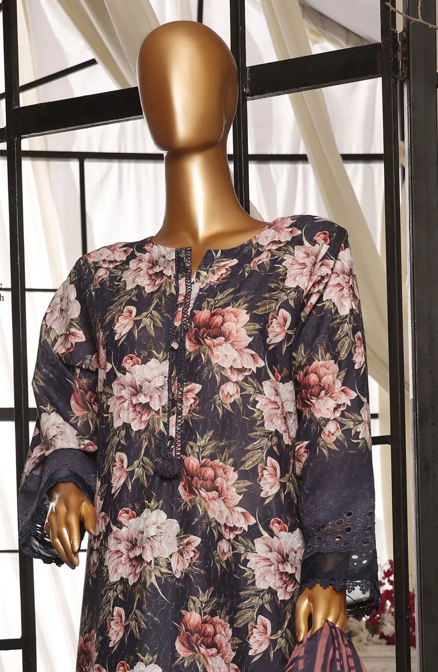 Sadabahar Premium Embroidered Cross Texture Stitched 3 Piece Suit - Design-03 - SBD25FEST - Blue - Winter Collection