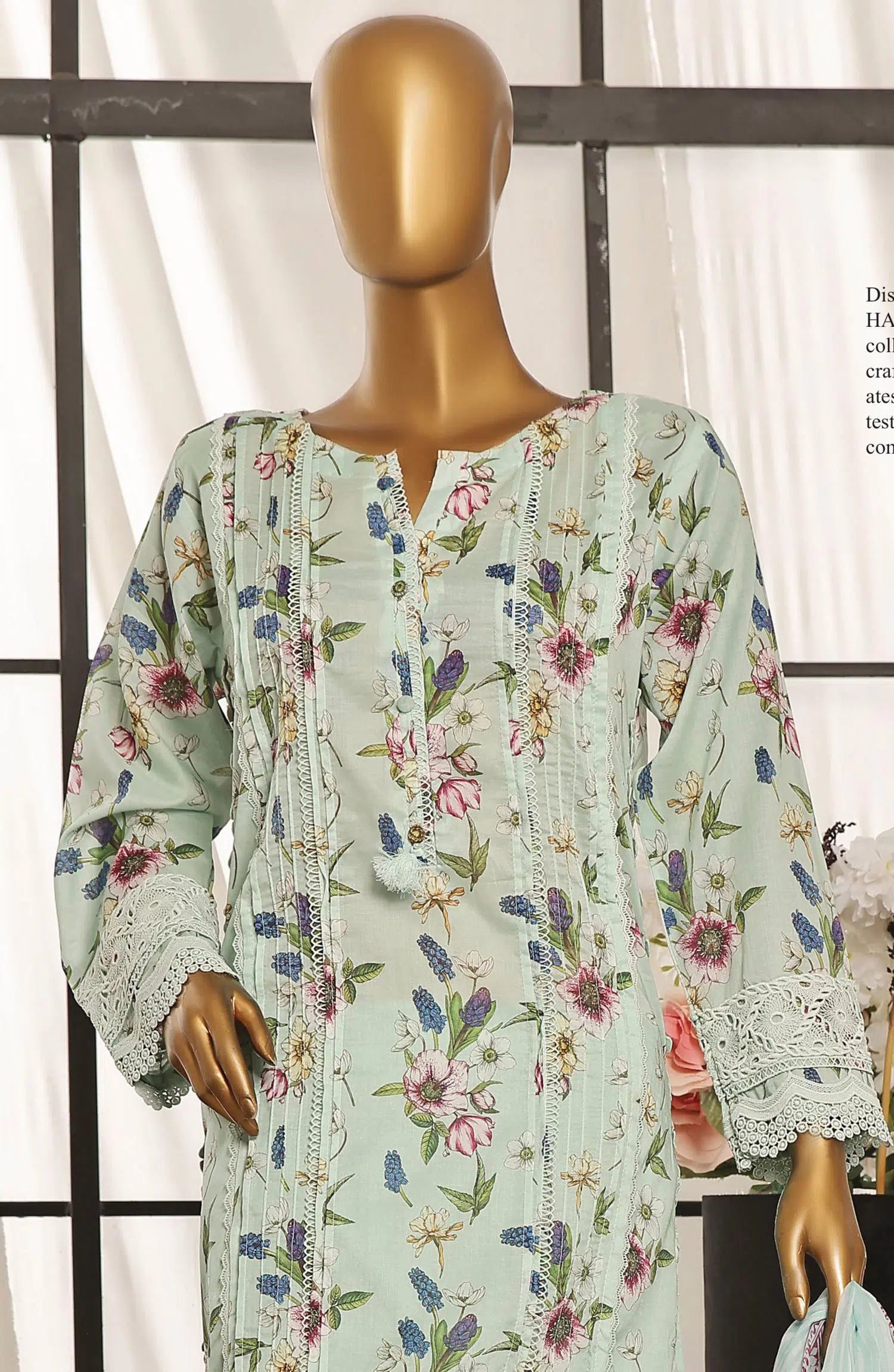 Printed stitched lawn suit with lace and cutwork with printed chiffon dupatta