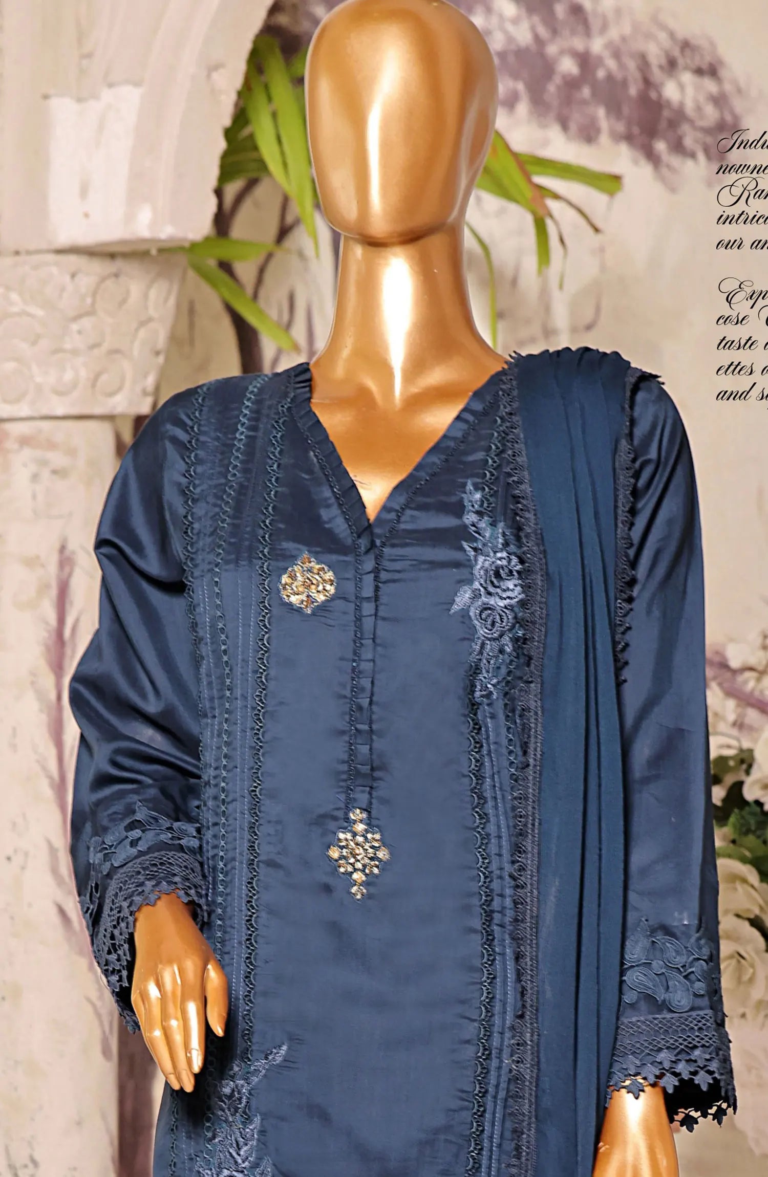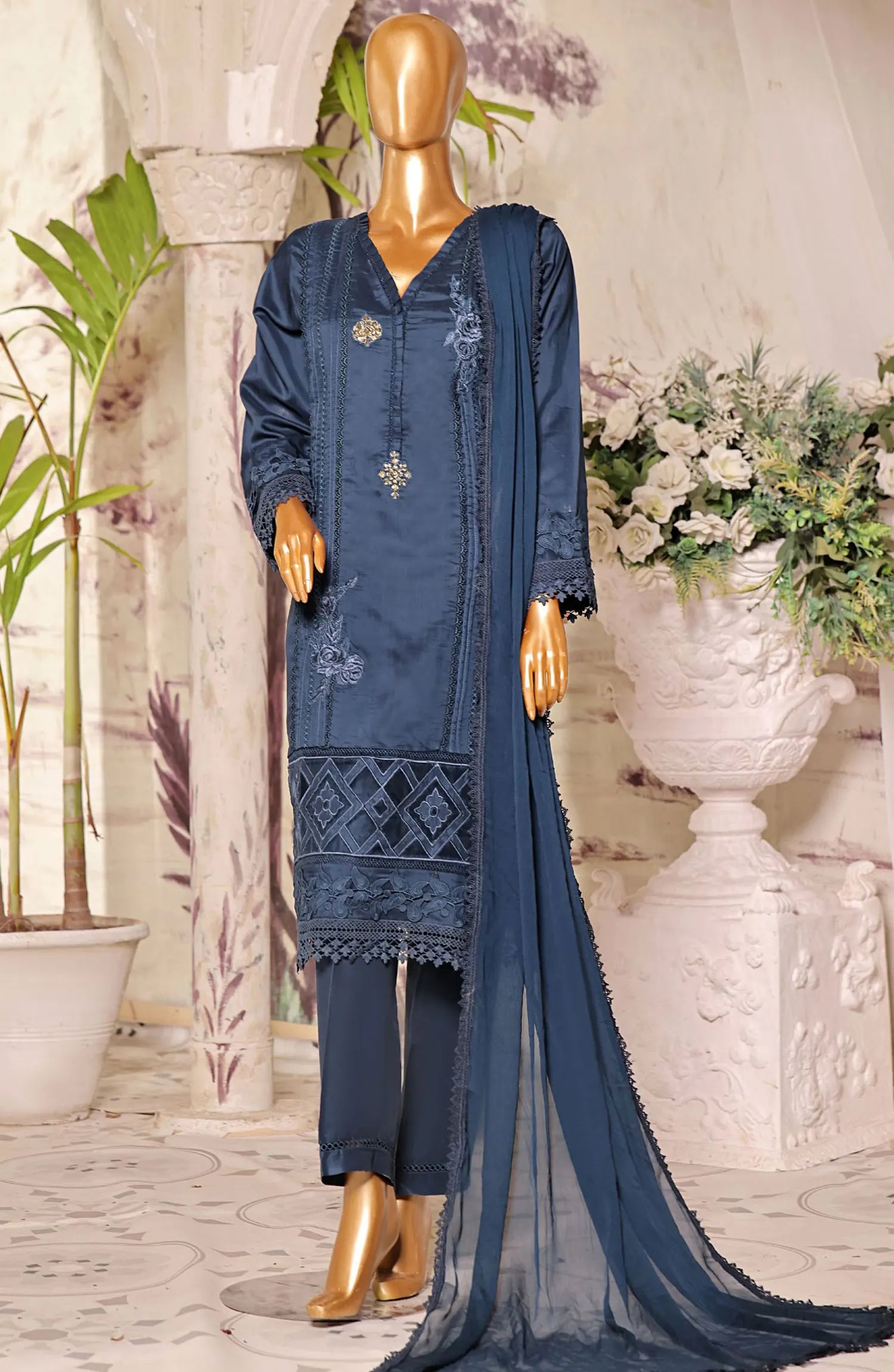 Sadabahar Premium Embroidered Cross Texture Stitched 3 Piece Suit - Design-03 - SBD25FEST - Blue - Winter Collection