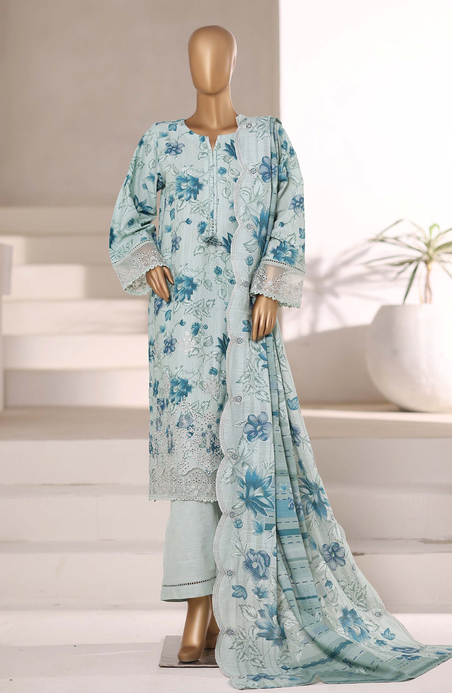 Embroidered Khaddar Stitched 3 Piece Suit