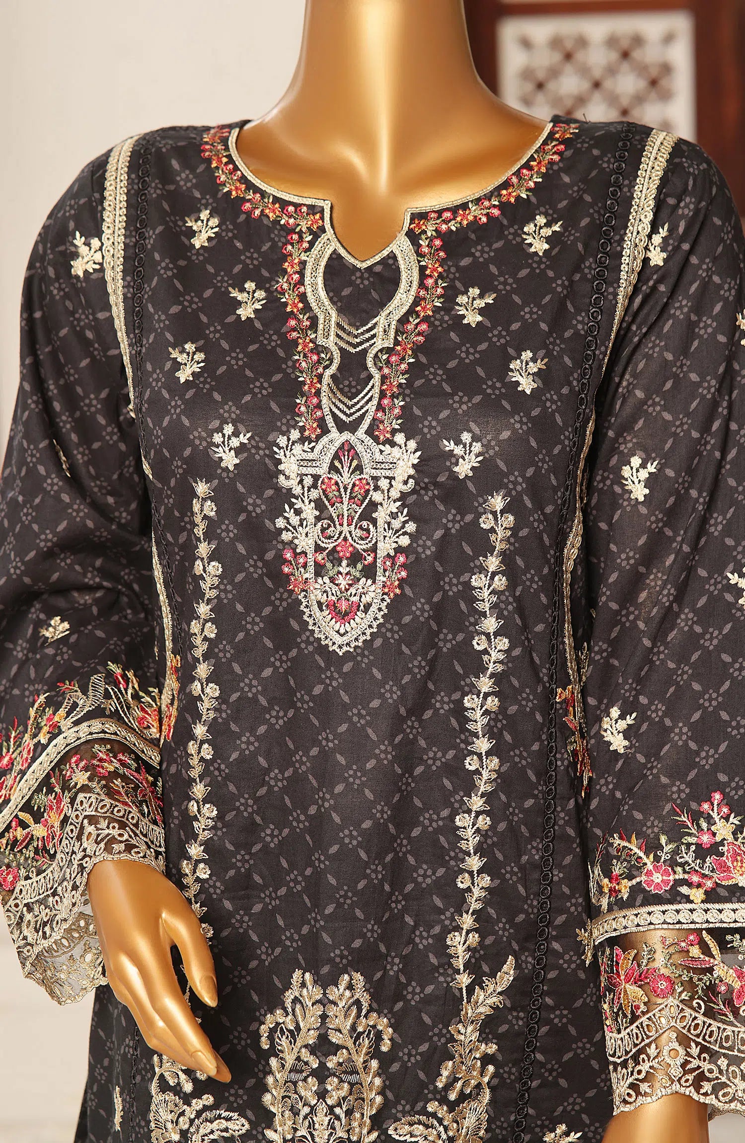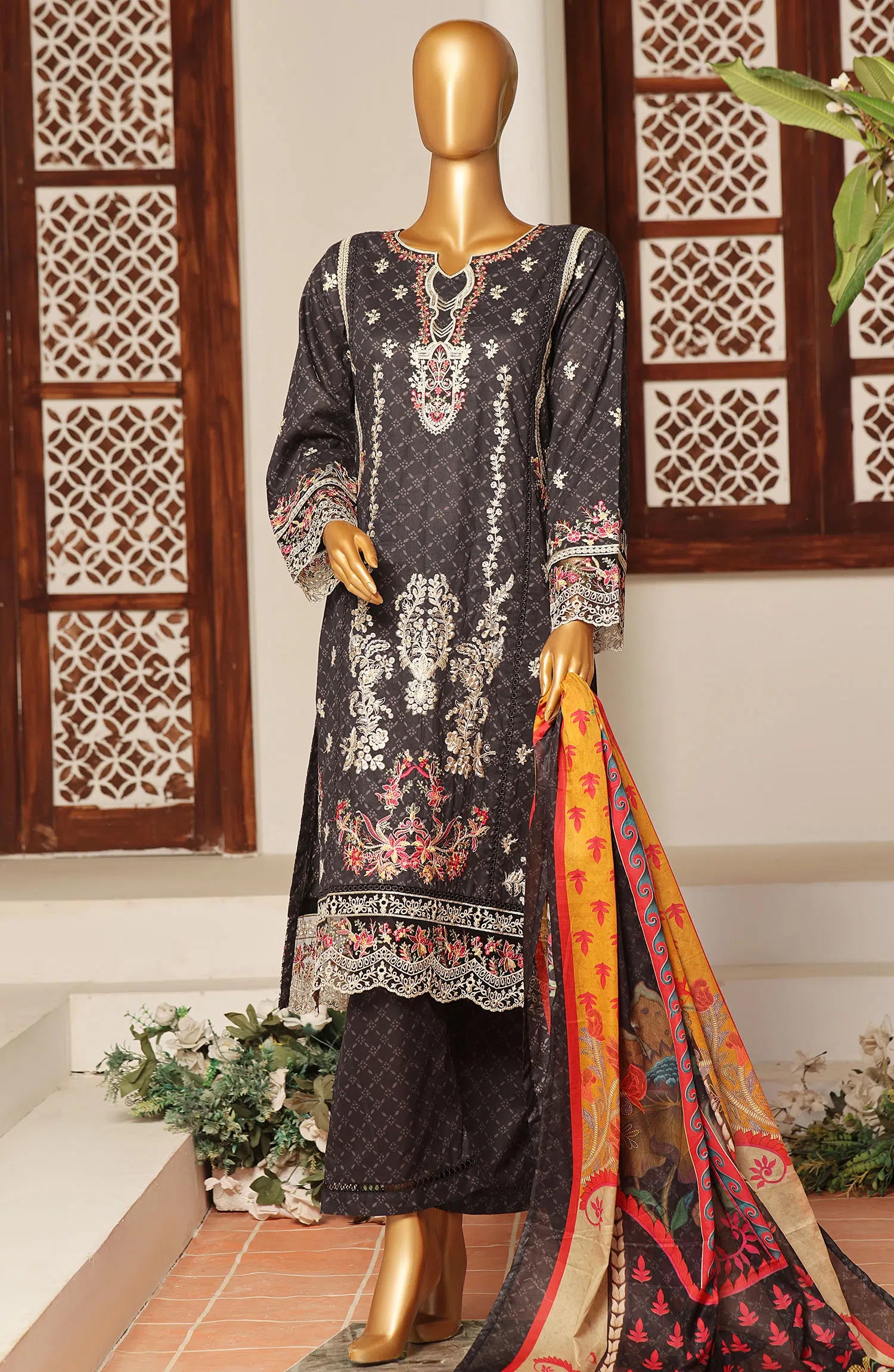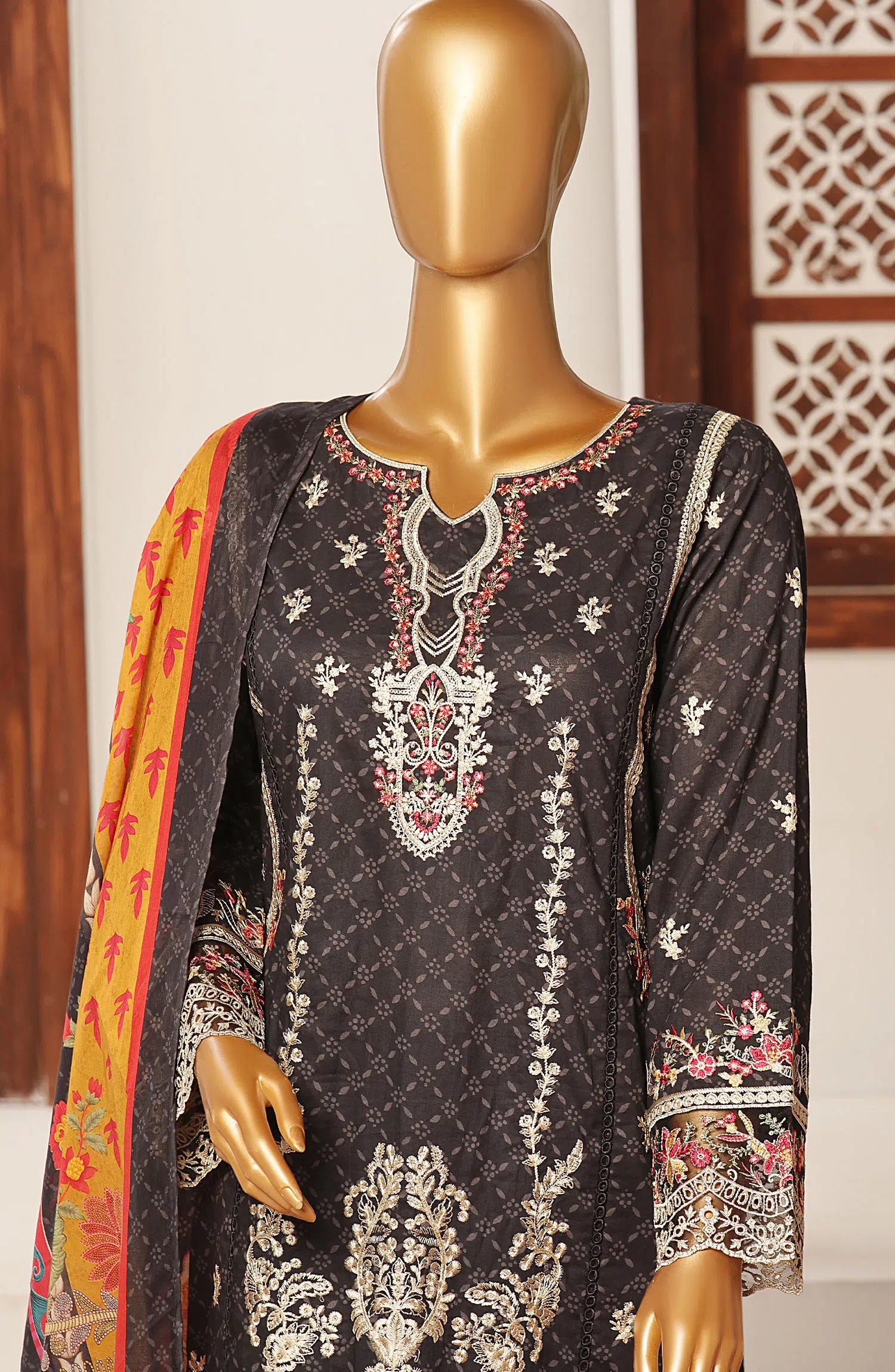 Modest Embroidered Khaddar Stitched 3 Piece Suit - 9990-Blk - MOD25WNT - Black - Winter Collection