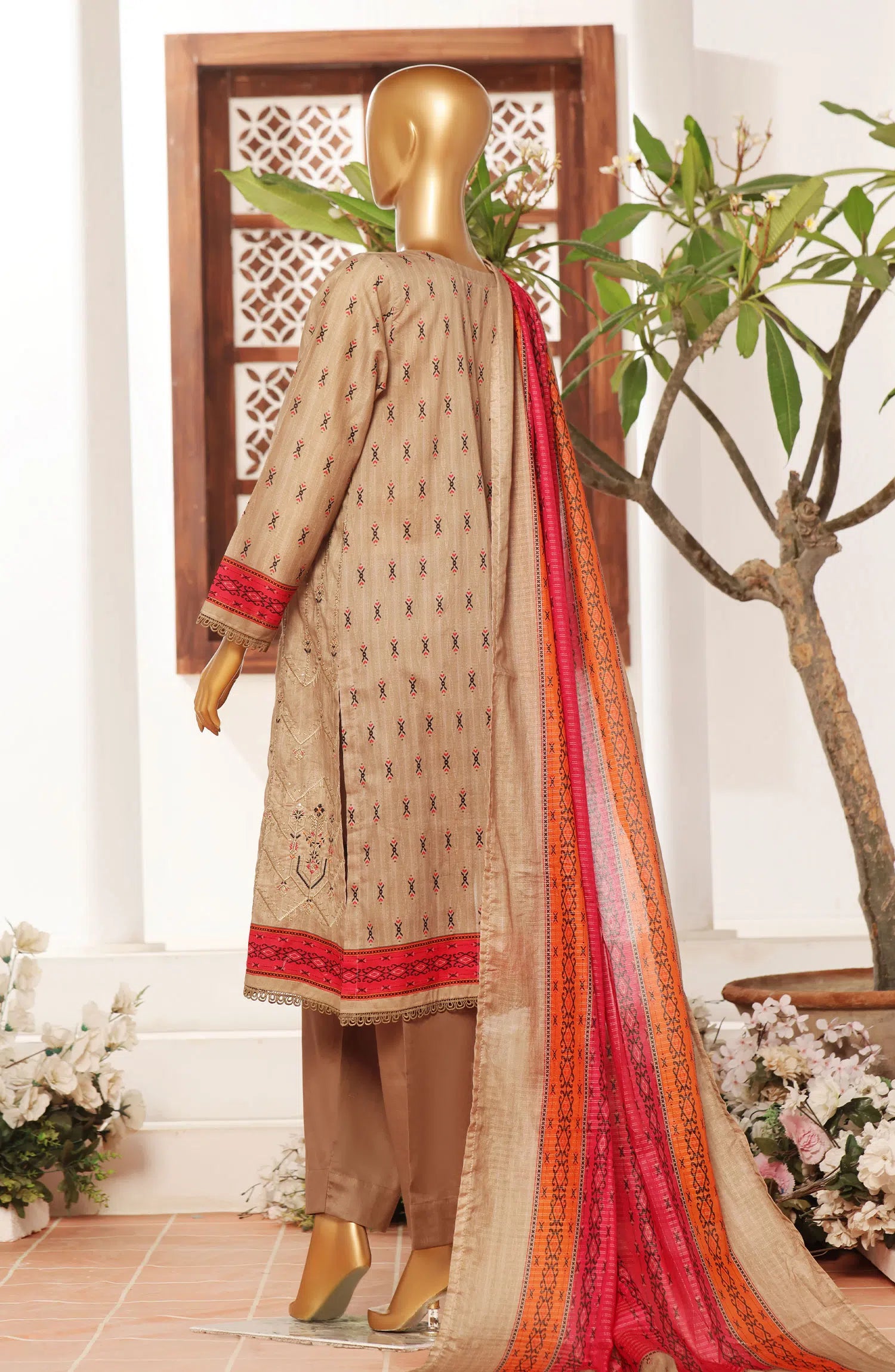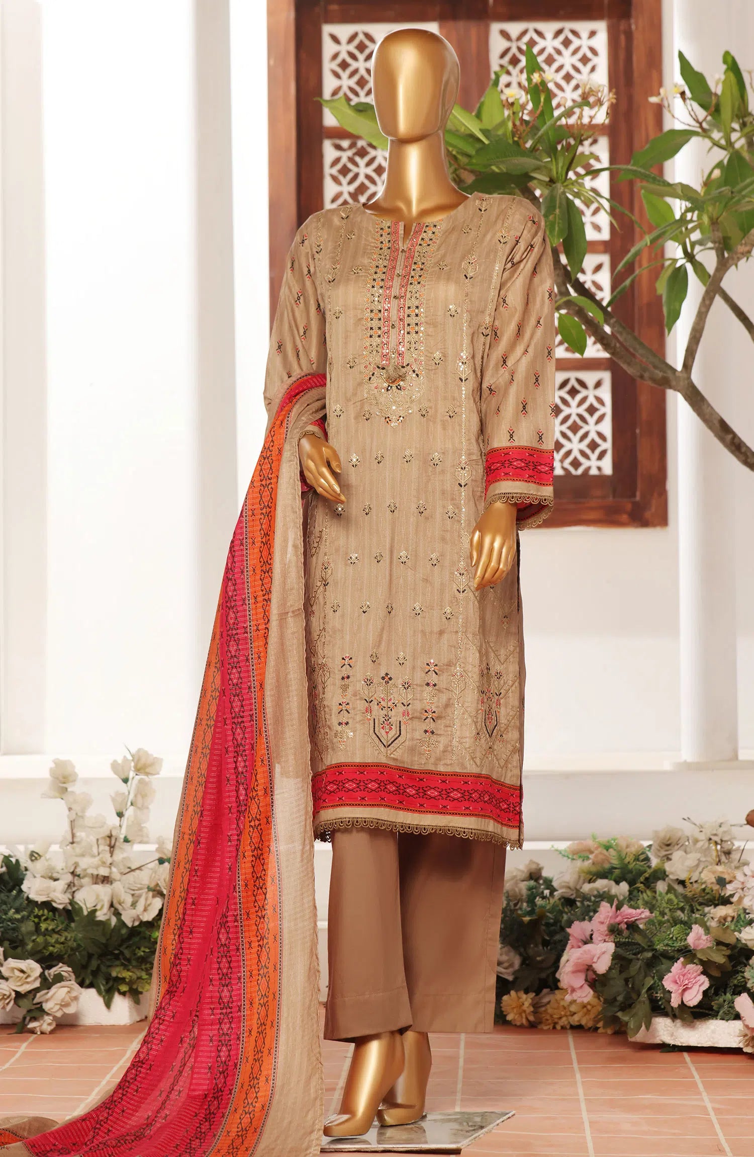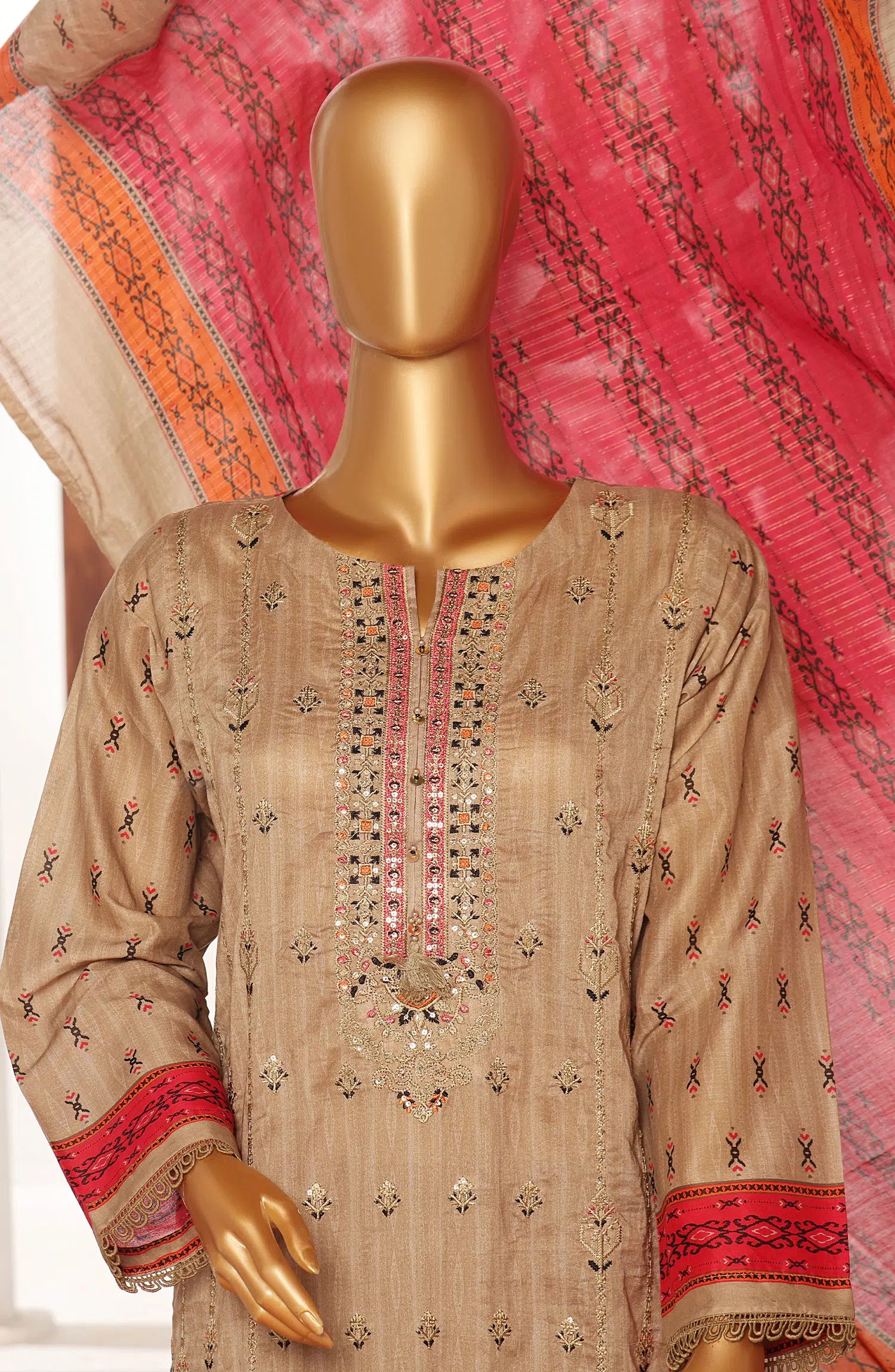 Modest Embroidered Khaddar Stitched 3 Piece Suit - 10000-Brn - MOD25WNT - Brown - Winter Collection