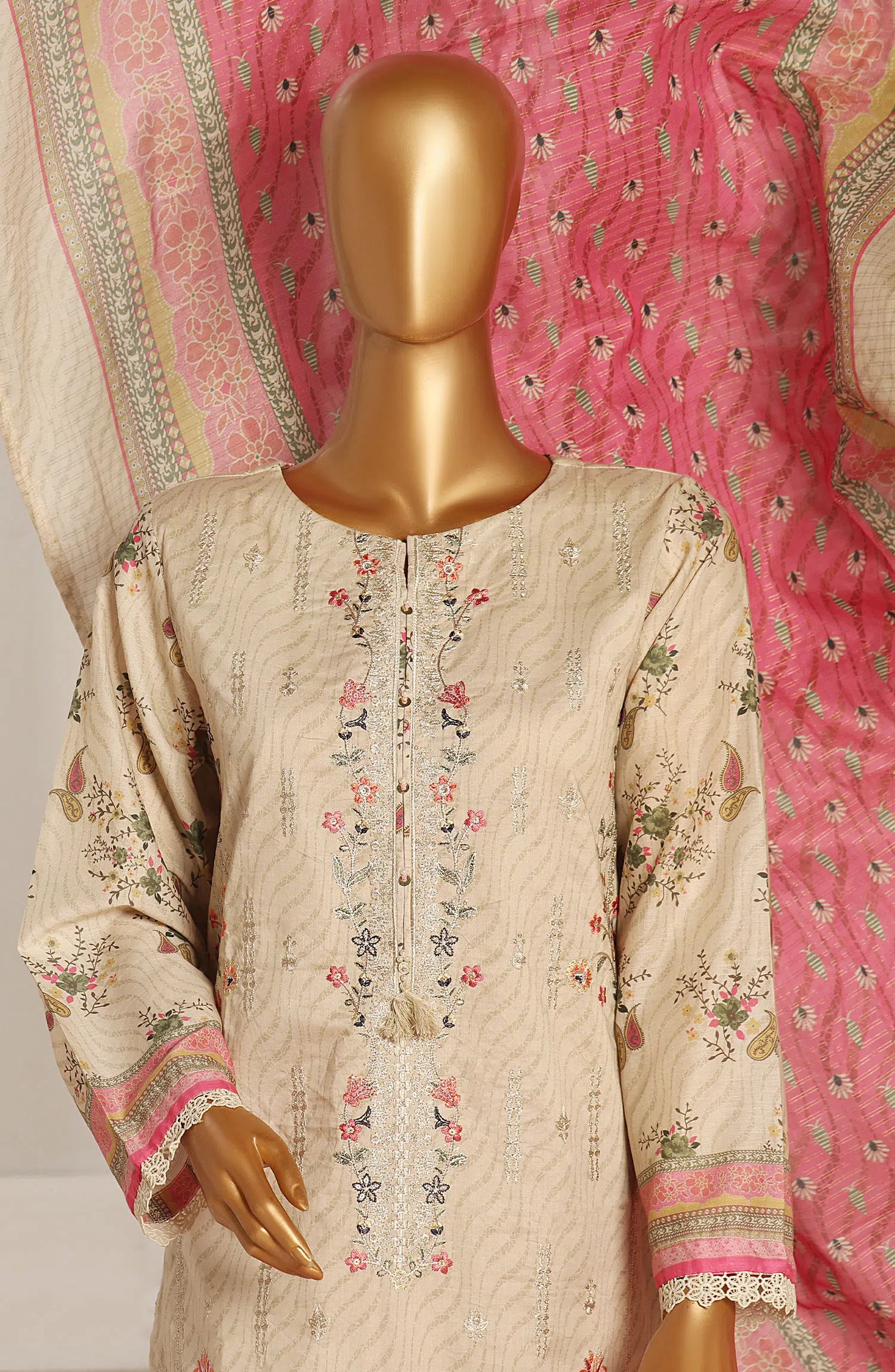 Maryams Luxury Embroidered Net Unstitched 3 Piece Suit - Eiraam-ARZ-8003 - MAR25LF - Fawn - Festive Collection