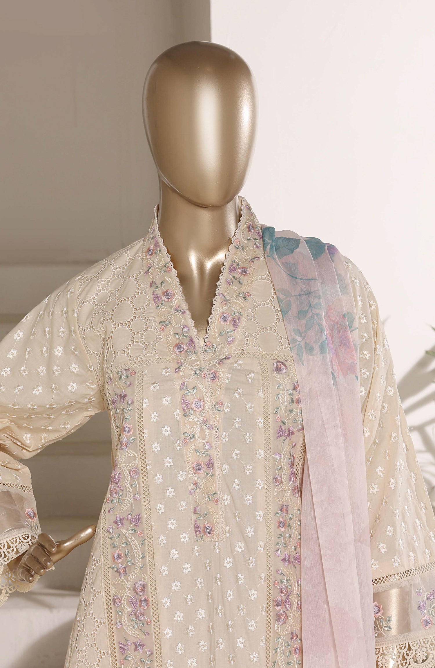 Luxury Embroidered Chikankari Stitched 3 Piece Suit