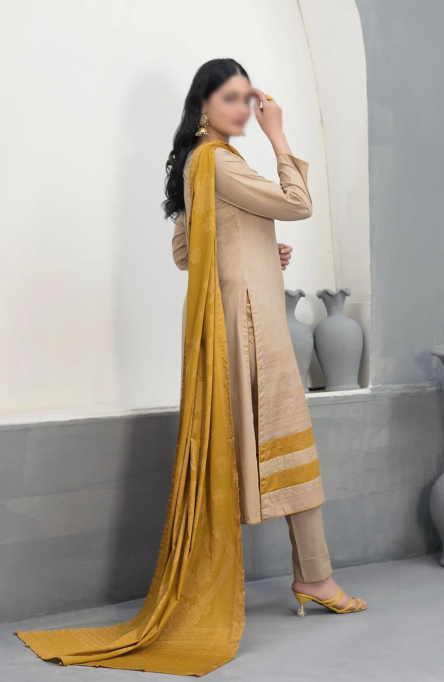 Rua by Casual Lite Embroidered Premium Linen Stitched 3 Piece Suit - D-01 Olive Mustard Hue - CL25RU - Dhani - Winter Collection