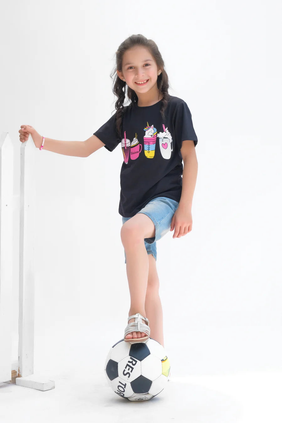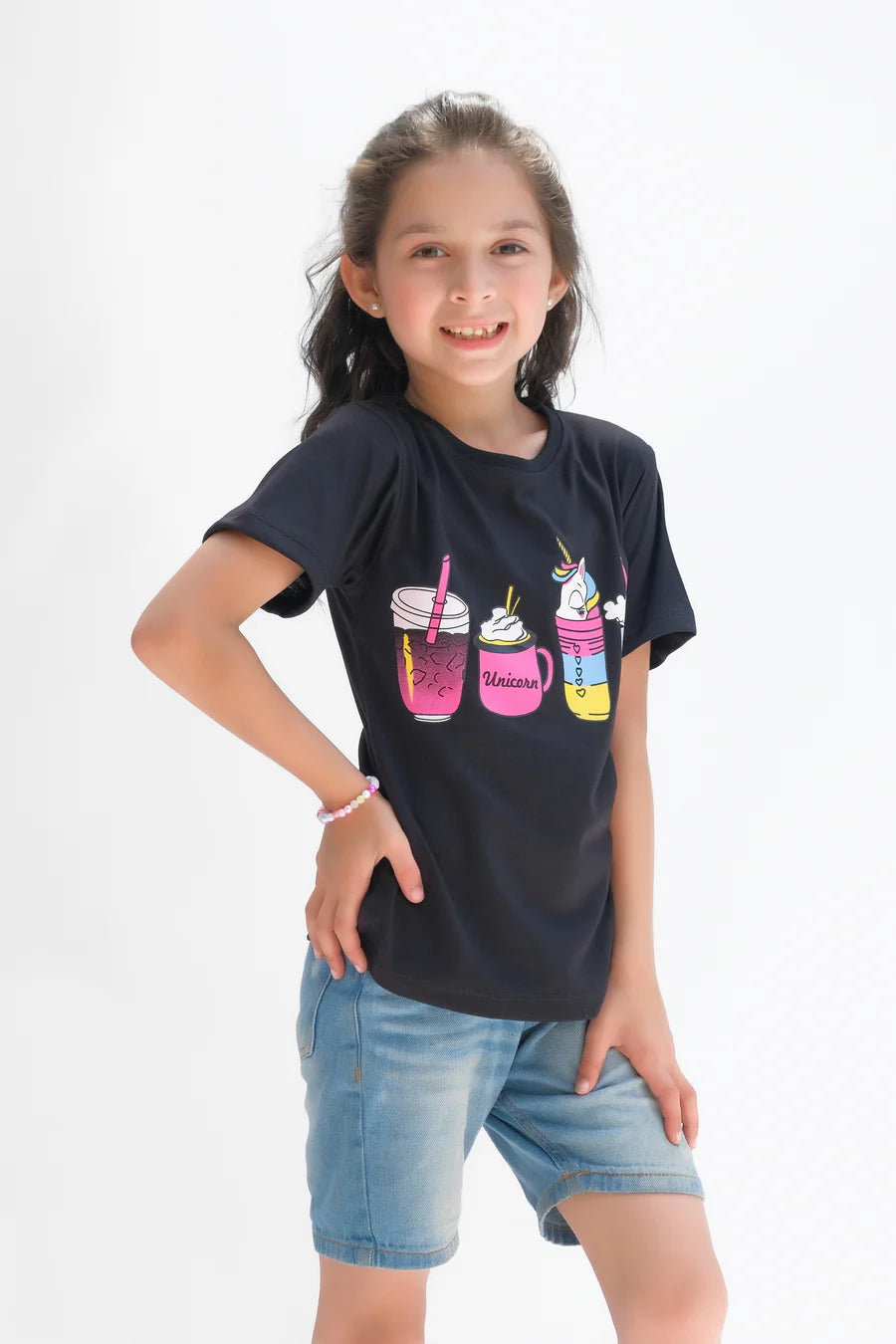 Unicorn Shake - Half Sleeves T-Shirts For Kids - Black