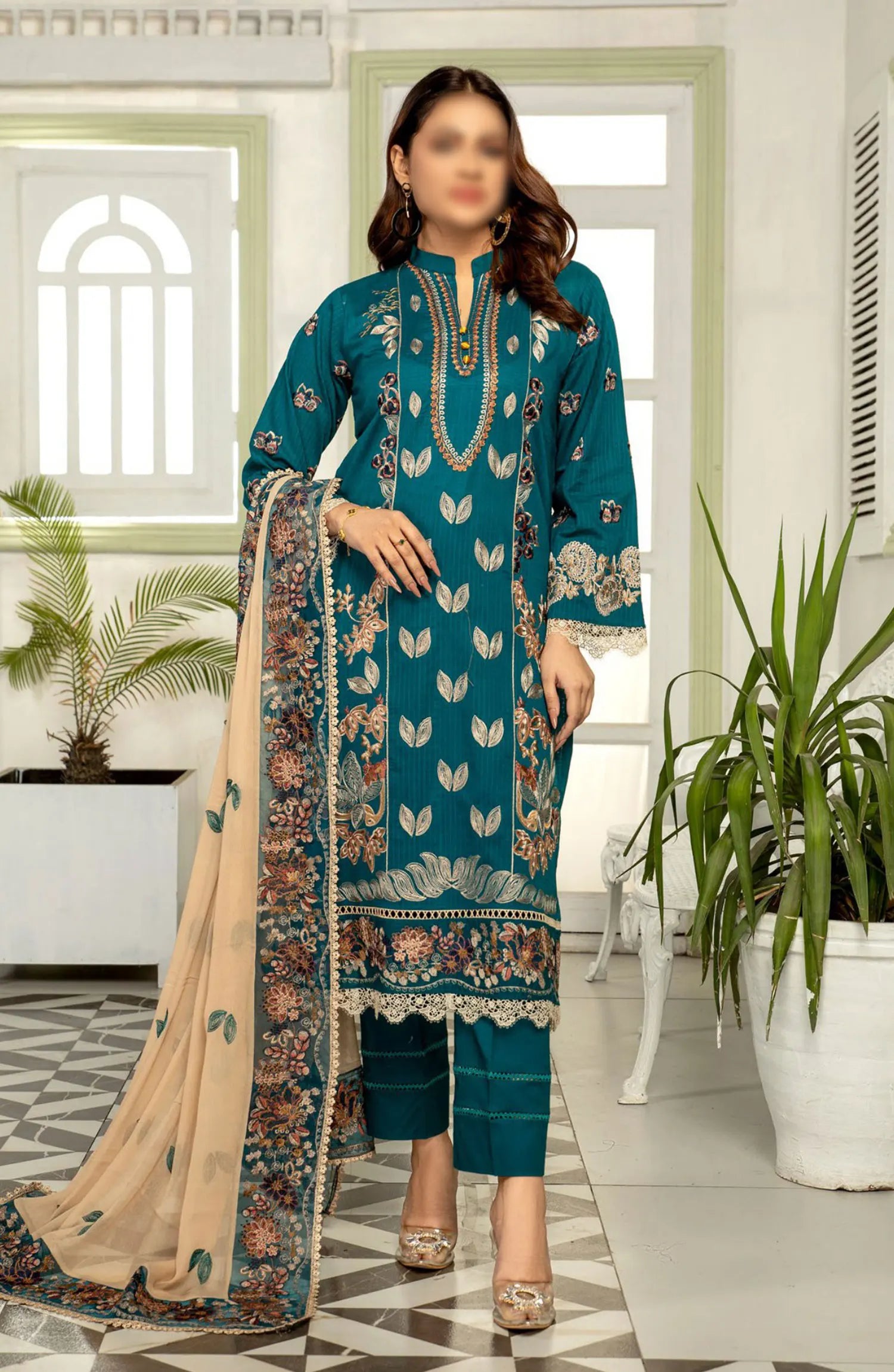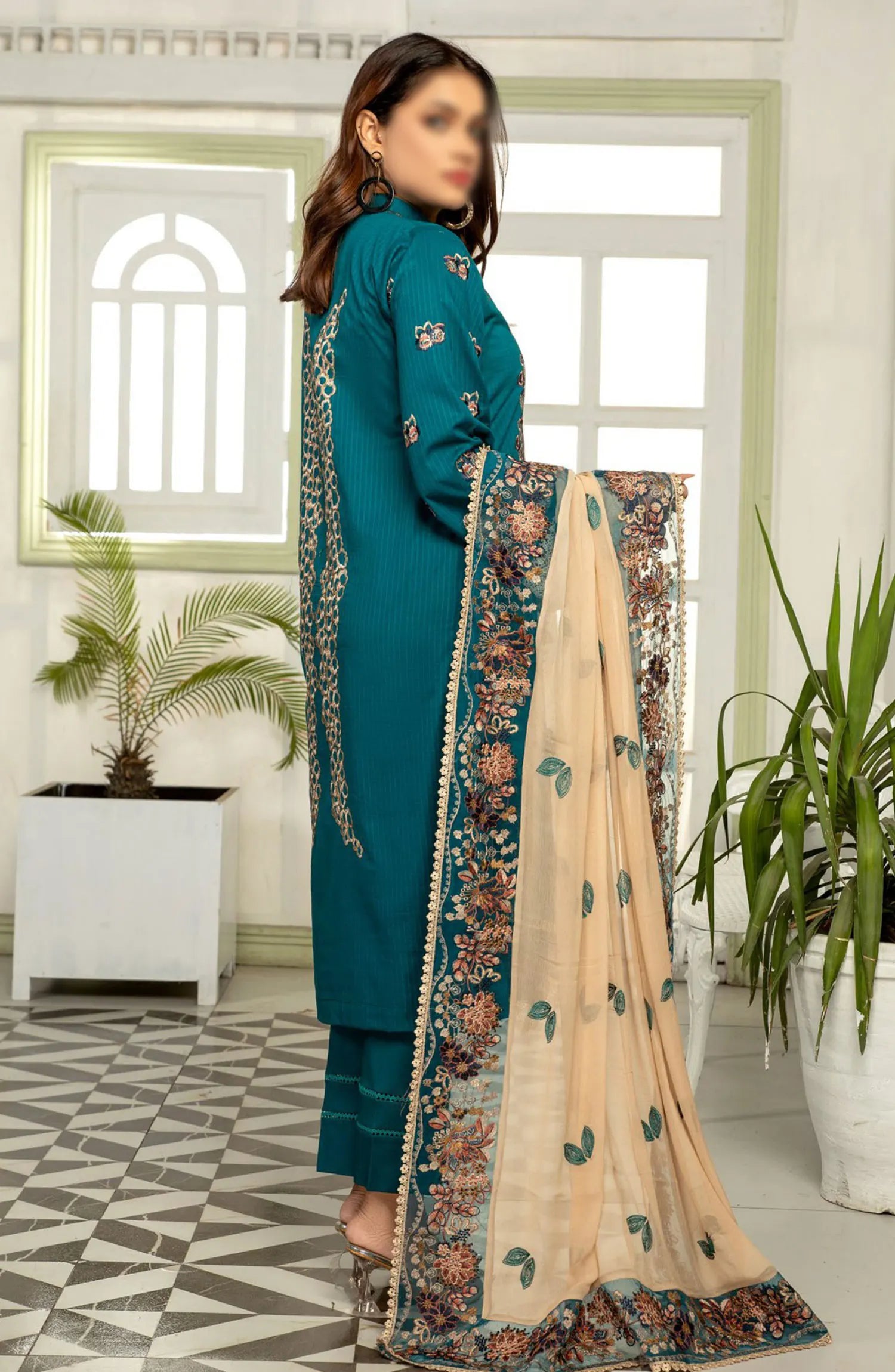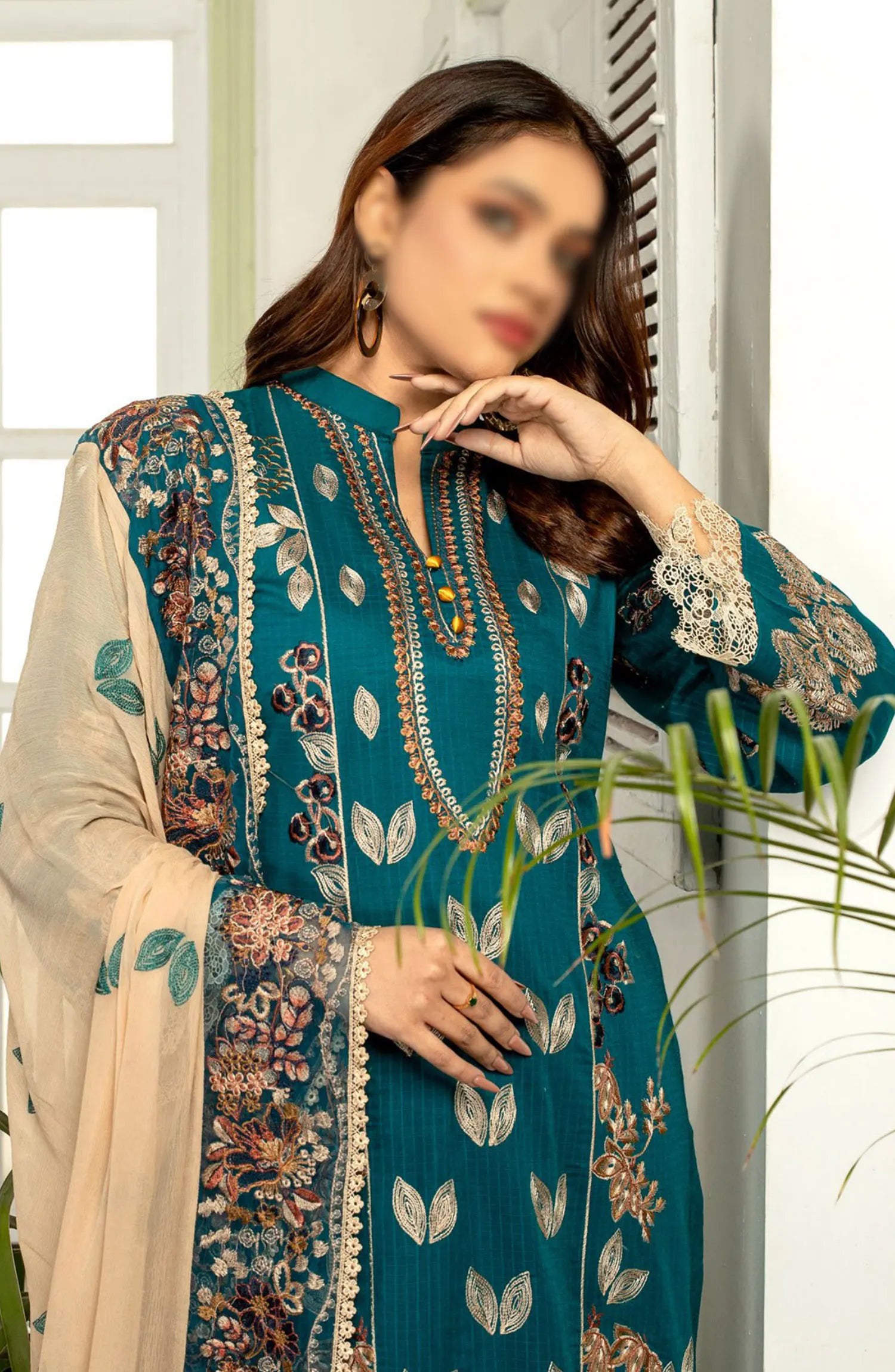 Mohar by Amna Khadija Embroidered Shamooz Silk Stitched 2 Piece Suit - AKMS-04 - AM25HARR - Blue - Winter Collection