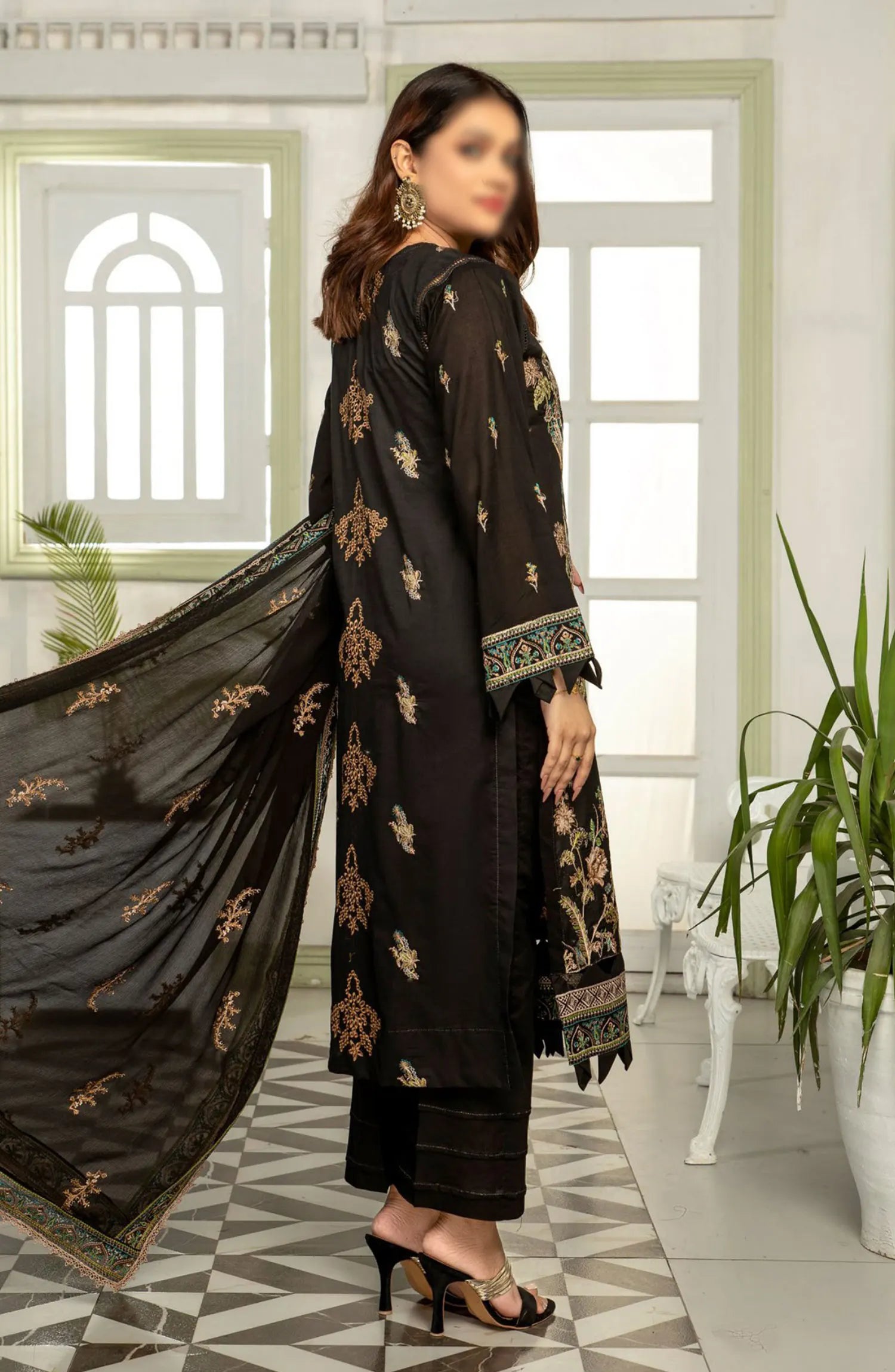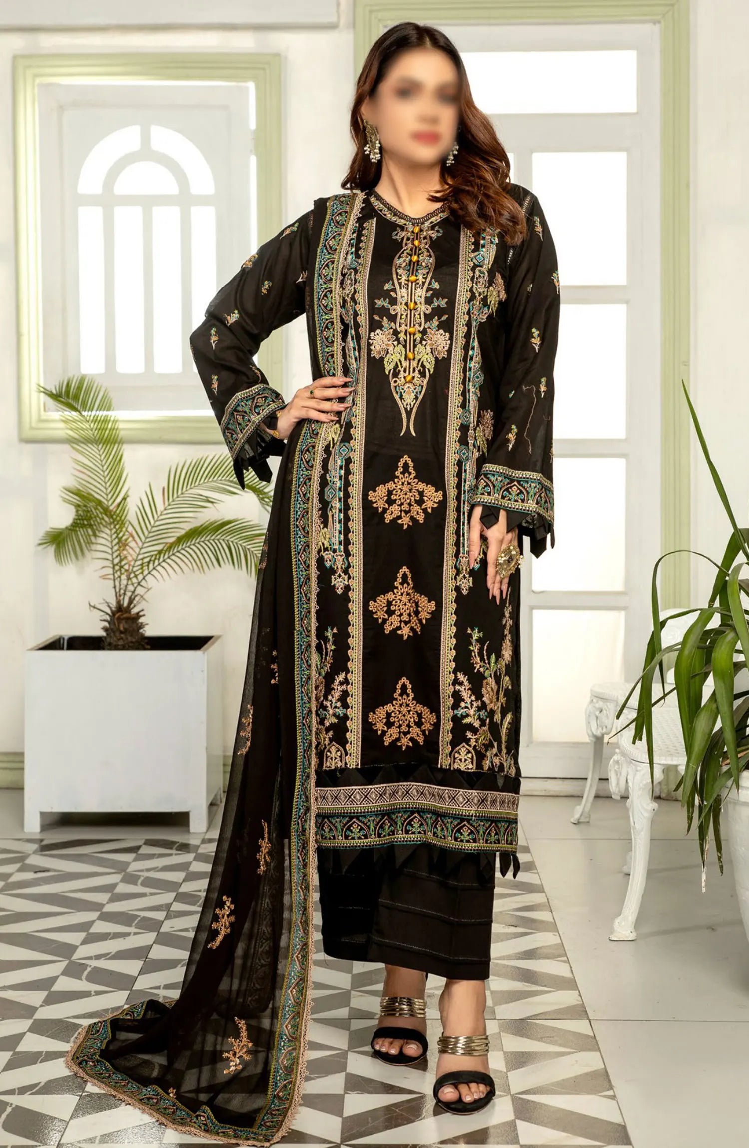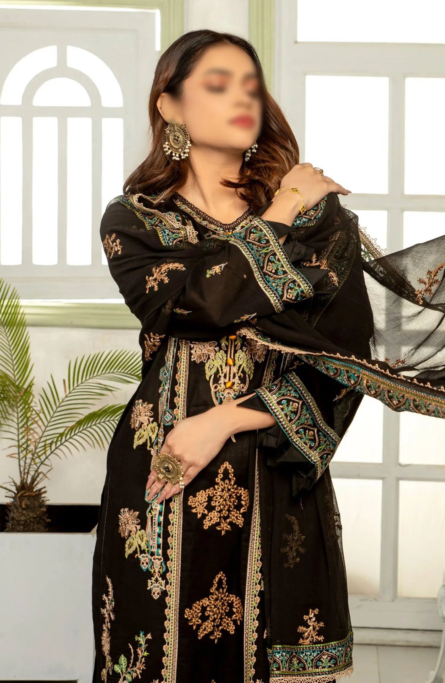 Mohar by Amna Khadija Embroidered Shamooz Silk Stitched 2 Piece Suit - AKMS-03 - AM25HARR - Black - Winter Collection