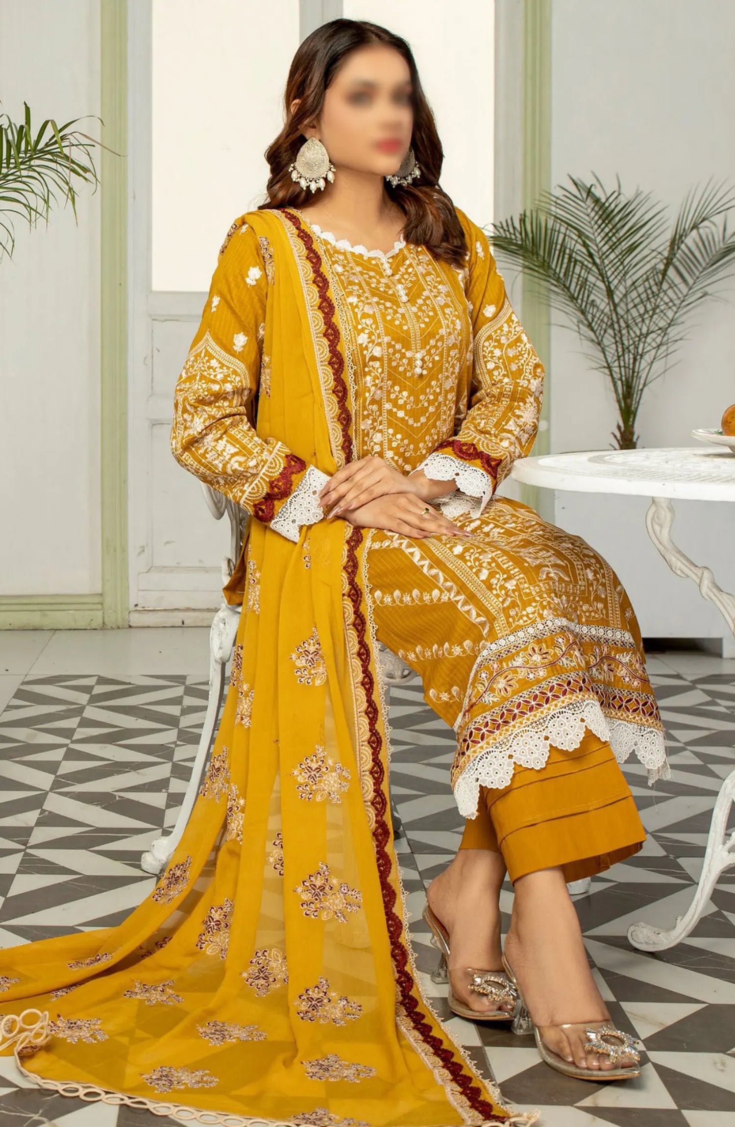 Saffron Premium Embroidered Lawn Collection 2024 - Design 06