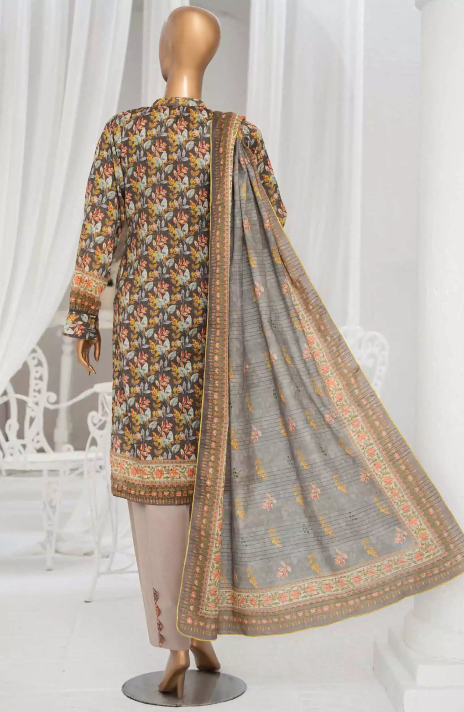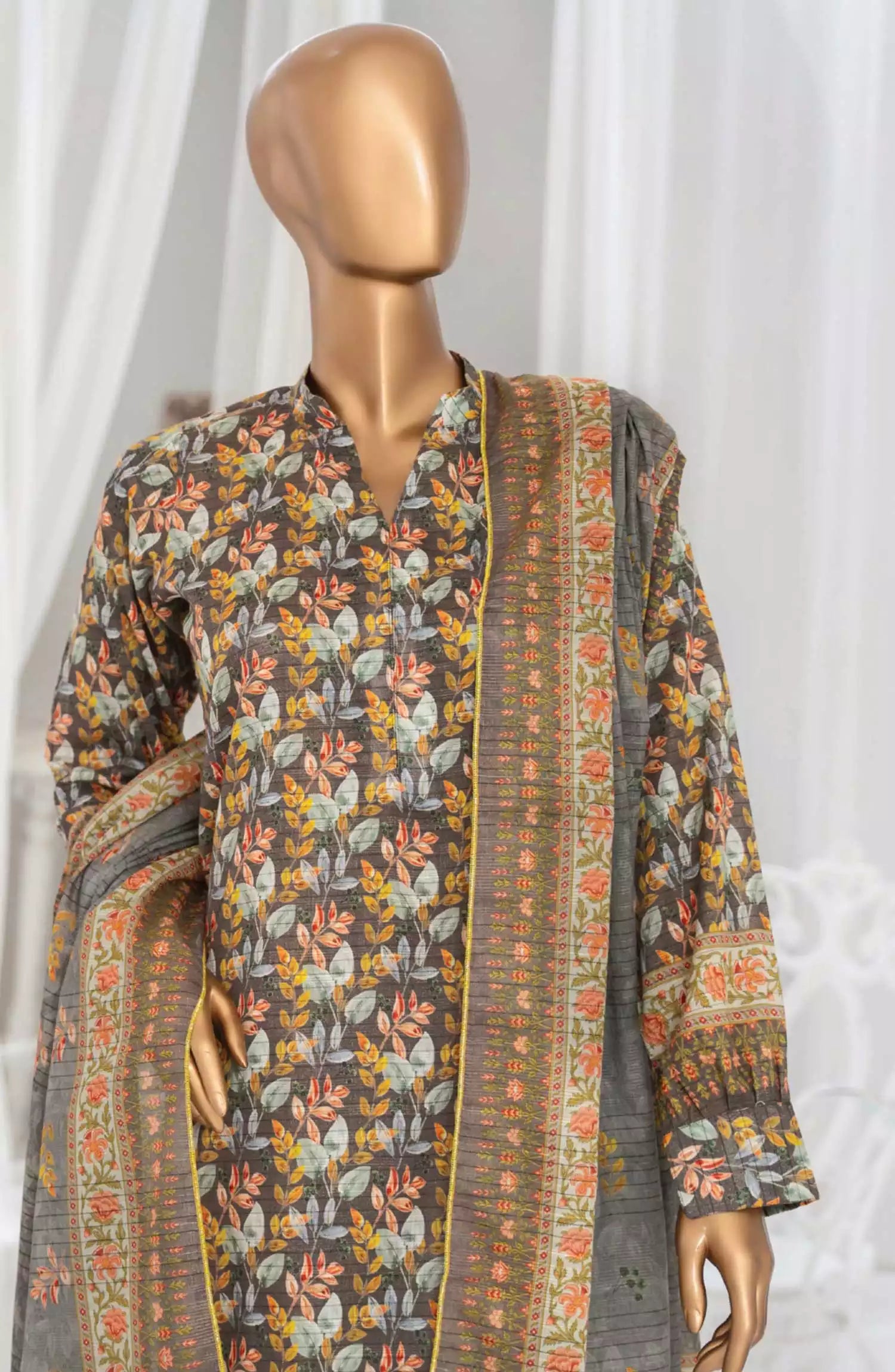 HZ Textile Digital Printed Linen Slub Unstitched 3 Piece Suit - LSD-309 - HZ25LNSL - Mustard - Winter Collection