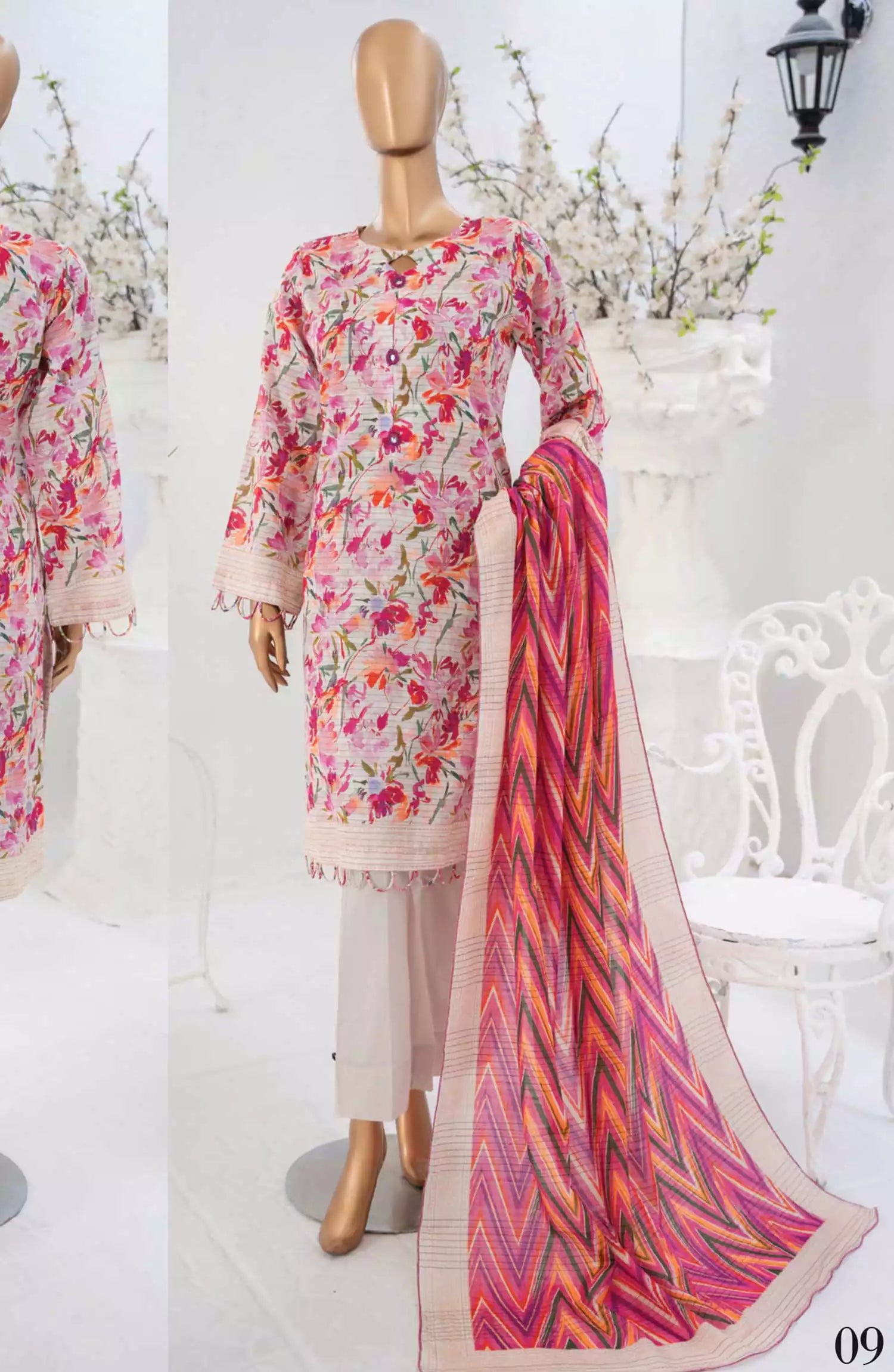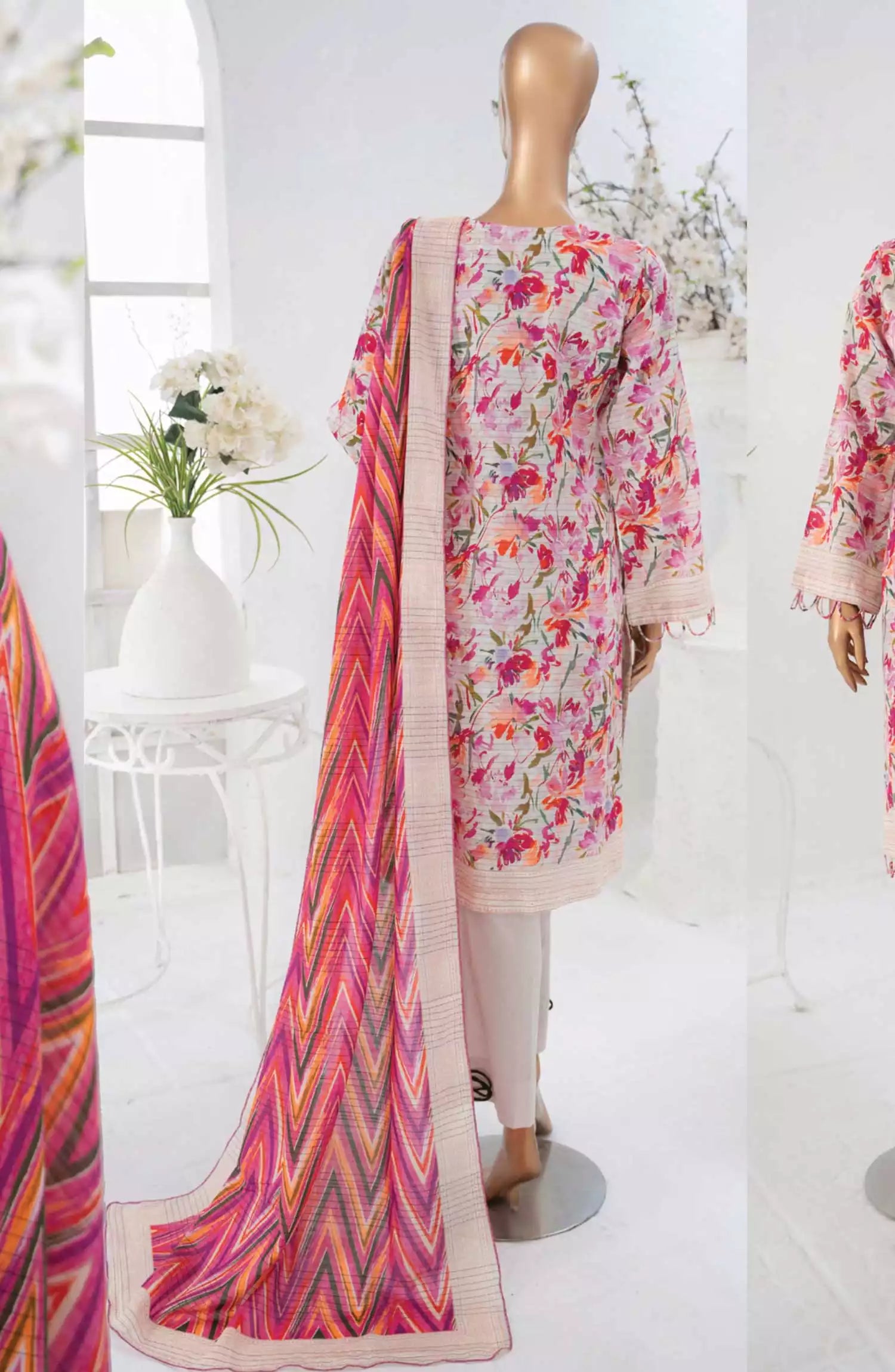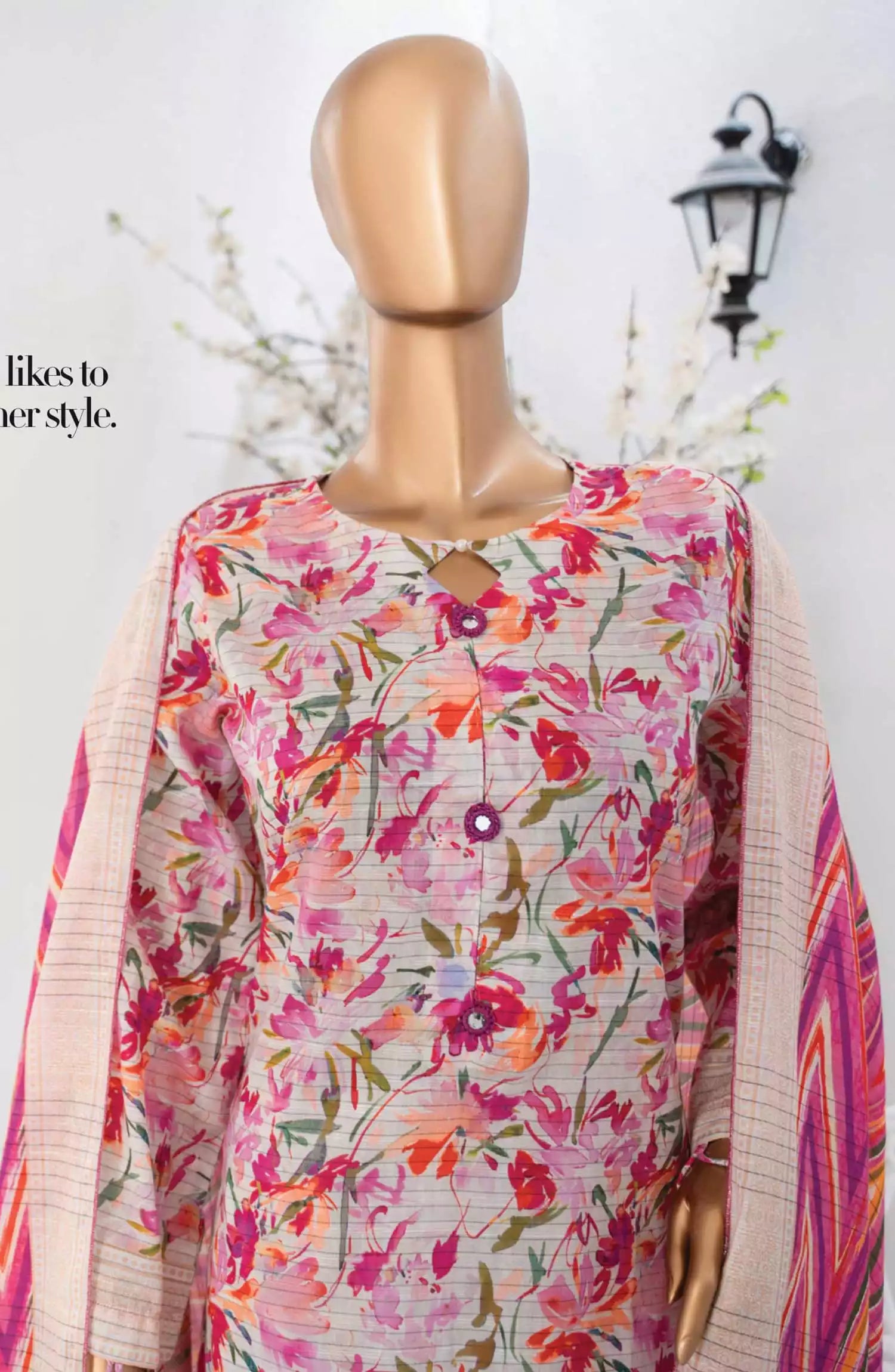 HZ Textile Digital Printed Linen Slub Unstitched 3 Piece Suit - LSD-303 - HZ25LNSL - Pink - Winter Collection