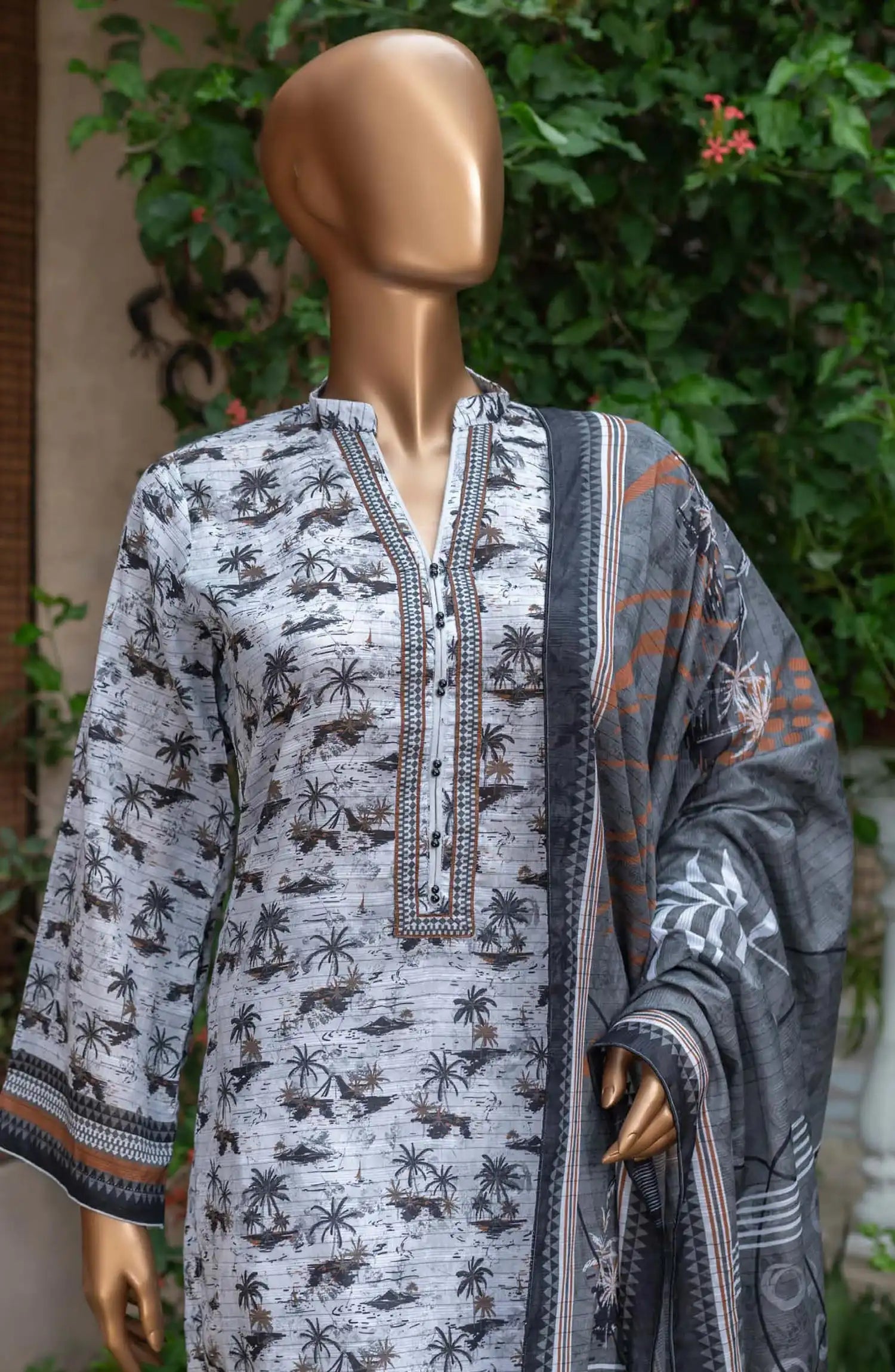 Safina Unstitched Cotton Cambric Collection Vol 02 has been styled in the image for photography and illustrative purposes.