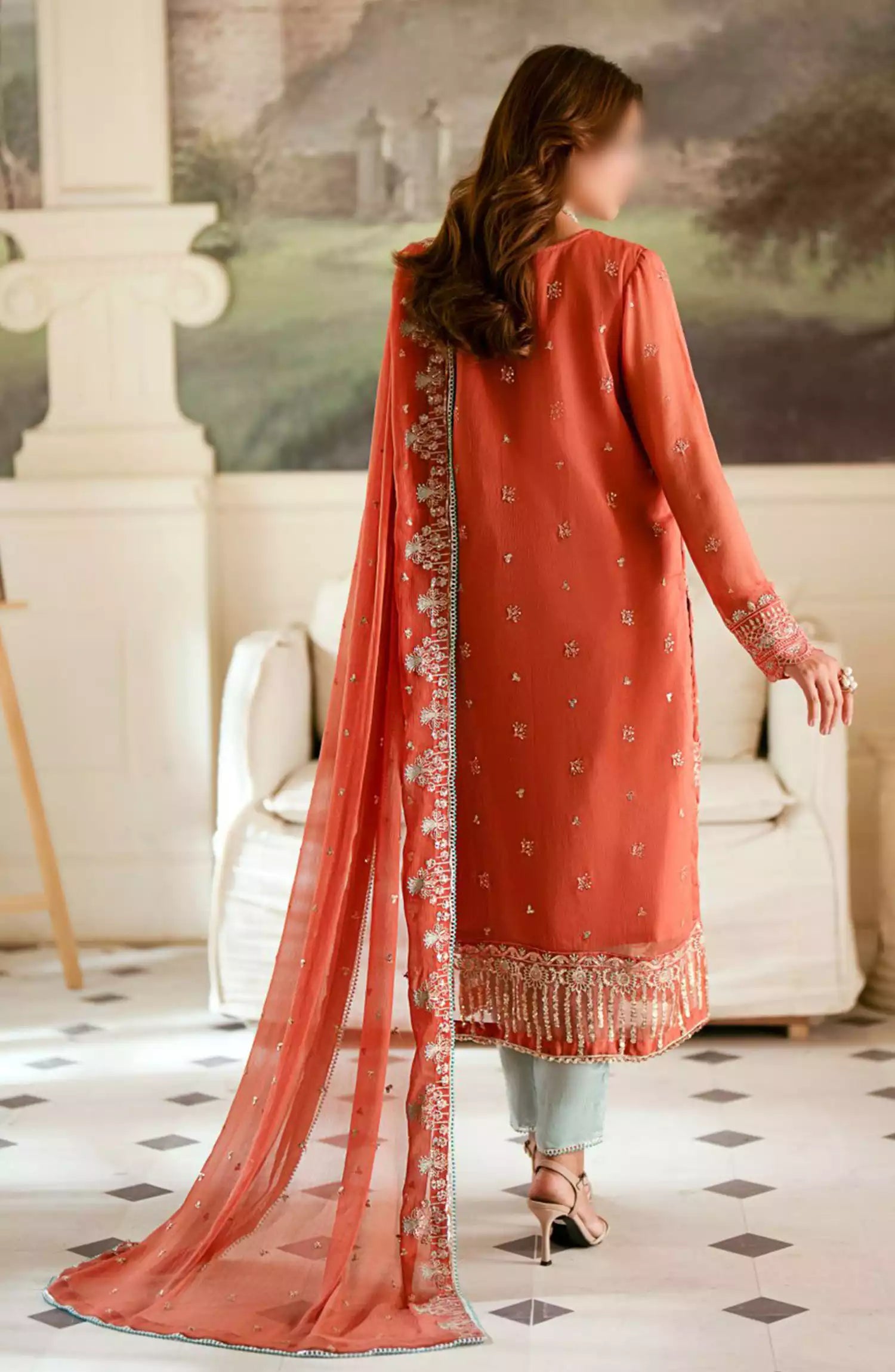 Sequins Embroidered Chiffon Front with daman on Chiffon.