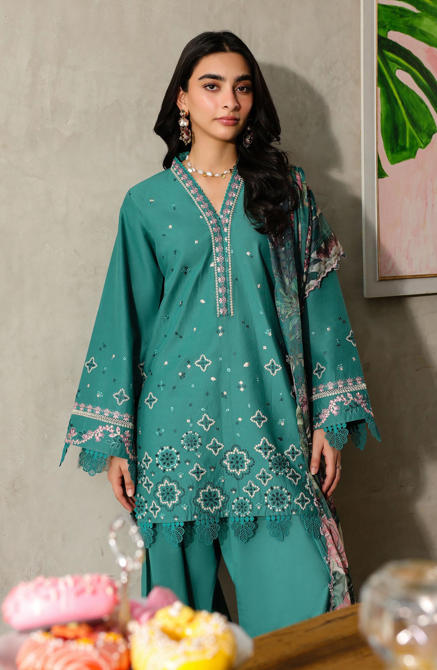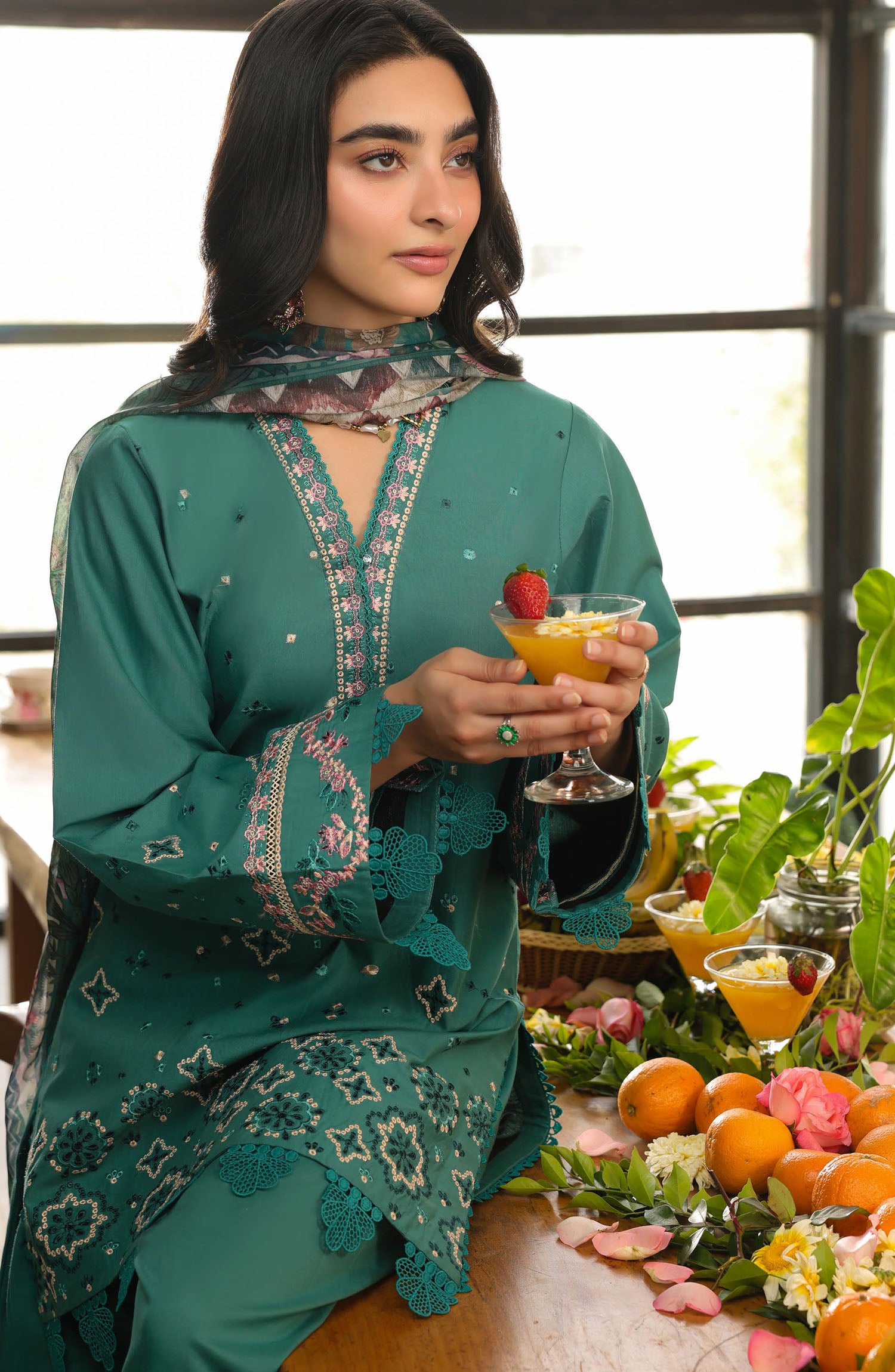 Home Sahane Embroidered Lawn Unstitched 3 Piece Suit - CT-21004 Ameta - SAH25ILL - Sea Green - Summer Collection